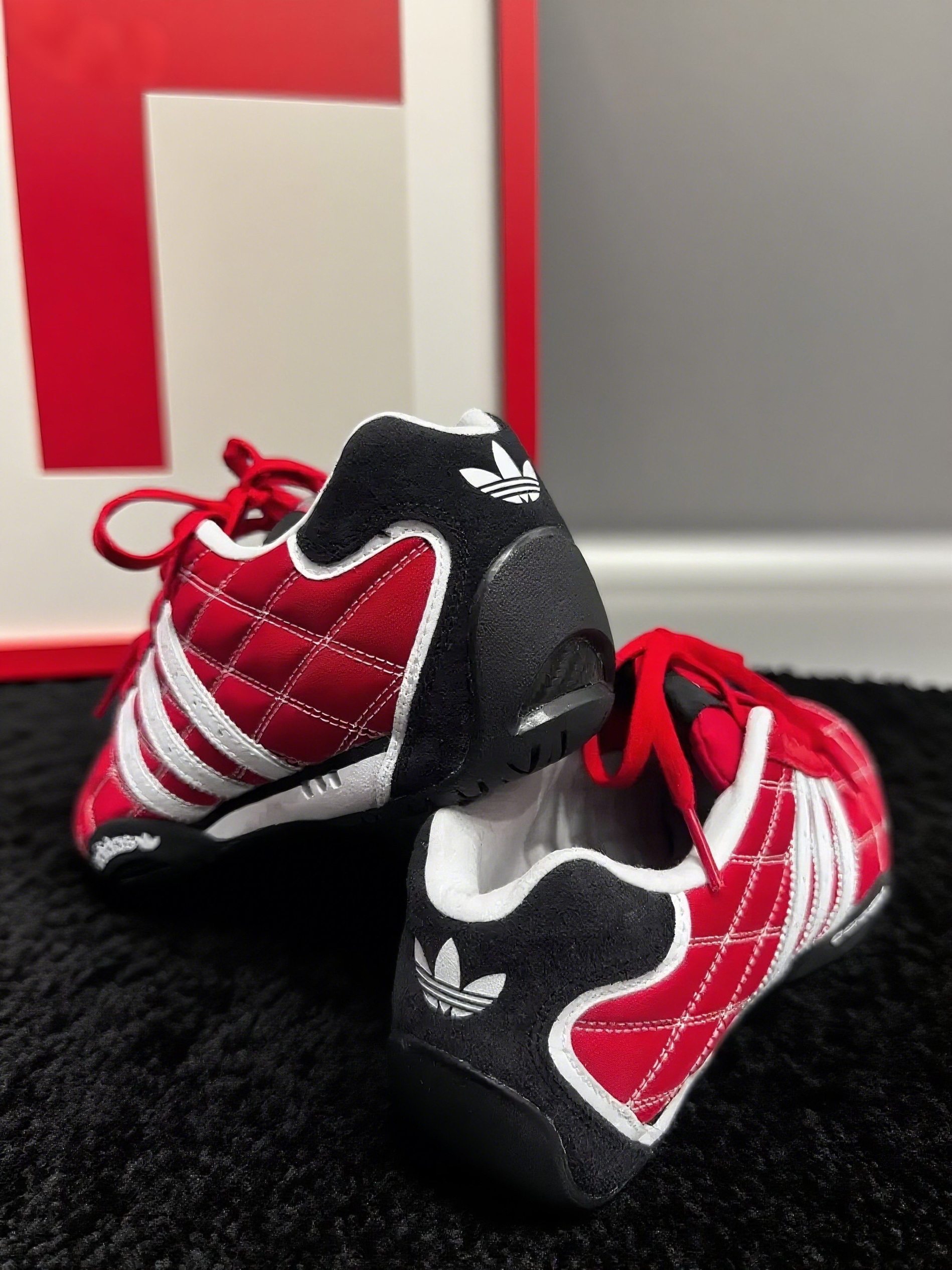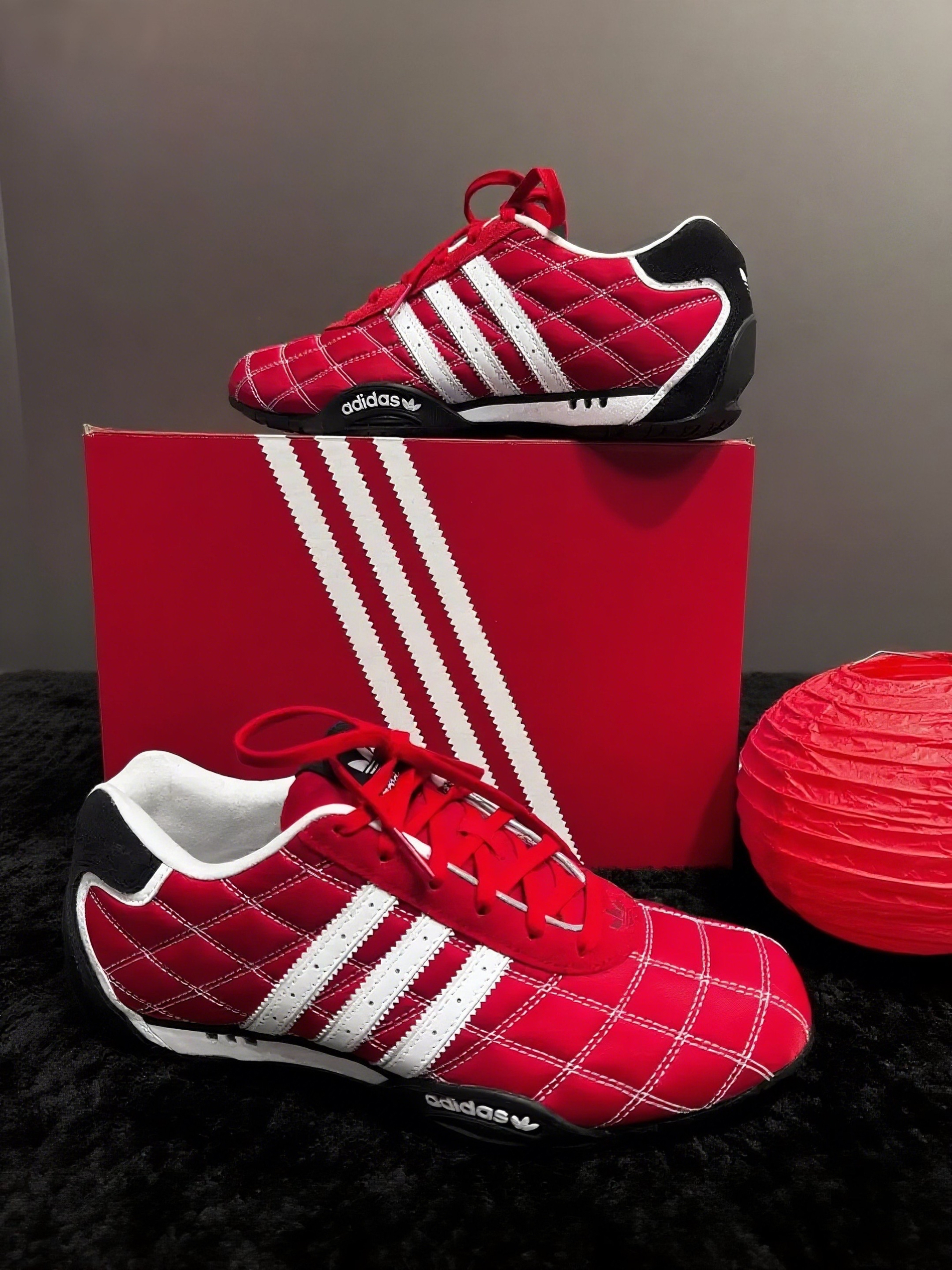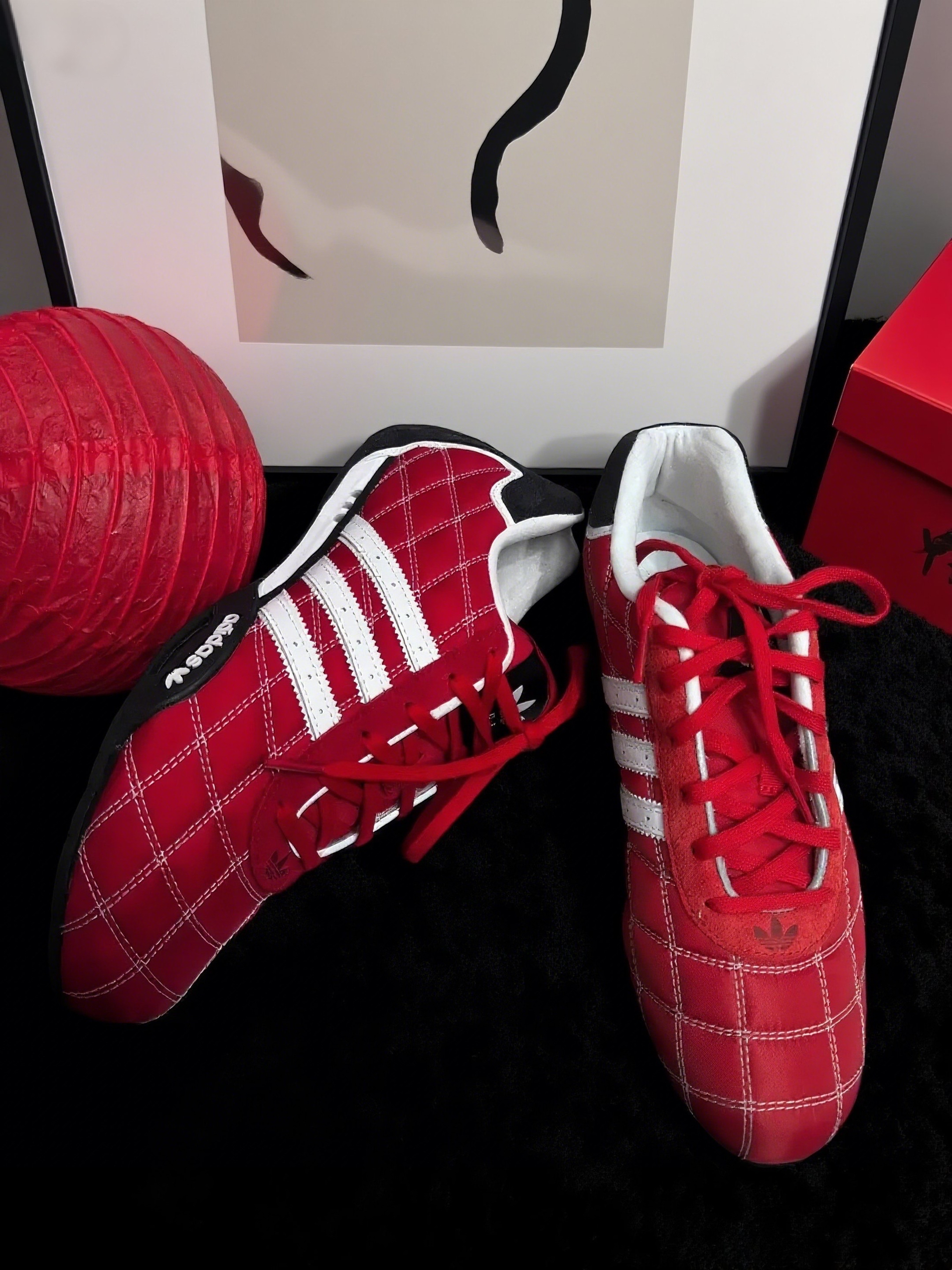 阿迪低帮赛车鞋 直接把“复古+炸场”玩成王炸——红格纹+白三道杠,像把90s赛车魂踩在脚下! 低帮设计比高帮方便到飞起,红色格纹绝绝子,配牛仔裤=街头老炮,搭短裤=复古赛车手。 不过!红面沾灰秒变“战损风”,清洁得拿软布轻擦。鞋型偏窄得选大半码… 但架不住它把“复古刚需”刻进DNA啊!
