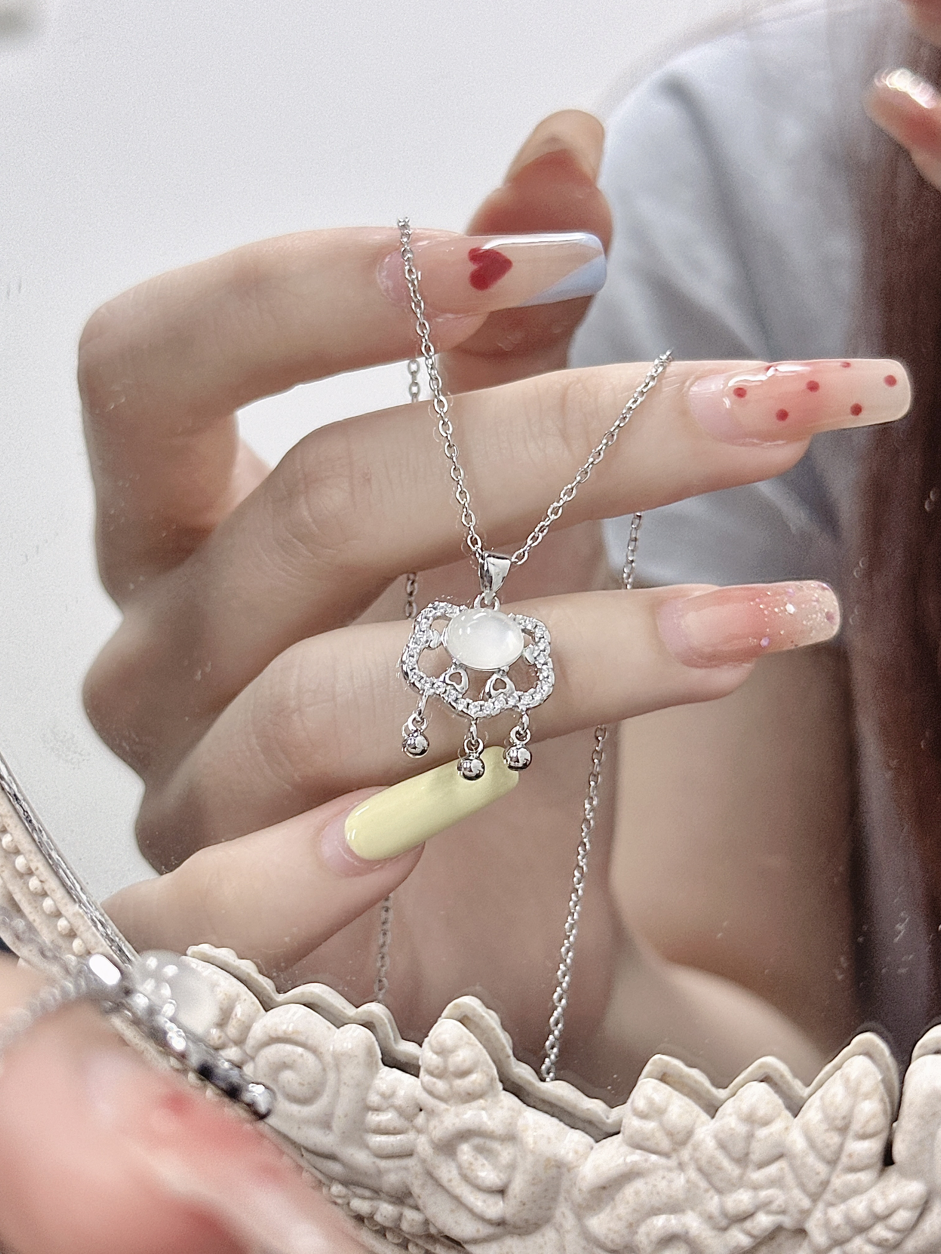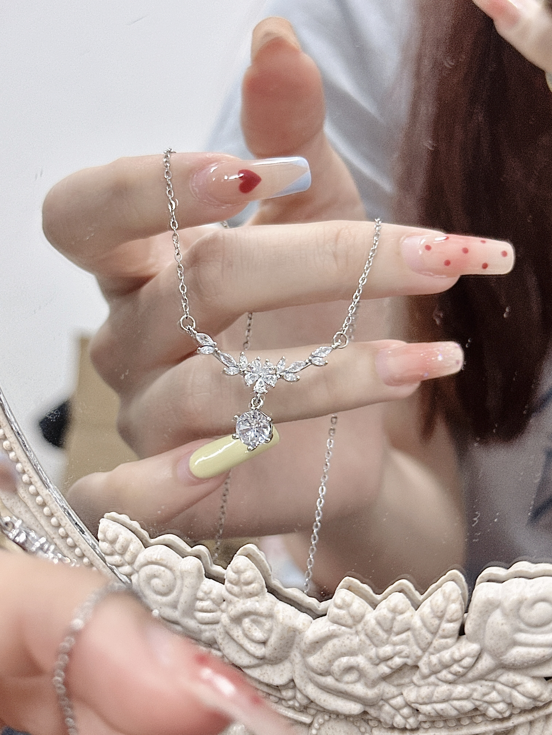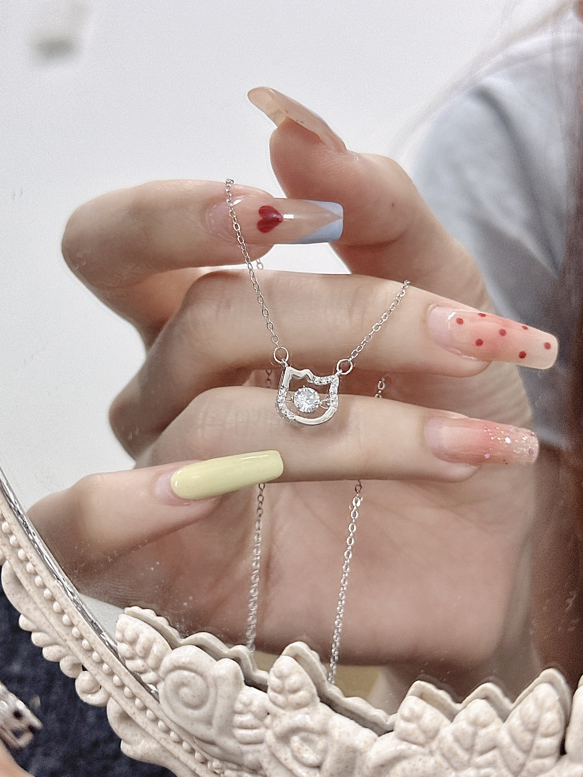 我怎么这么会选项链每次都被大家夸!! 细链儿搭上就精致小吊坠 佩戴起来温温柔柔的清冷感满满 每一次对blingbling项链我都会多看几眼 夏季尊嘟很适合一些亮色饰品点缀#每天一个配饰灵感 #解密首饰的情感价值#有排面的饰品过夏天 #得物许愿得物#金师傅一眼心动的配饰