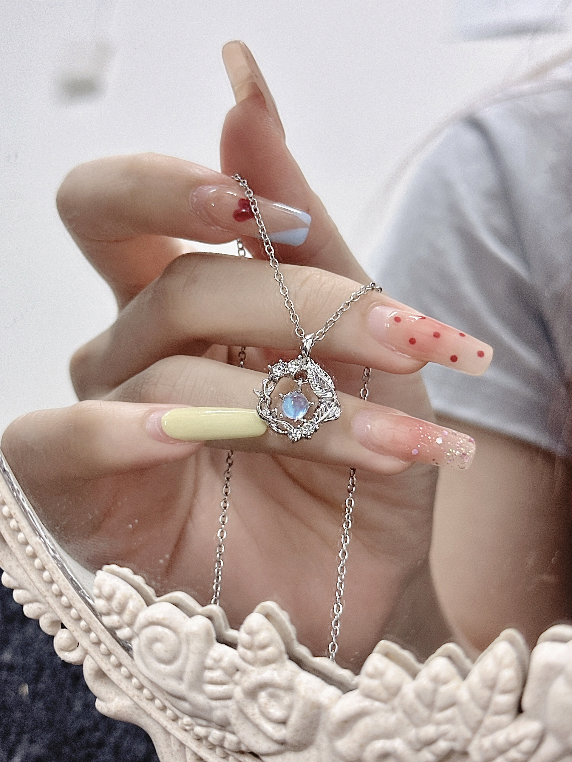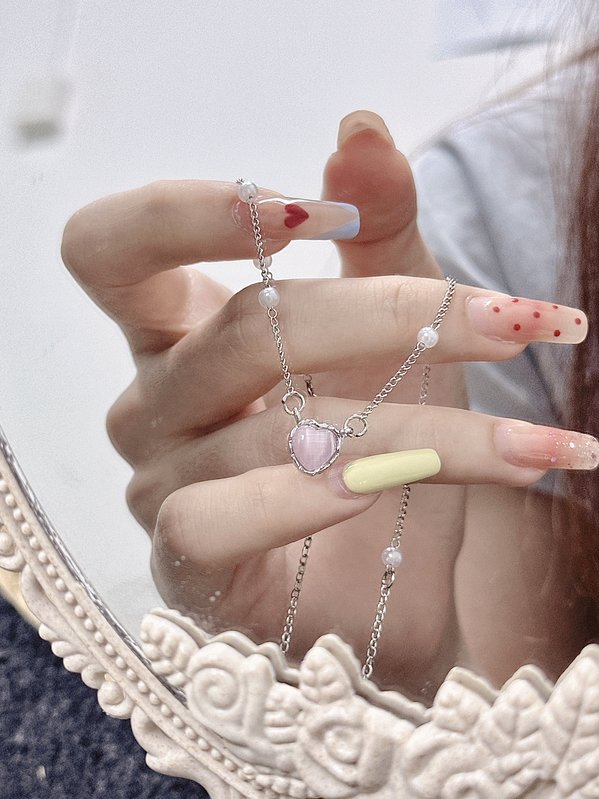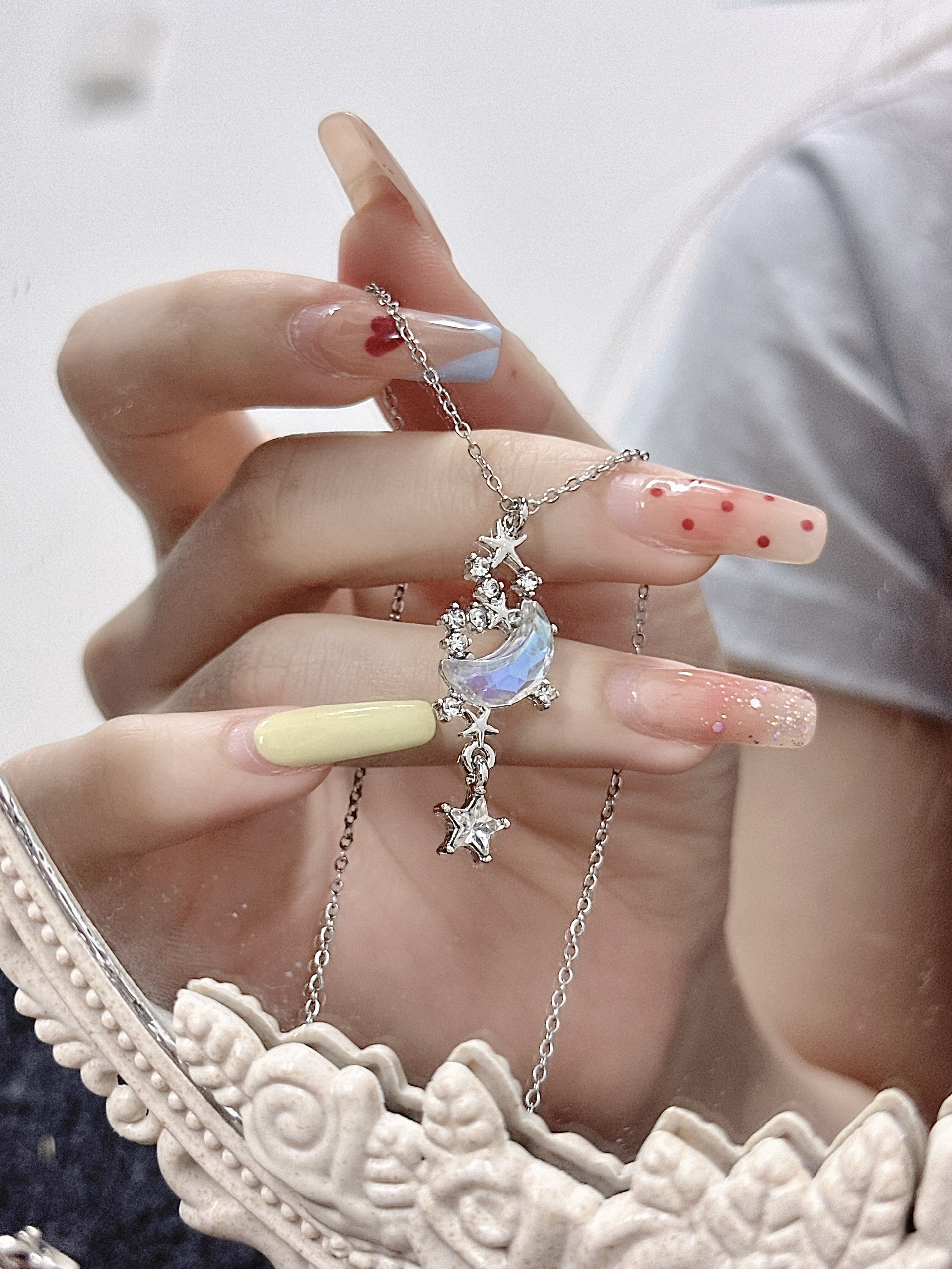 我怎么这么会选项链每次都被大家夸!! 细链儿搭上就精致小吊坠 佩戴起来温温柔柔的清冷感满满 每一次对blingbling项链我都会多看几眼 夏季尊嘟很适合一些亮色饰品点缀#每天一个配饰灵感 #解密首饰的情感价值#有排面的饰品过夏天 #得物许愿得物#金师傅一眼心动的配饰