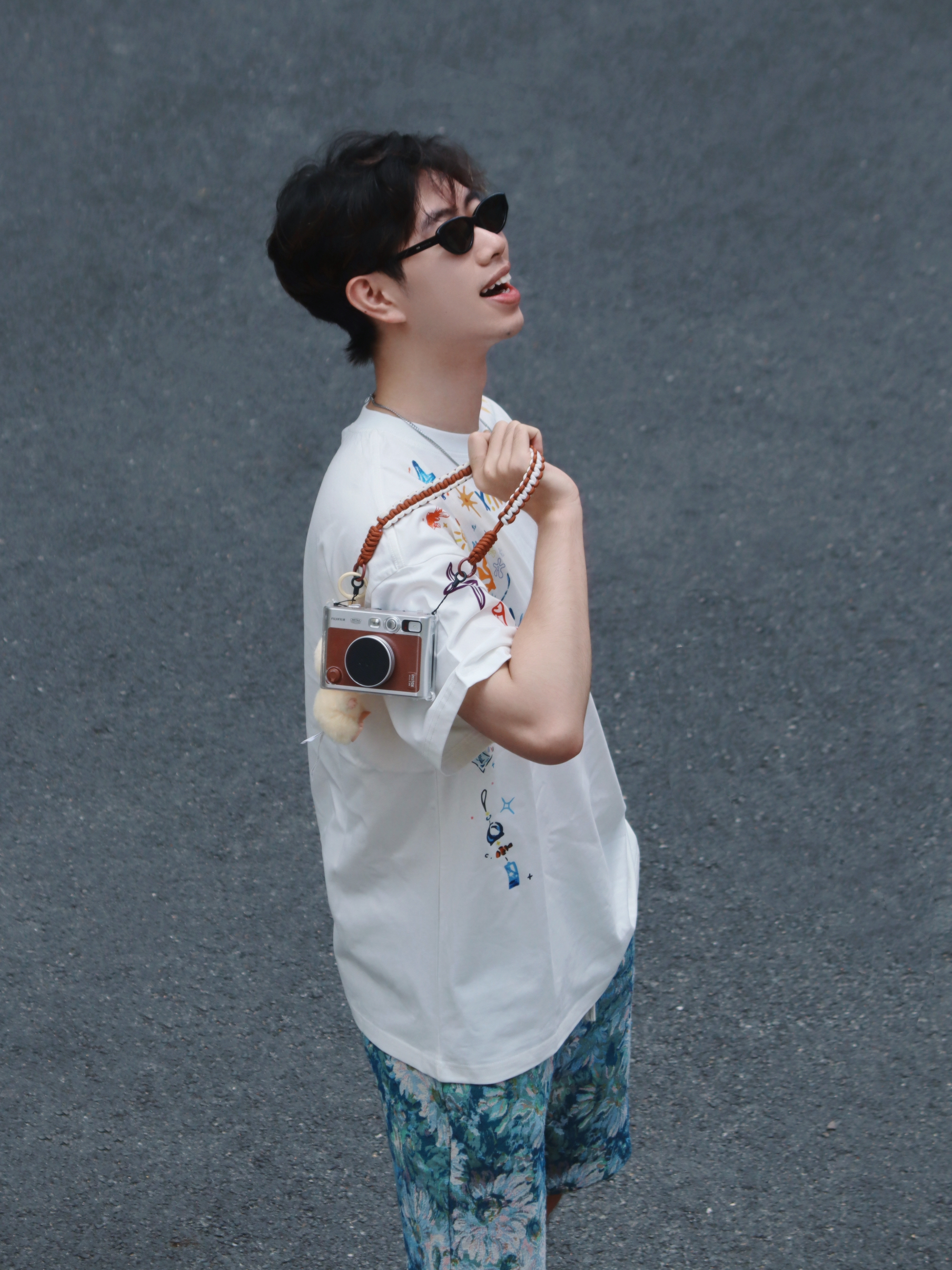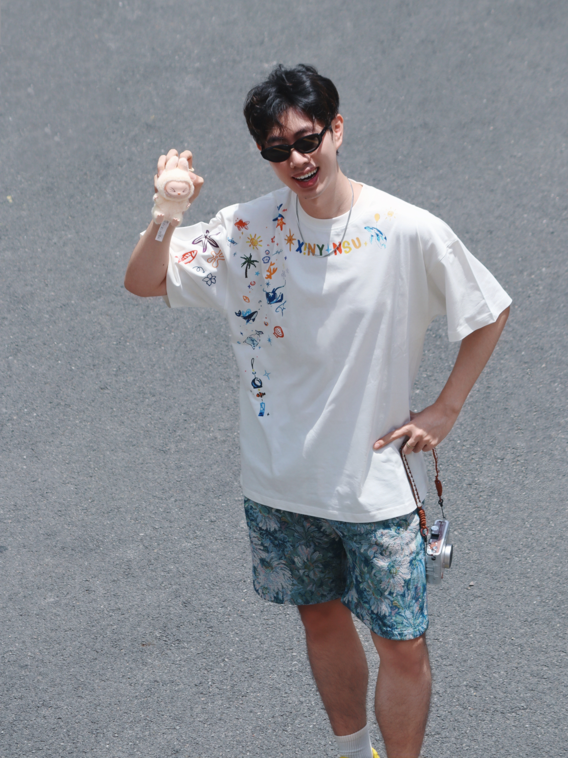 身高|体重:186cm 75kg 🧍♂️被Labubu支配的穿搭🔥是潮流冤种me‼️不过没关系,今天和SISI搭配,主打一个少年感爆P出游✌️ 👔上衣:主理人居然是一个同龄00后🔥怪不得一些设计的风格在我心pa上😆今天上身这件白T也太会玩啦!侧边满是色彩缤纷的小图案,像把夏日海滩、阳光、小美好都印上去了🌴 👖下装:蓝花短裤一整个夏日氛围拉满🌼度假感、街头感随意切换~主打一个“把清凉穿在腿...