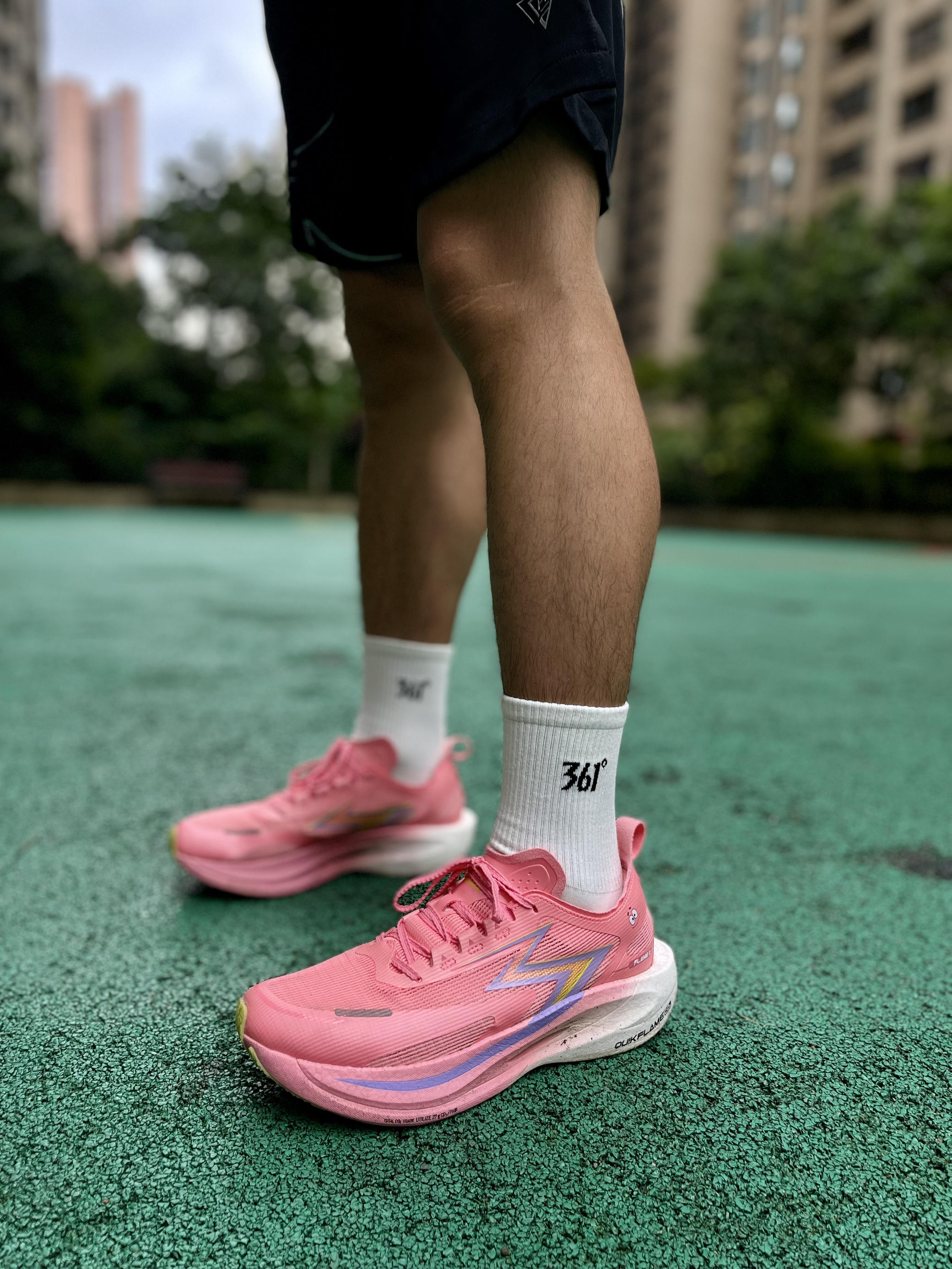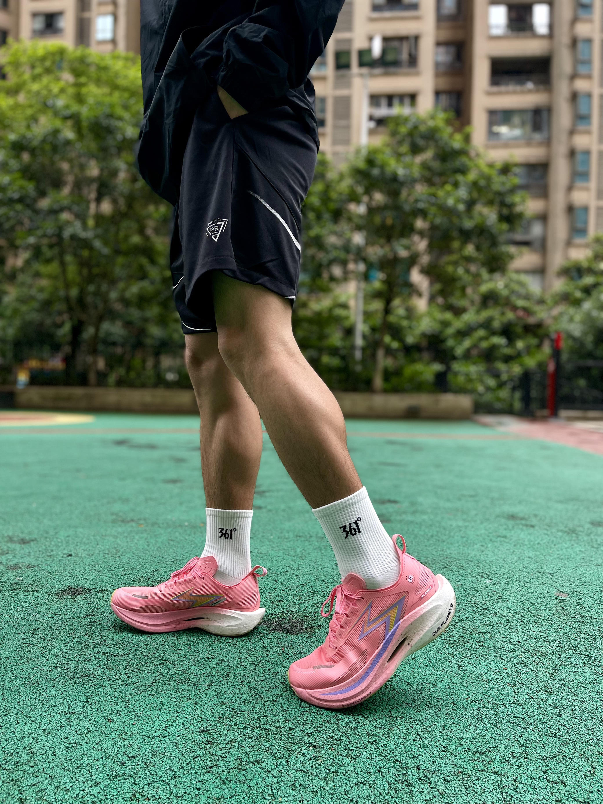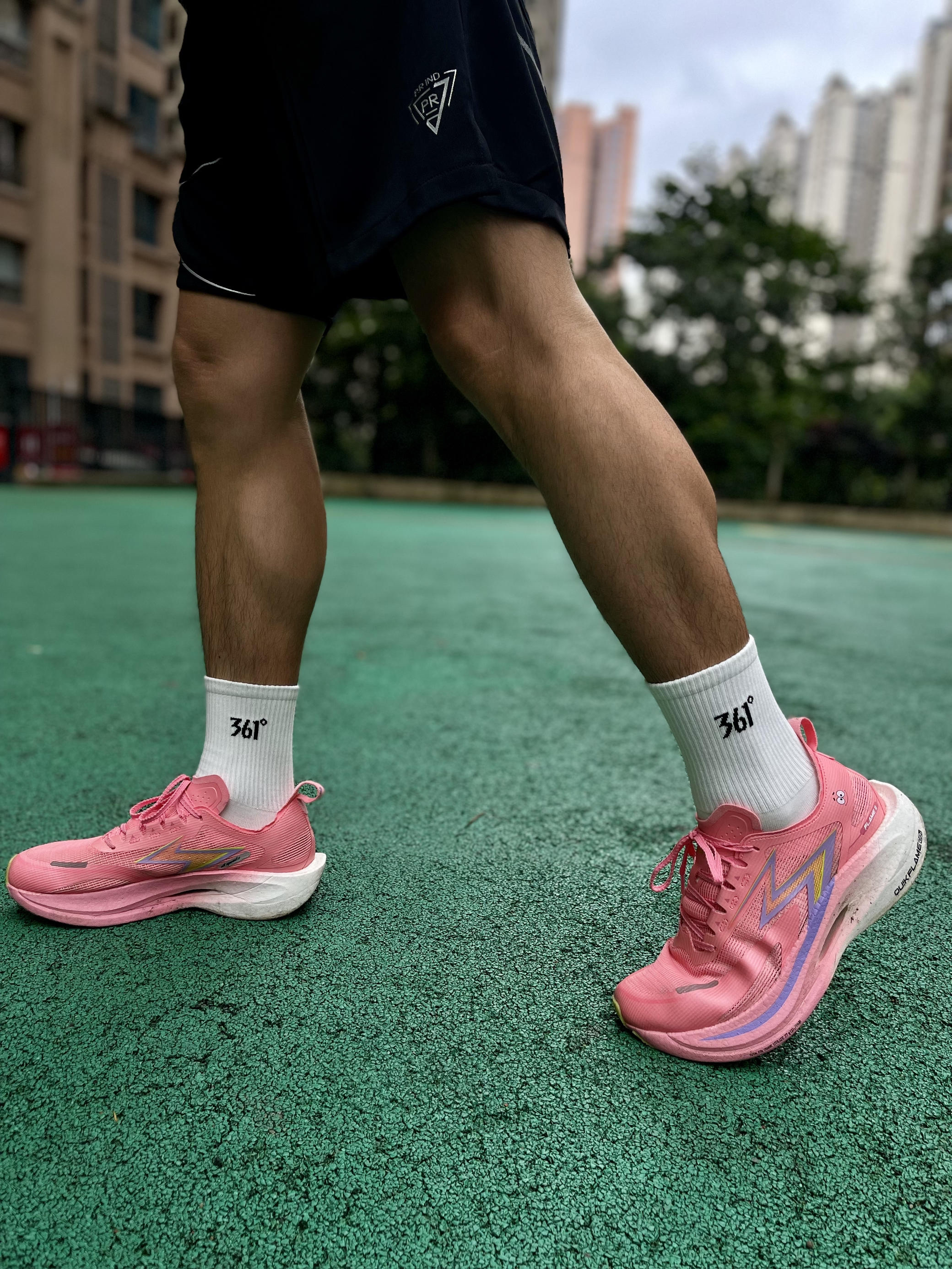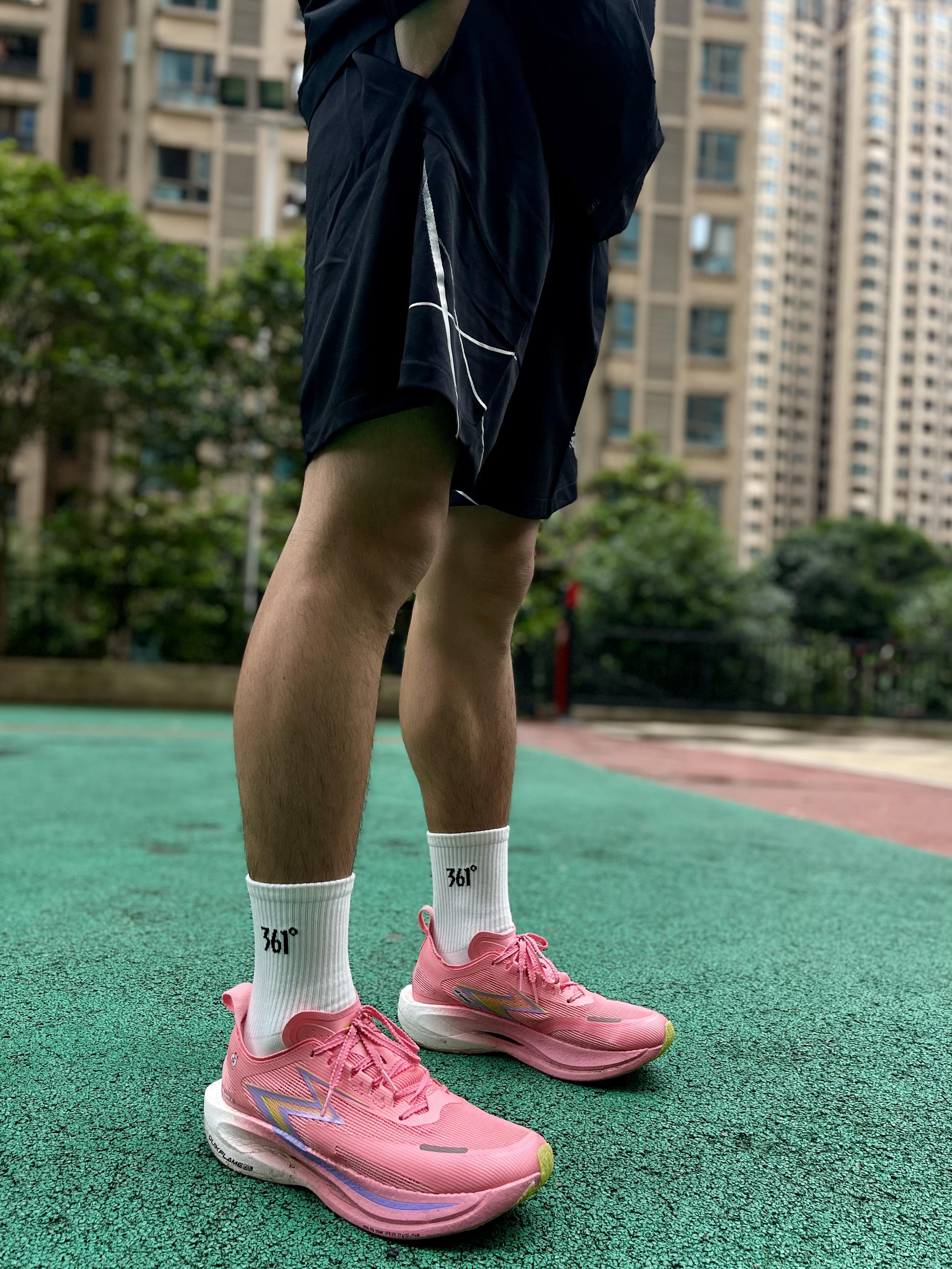 今天穿 361° 这双中筒袜跑了10公里🚶♂️ 全程脚底板像踩在风里💨透气很舒服! 无骨缝合完全不磨脚✨防臭黑科技跑完居然没异味👃 足弓处还有轻微压力支撑,跑半马全马下来脚踝都不酸! 日常搭运动鞋、板鞋都很好看~