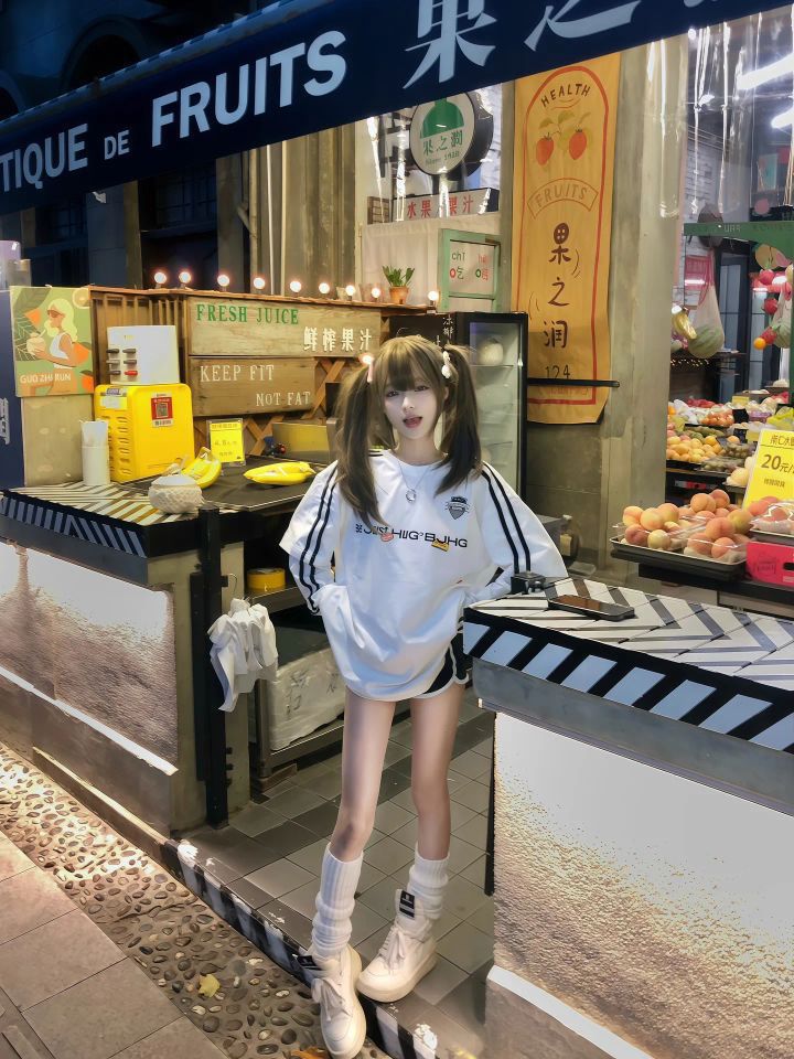 - 插肩袖+磨破细节:模糊肩线显瘦满分,袖口磨边处理增添美式复古腔调,运动感与慵懒风并存;