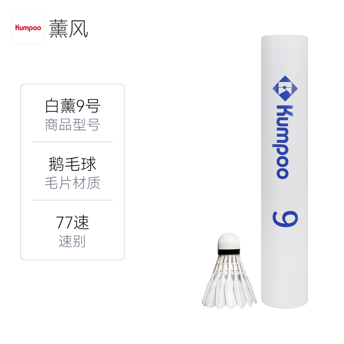 本篇笔记关联了Kumpoo/薰风 白薰9号 防风 耐打 飞行稳定 比赛 训练 室内 鹅毛 羽毛球 白色等商品,为用户提供真实的使用体验和购买参考。