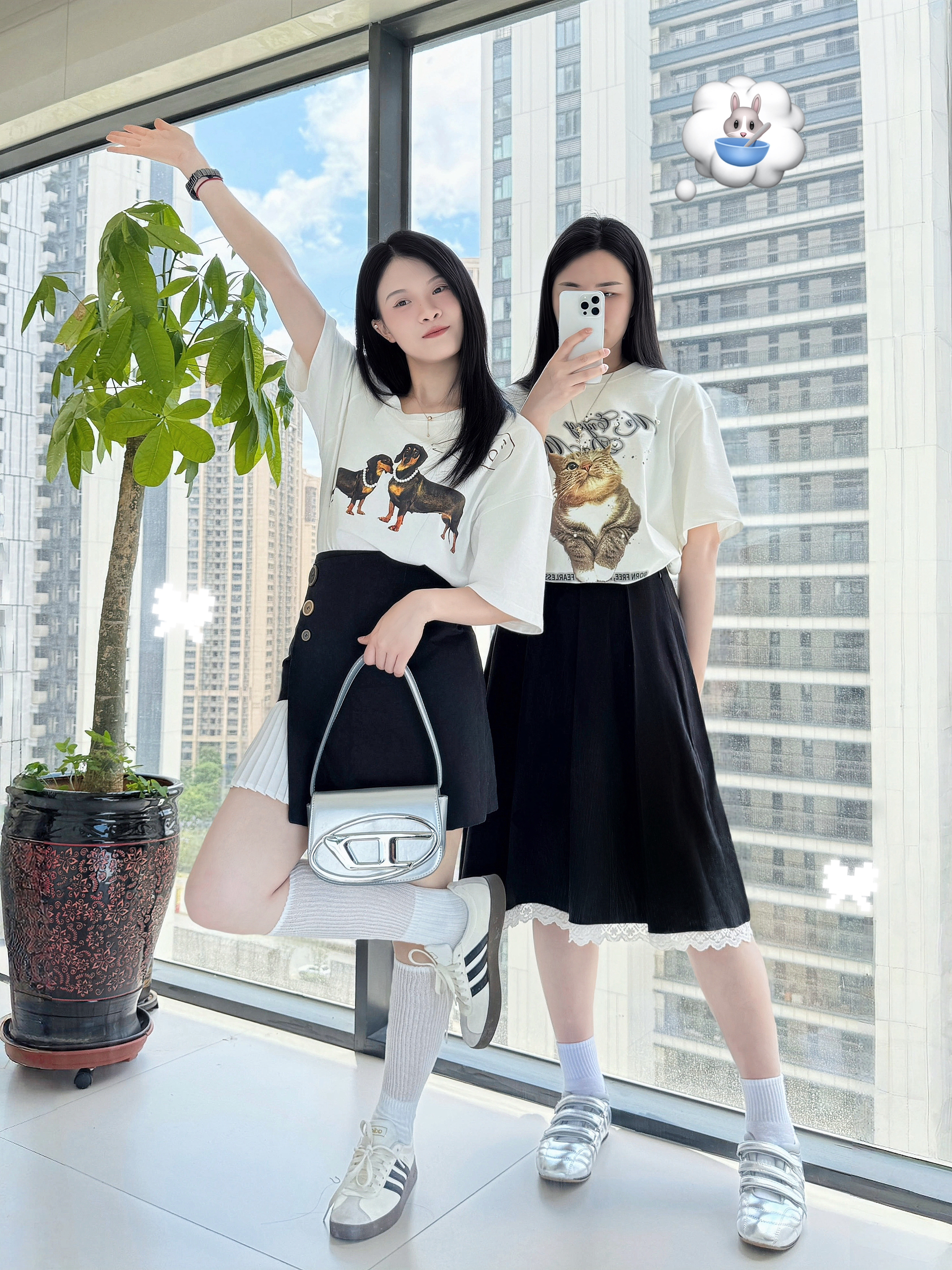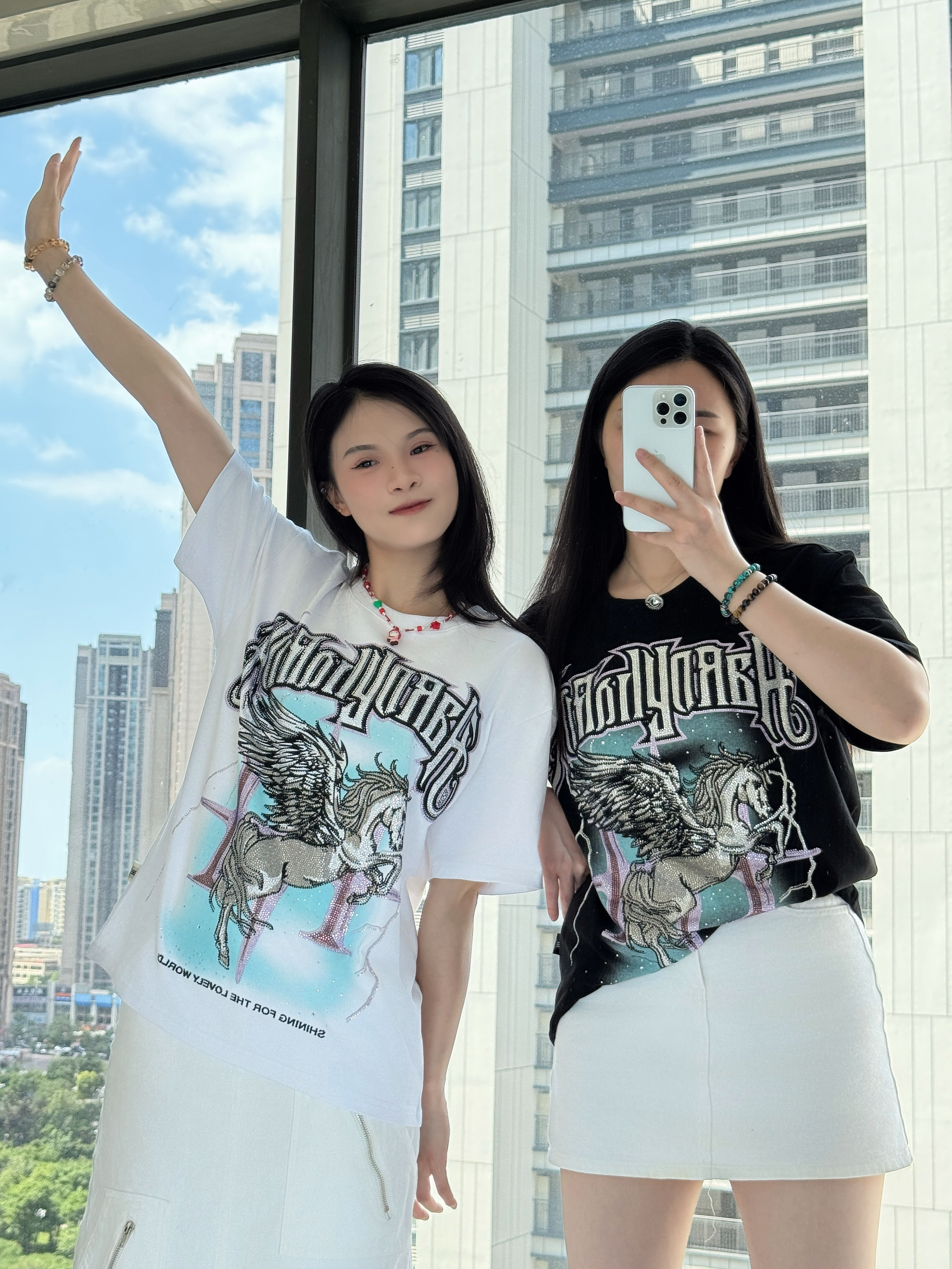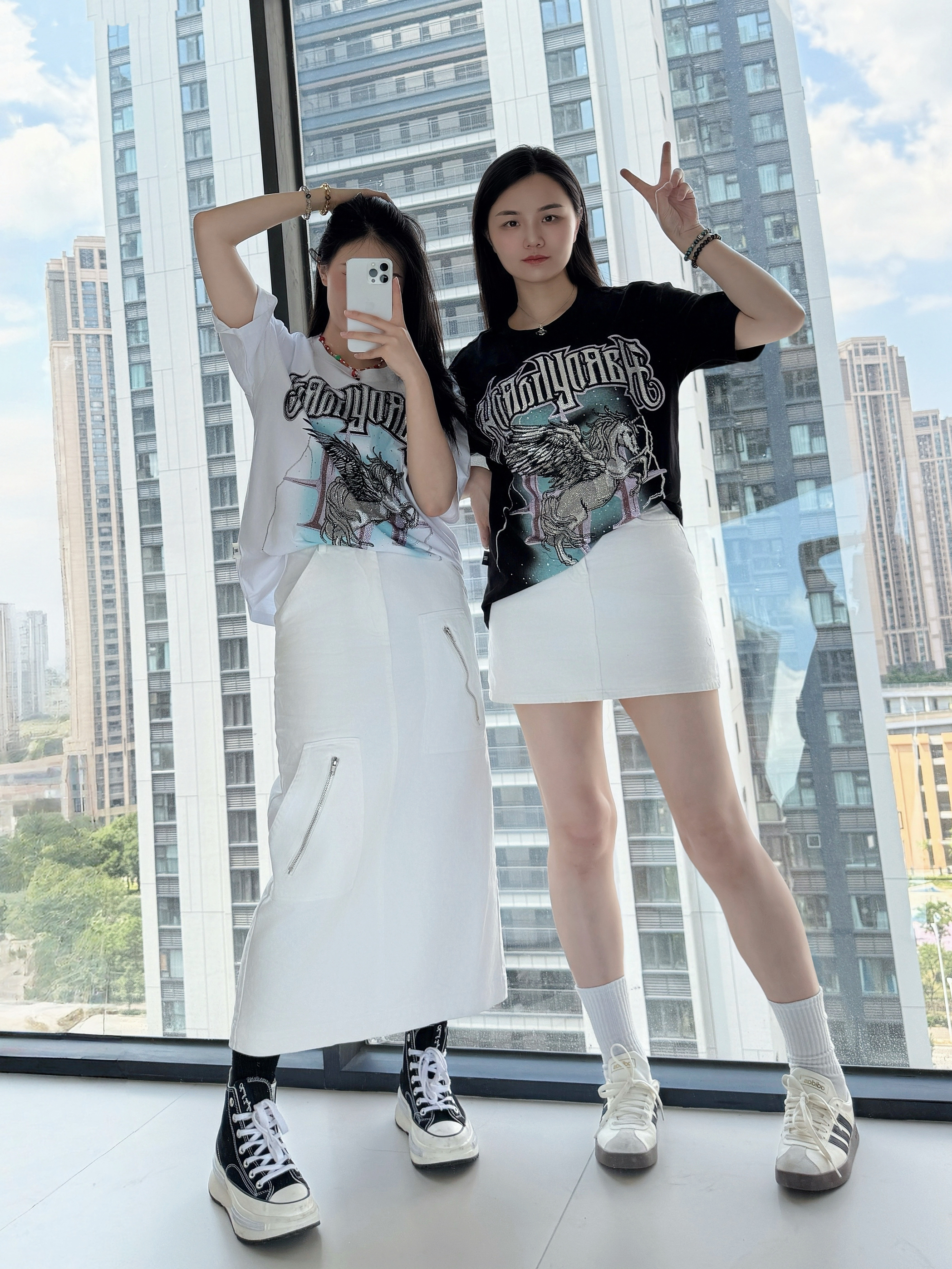 ⸝⸝⸝🪟⋆꙳⊹🪑⋰ 👚: HARDY 哥特风字母短袖 烫钻独角兽翅膀涂鸦印花 独特又有设计感 宽松的版型,上身舒适不闷汗 👗:白色长款牛仔裙/短款牛仔裙 衣服设计很十足 下半身选择清爽的白色裙子 👟:匡威夹心鞋/阿迪达斯德训鞋 满满设计感的美式复古风穿搭🥤