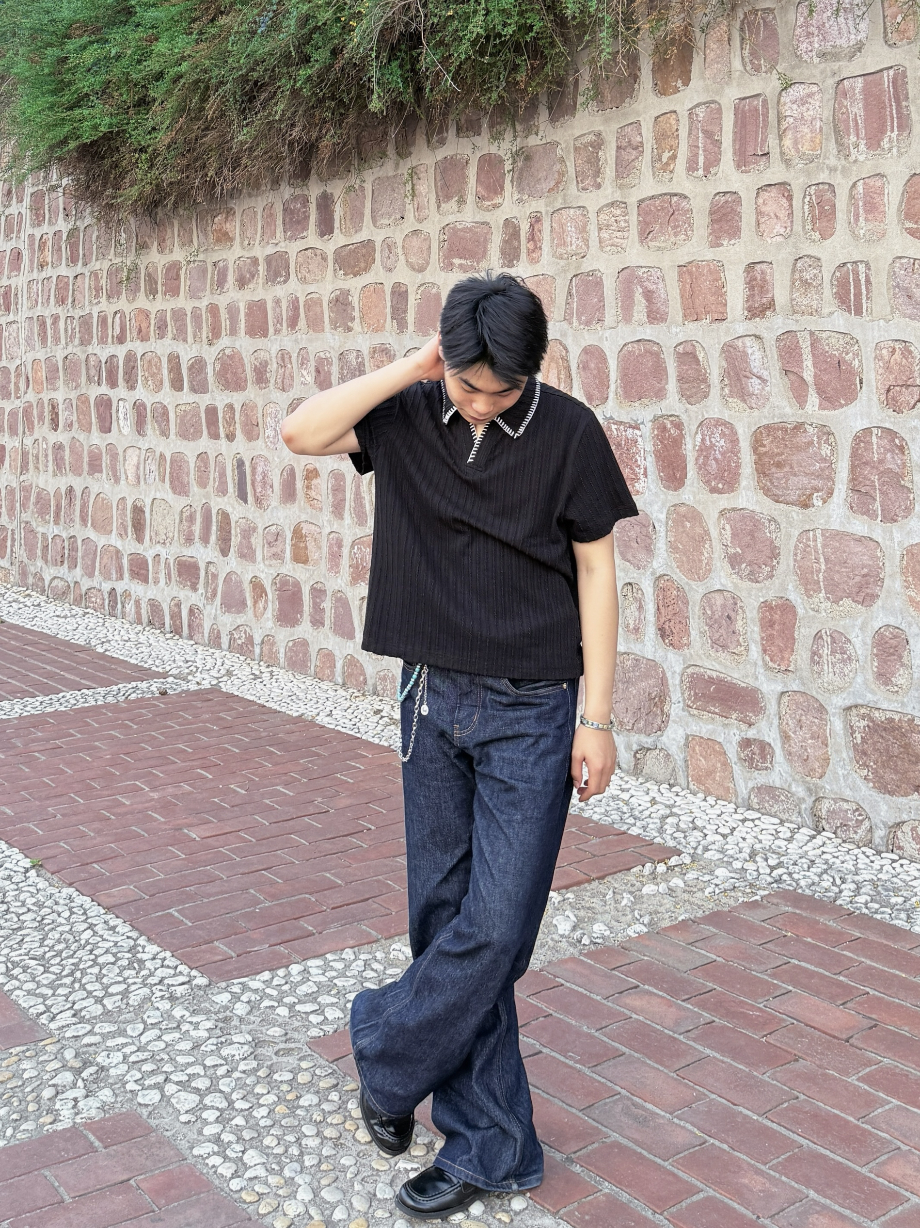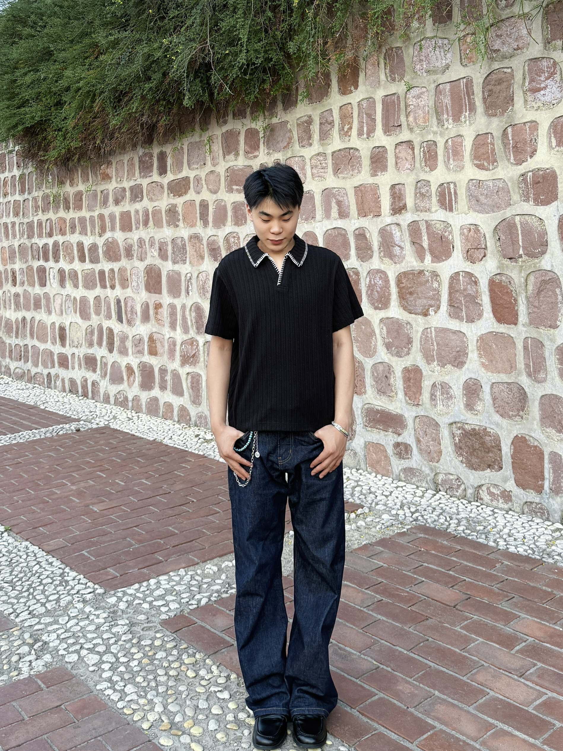 分享今天分享一套老钱风穿搭 乐福鞋加原色牛仔裤,再搭配一个很有老钱风感觉的短袖真的很帅。 短袖是棉混纺的面料,很舒适透气,黑色的很好看,v领的设计真的超适合脖子短的人!裤子真的是超百搭,搭配衬衫短袖都很好看。面料很硬,裤子超级有型,真的是四季常穿的一条裤子。 鞋子就是比较火的乐福鞋,但是这双很舒适,鞋子里面很软弹。