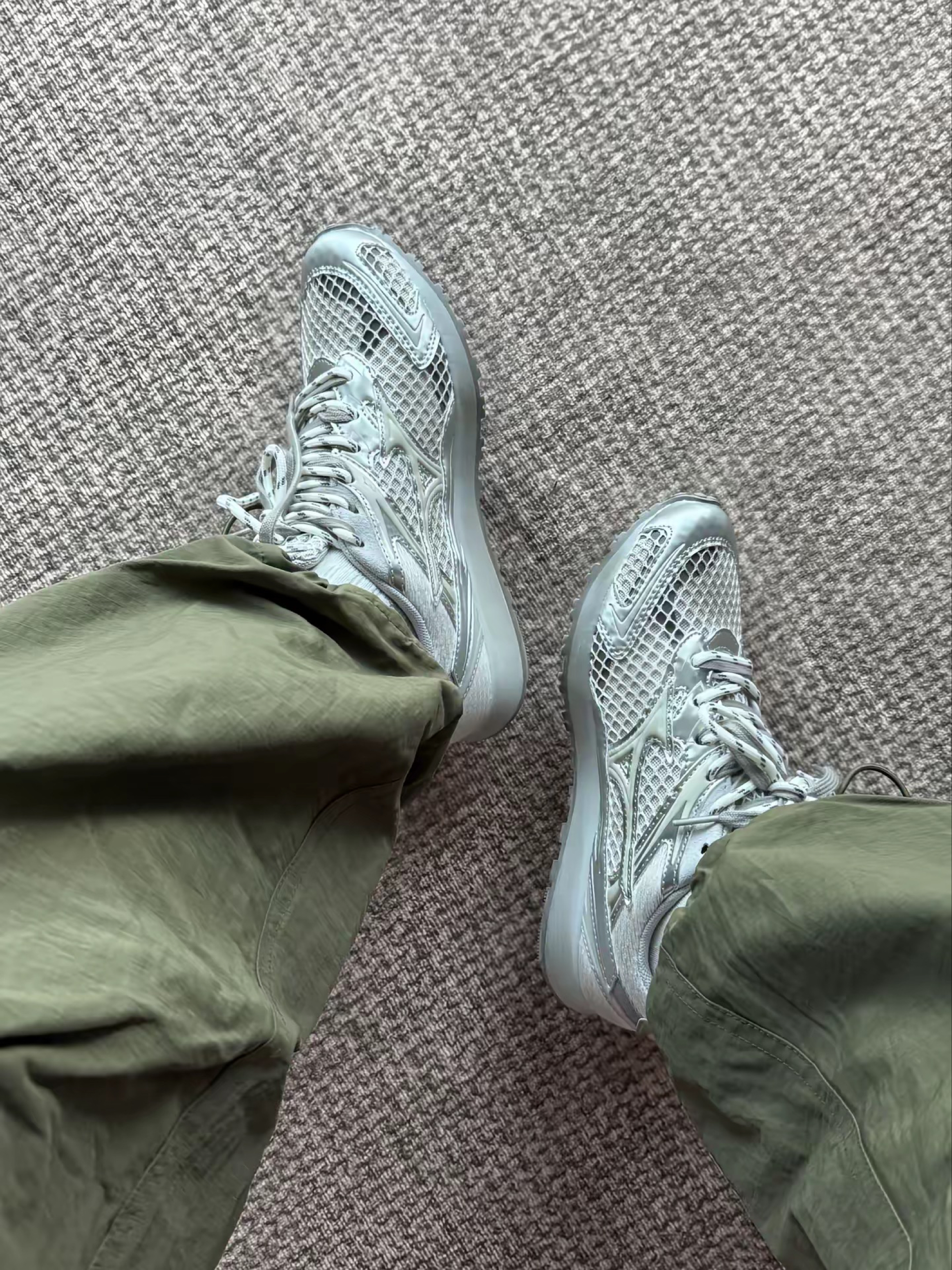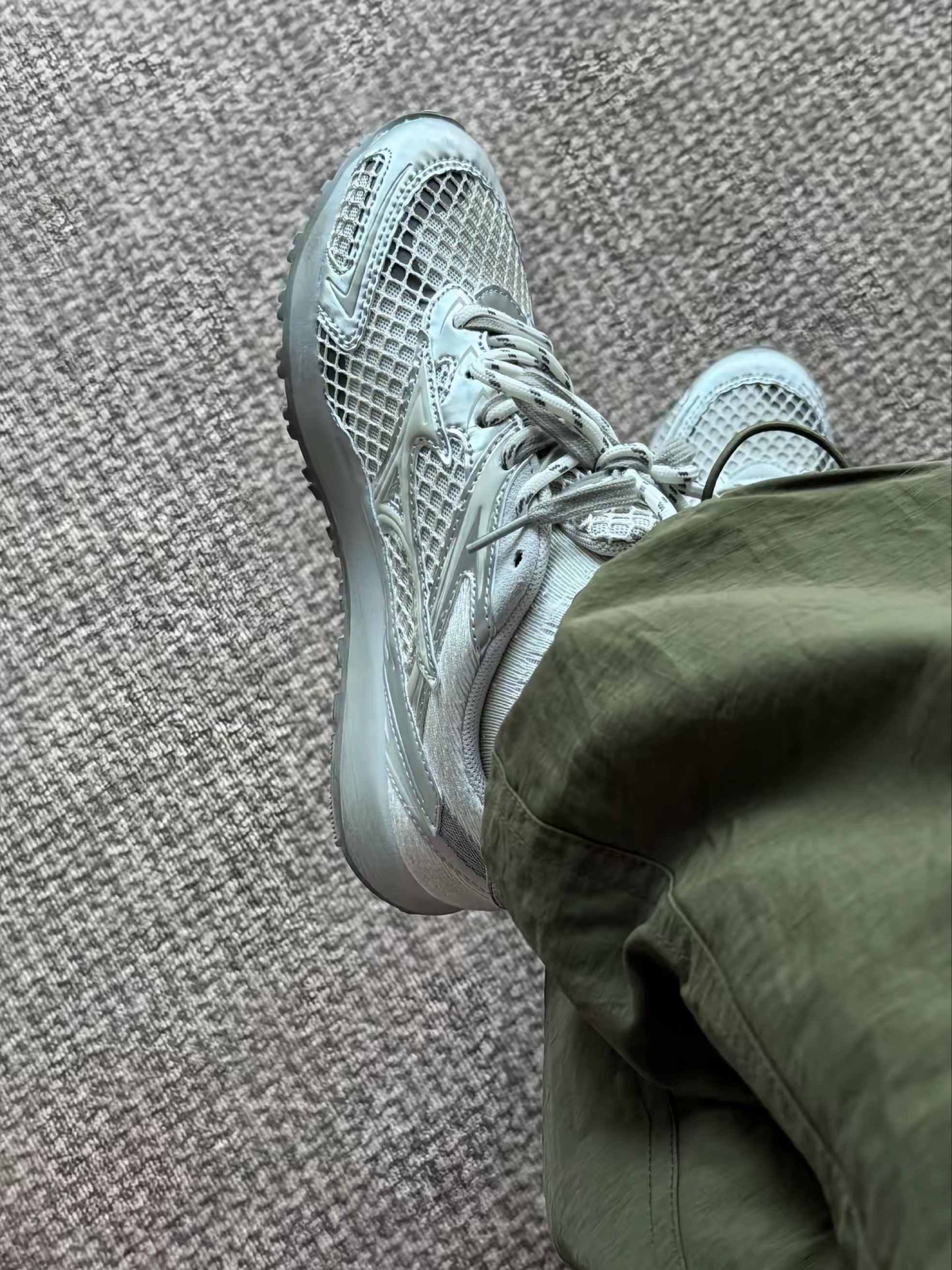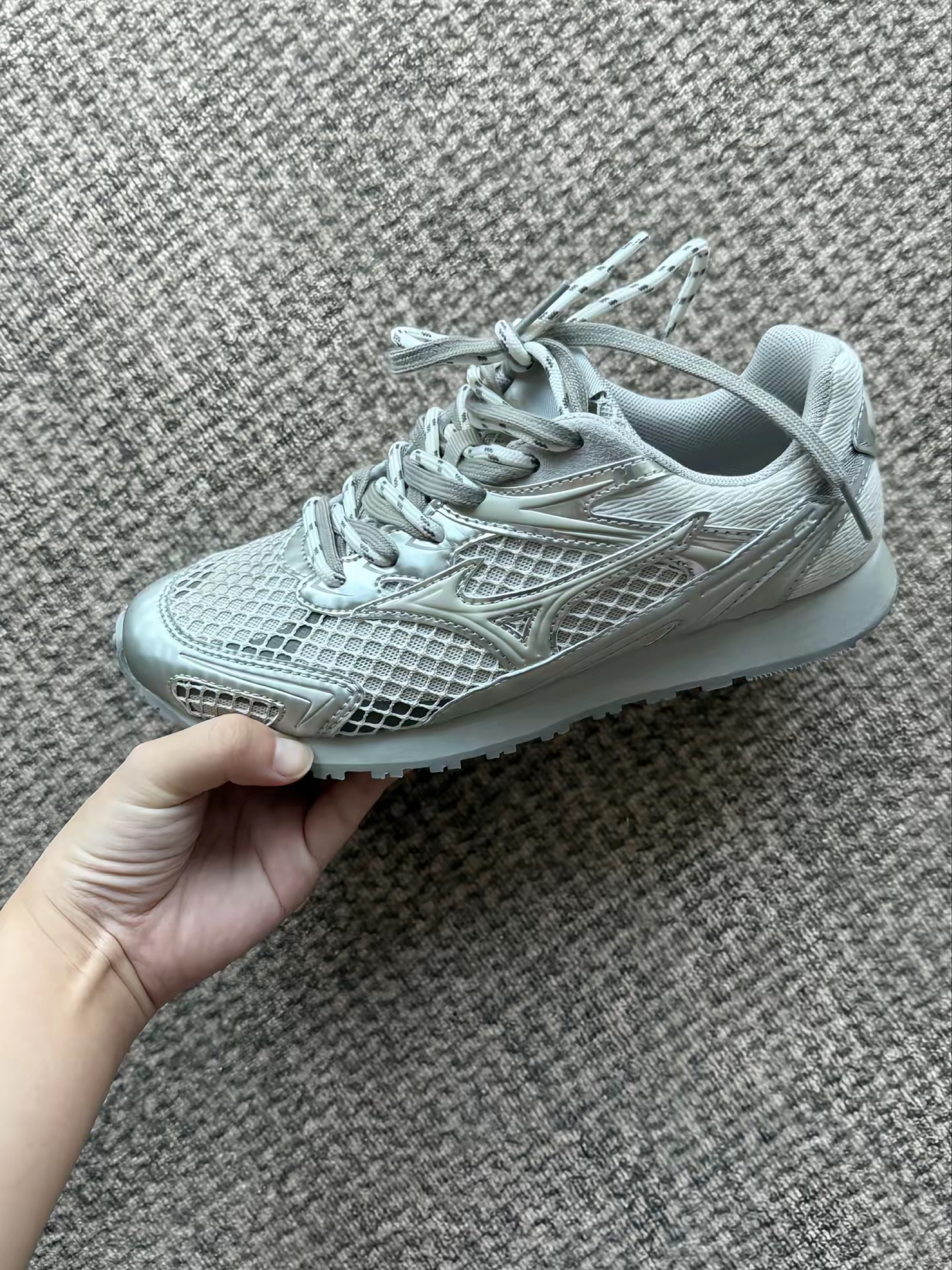 最近入手了这双美津浓LG 60S 2K,依旧是一双薄底鞋,相对于其他品牌来说价格比较亲民。不得不说,官网图拍的让人没有入手的欲望,太黄了,但实物是真的好看。银色皮革非常复古,搭配白色网眼,里面还有一些灰色点缀,完全不会单调。这个底相对来说没有很薄,脚感尚可,喜欢的话记得买大半码。有一说一,非常像bv…