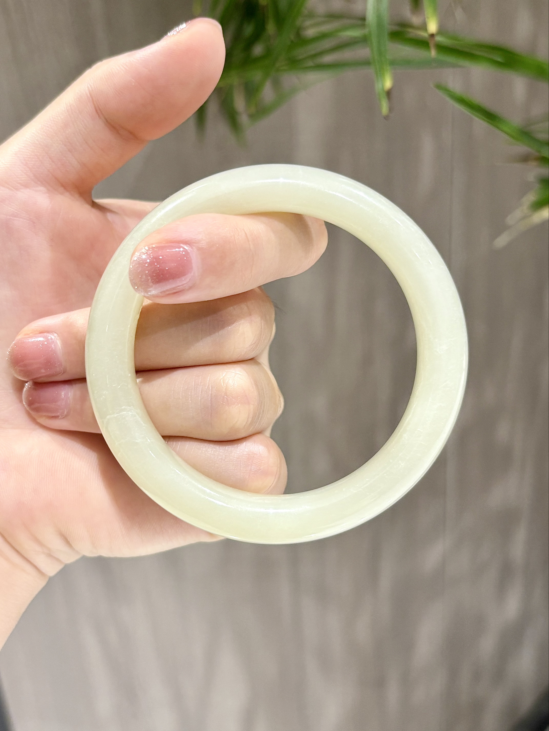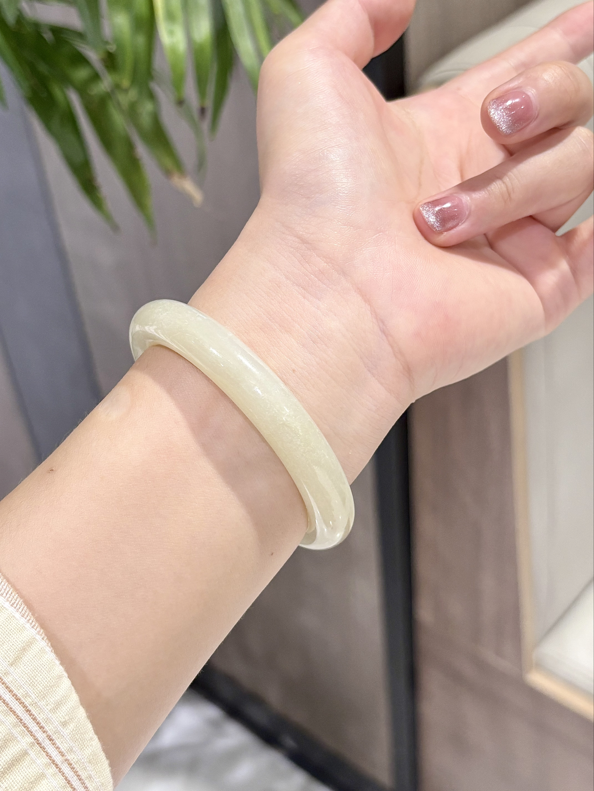 就这和田玉手镯谁戴了不上头啊 拿在手上也是沉甸甸的手感不错哈 还得是新中式的显气质 我平时搭配一字肩/旗袍都适合哦 夏天戴着也冰冰凉凉的hin清爽 有点后悔没有早听妈妈的话啦~