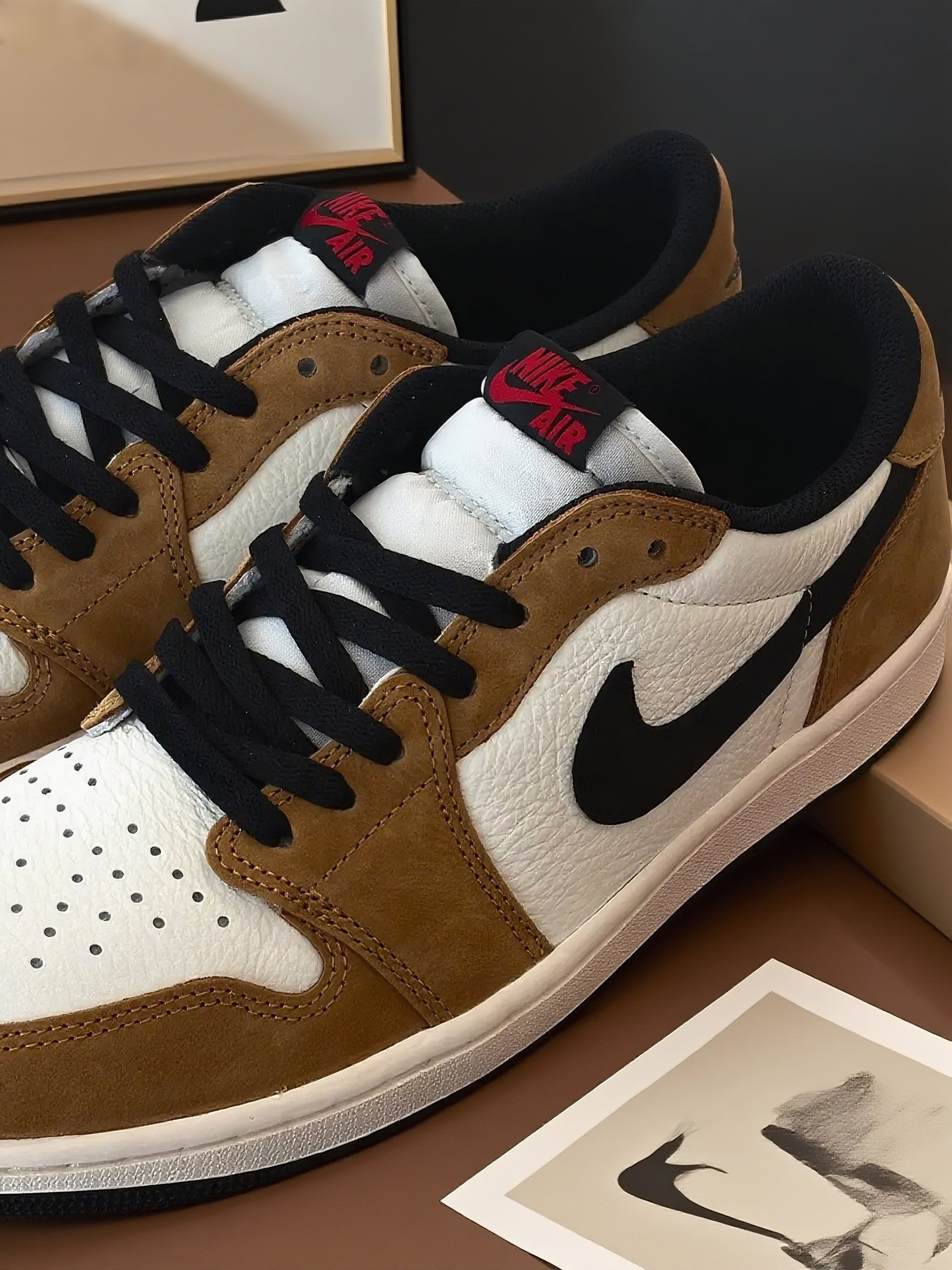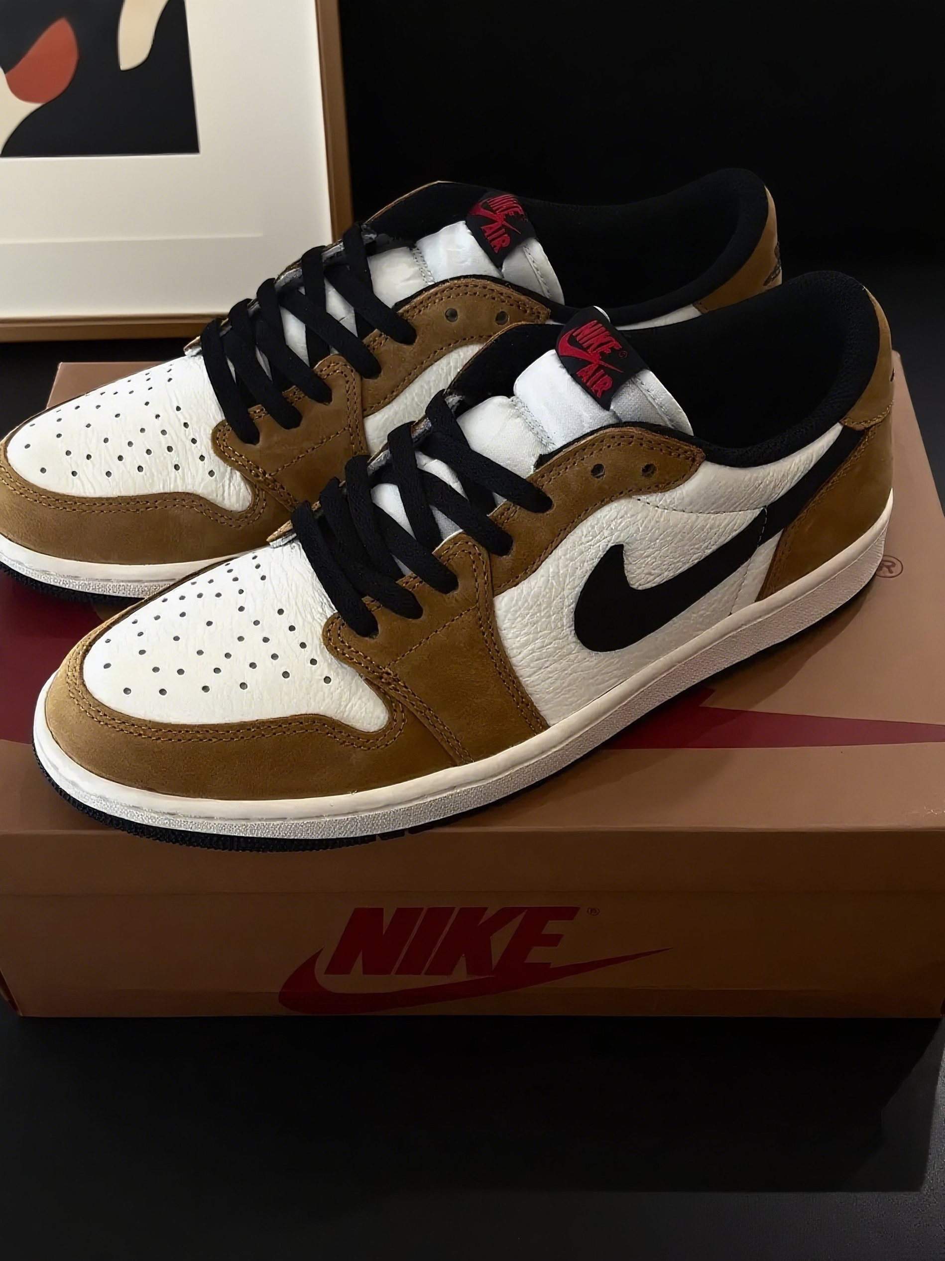 这双Jordan Air Jordan 1 Low OG “Rookie of the Year” 棕白配色,颜值很绝,复古感拉的很满!细节藏刀:荔枝皮纹摸起来糙糙的,却意外贴脚! 要说不足,就是鞋底刚上脚会有点偏硬,需要穿几次适应适应 。如果你也痴迷经典复古风,追求鞋子颜值与实用性兼备,这双棕白配色真的值得入手试试 。当然,要是对鞋底硬度特别敏感,那可得再掂量掂量~