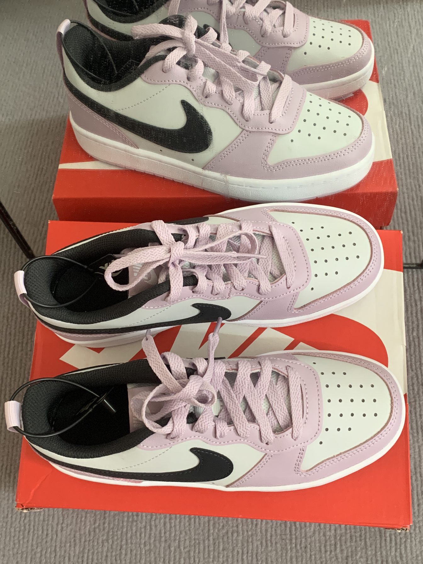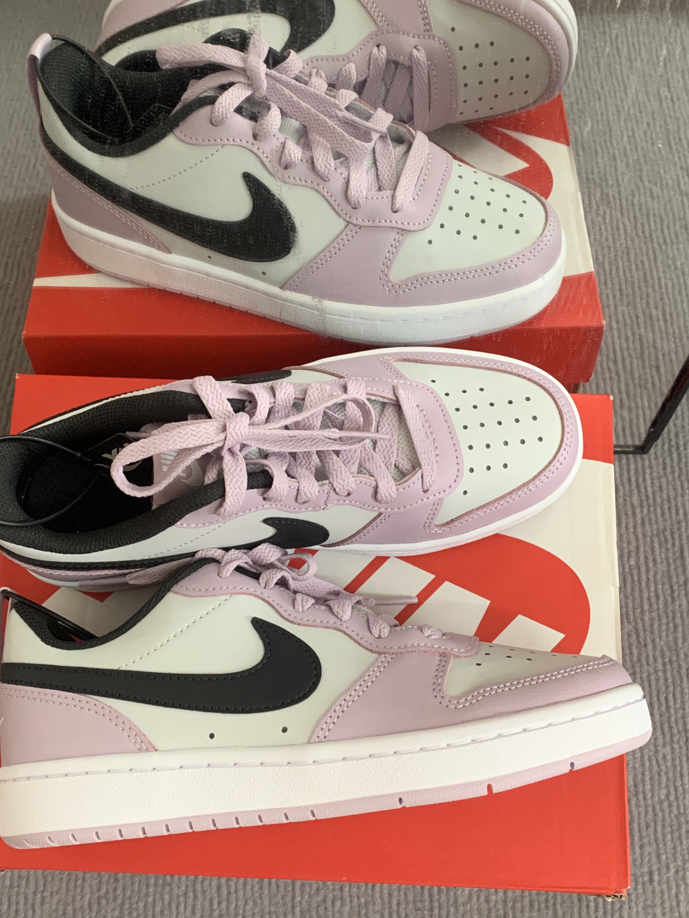 耐克自从配色属于芋泥紫,像吃了一口芋泥一样 紫色加上黑色Logo搭配起来也不奇怪 鞋面带有透气孔,鞋舌也做了很多透气孔上脚不闷 鞋子整体偏重,鞋底偏硬 鞋子百搭,适合女孩子穿的 配色这方面,耐克还是可以的👏
