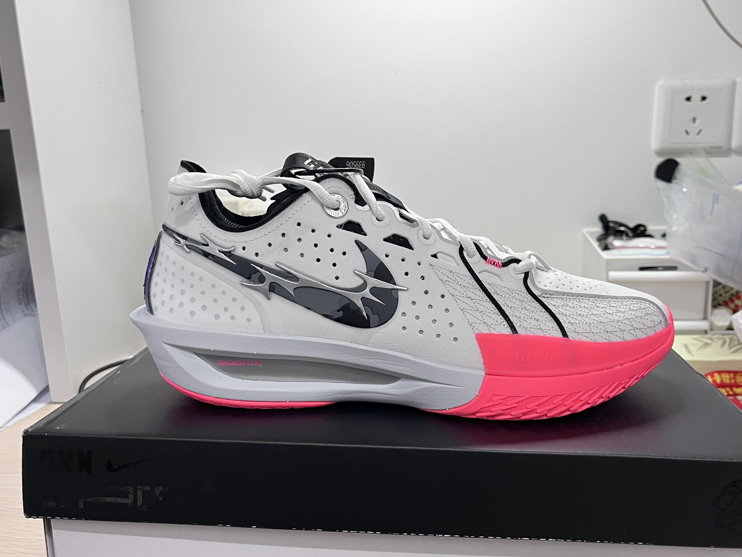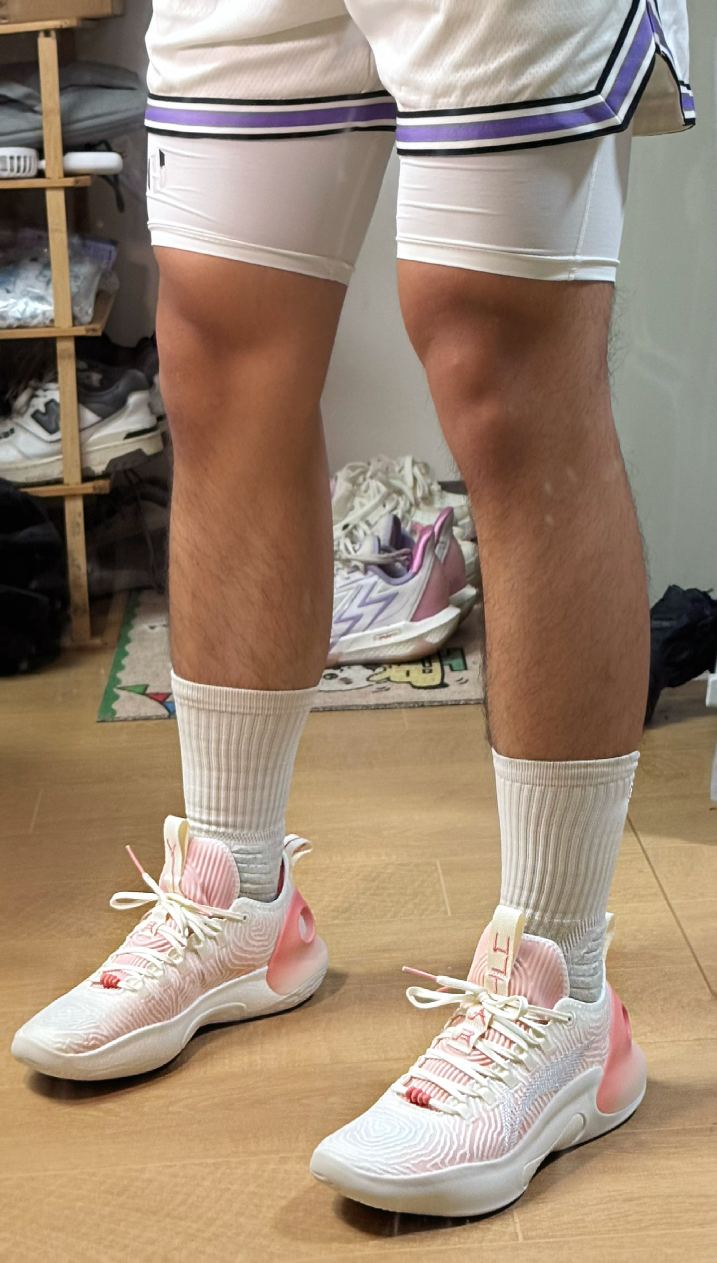 杨瀚森NBA夏季联赛首秀上脚的战靴,球鞋整体是这种浅色系的搭配,桃粉加上白色点缀真的是太好看了‼️