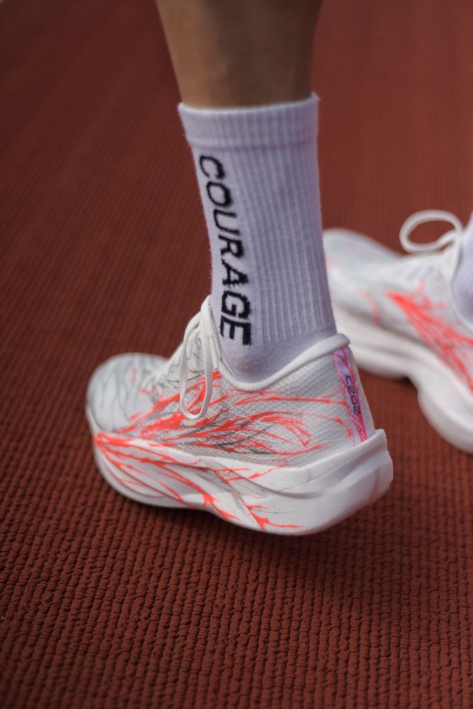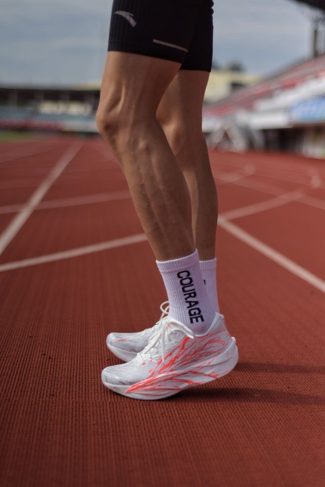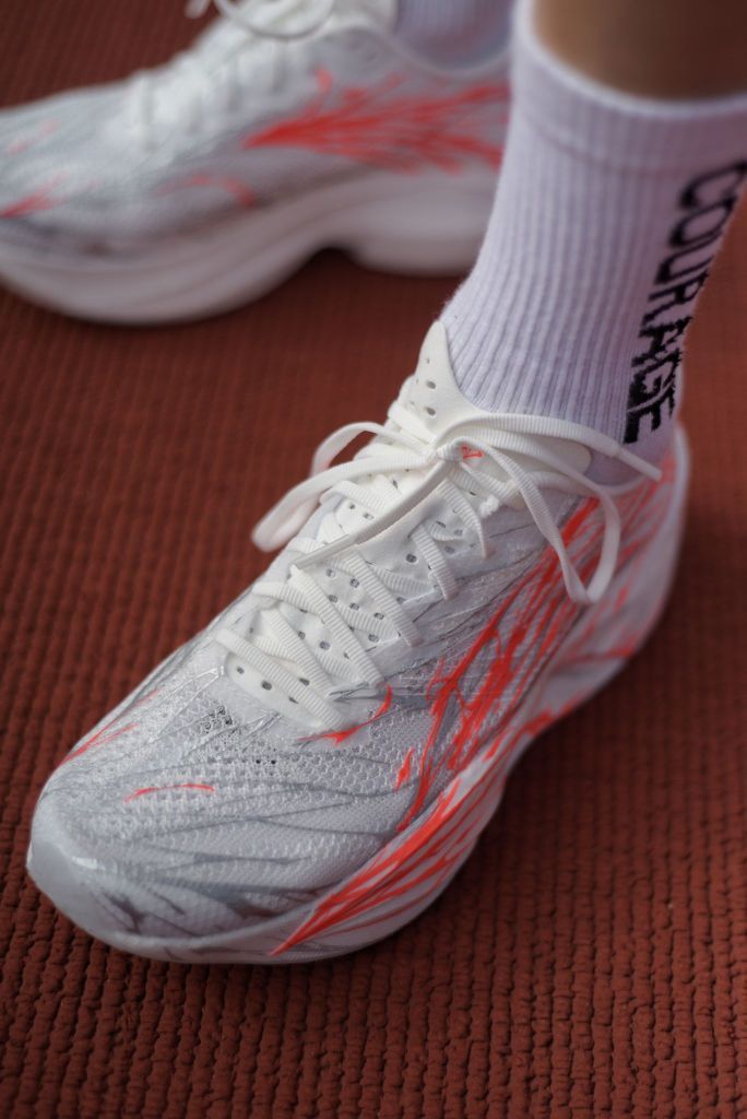 这应该是安踏最有创意且我个人觉得颜值最高的一个配色——“心跳”配色,白色基底上,红银线条如血管脉络般蔓延,细看又像心电图的波形在涌动。 夸张的血脉喷张的血管线条形状贯穿了整个安踏Logo以及鞋面,但整体看起来又不会显得过于浮夸。外观设计非常有竞速感,以及给人一种力量感,这种设计不止是好看——它呼应着「心跳配色」的内核:从2021年初代心跳的「跑者初心」,到2025年「我心永竞」的坚守...