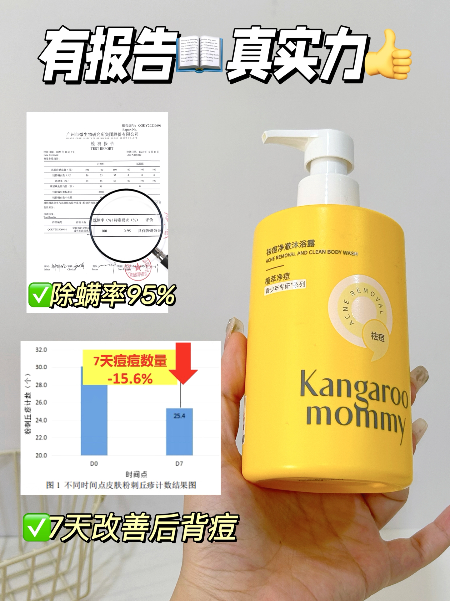 我学跳舞很多年了,出汗是常有的事儿 最近后背总是痒,弄搞得无心学习,练舞 我仔细一看原来后背长了很多小点点! OMG❗舞蹈生后背长痘多影响美观啊❗ 我试过很多祛痘沐浴露 但是市面上的祛痘沐浴露都含酸! 对青春期娇嫩肌肤来说过于刺激 用久了皮肤会干燥、掉屑😭 弄得我现在后背痘痘没好,起皮问题又来了 还好我挖到了专为12岁+青春期肌肤设计的 🌟袋鼠妈妈祛痘大黄瓶 第一次用我的感受,尊嘟太舒服了❗ 洗完...