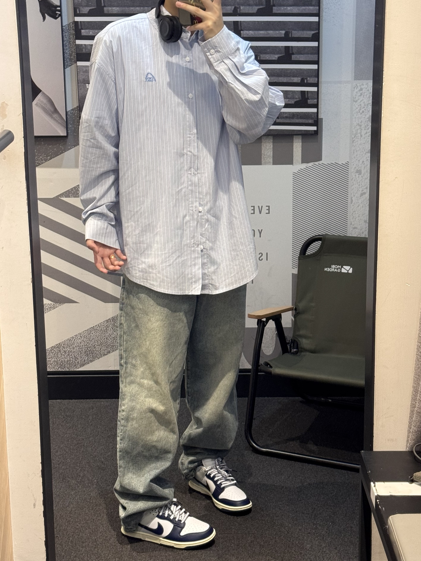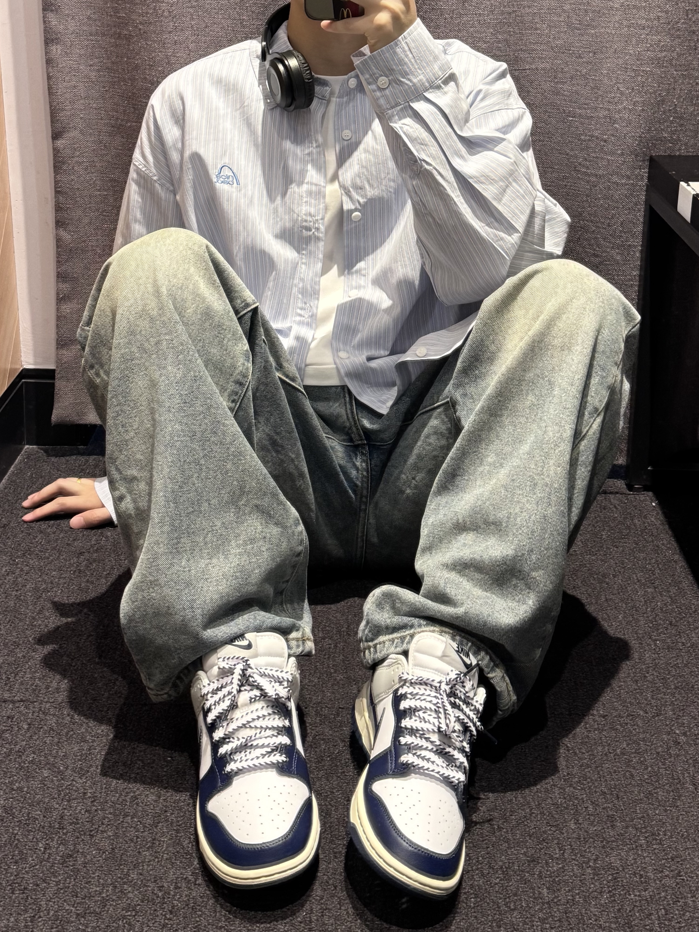 这件是条纹衬衫的含金量谁懂🥺 蓝白色超显干净‼️ 薄款一年四季都能穿的着~ 略微宽松的版型内搭外穿都贼拉时髦😉 今天就内搭一件白色T恤➕牛仔裤巨显少年感 再来一双同色系dunk 男友的穿搭模版不就来了🎧 #暑期穿搭逆袭 #剪吊牌最快的一次 #酷暑穿搭不重样 #夏日gymfit #热夏必备通勤装