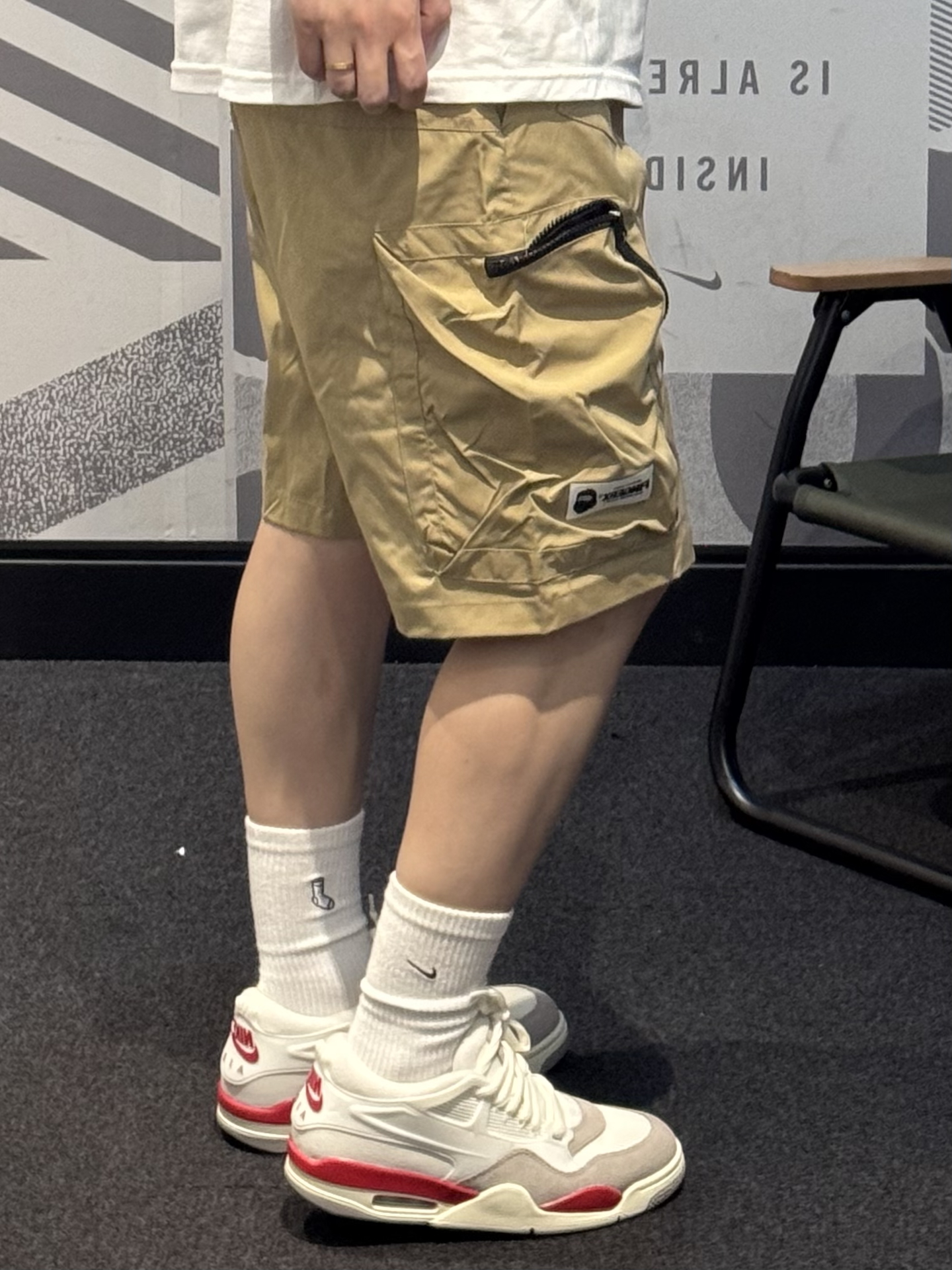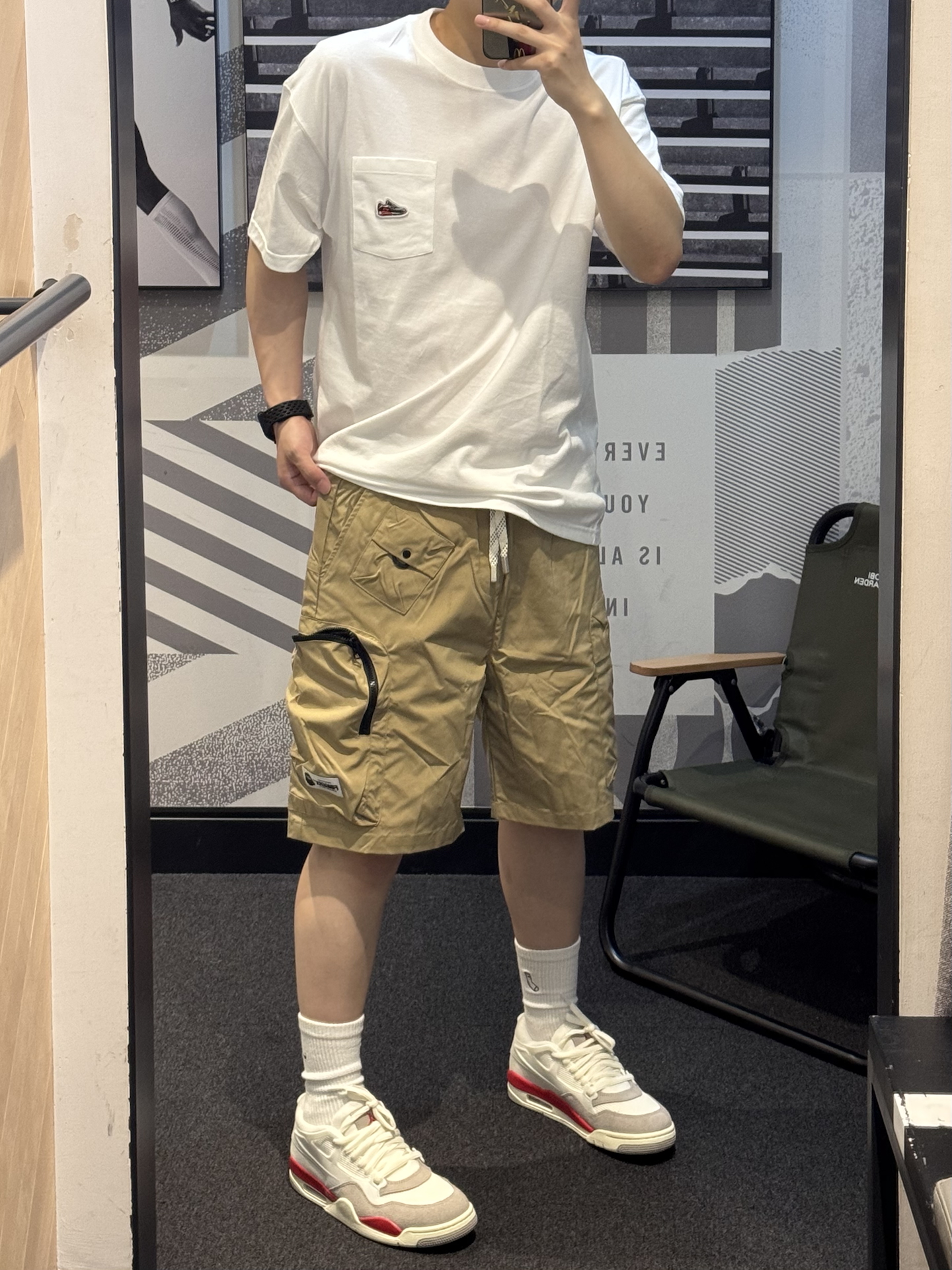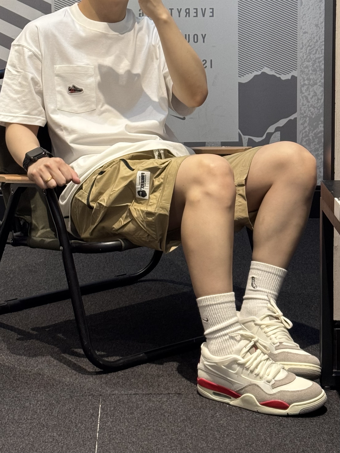 谁懂卡其色工装短裤的含金量🥺 卡其色真的就是中性风穿搭的天菜!! 梭织面料 轻薄透气夏天穿正合适 ~ 宽松版型 上身自带松弛感😉 大口袋设计实用性满满💯 搭配白红AJ4RM➕白色T恤 轻松get少年感穿搭🎧 #分享男孩子的宝藏短裤 #今日份搭宝藏休闲五分裤 #Fingercroxx穿搭 #Fingercroxx #剪吊牌最快的一次