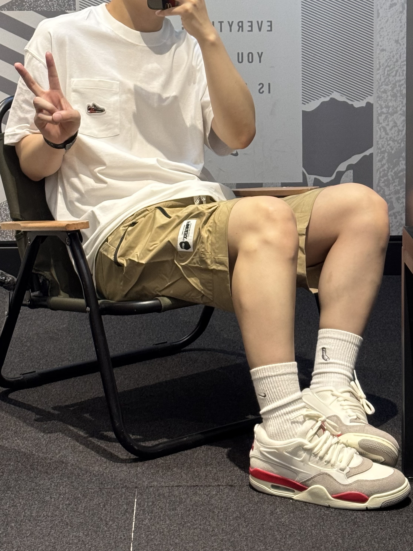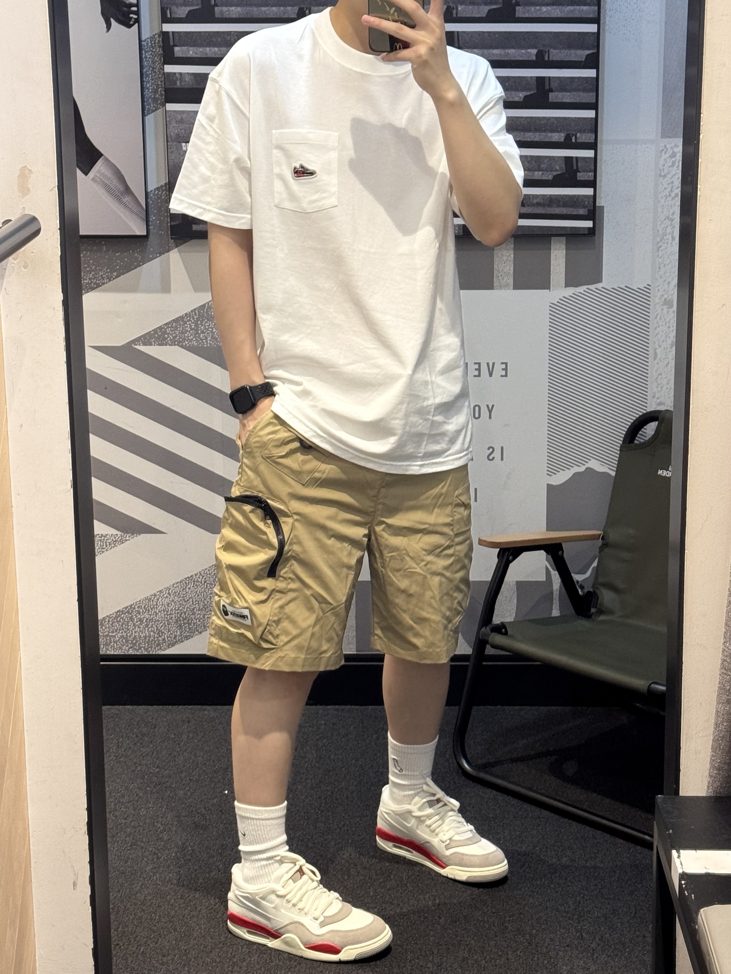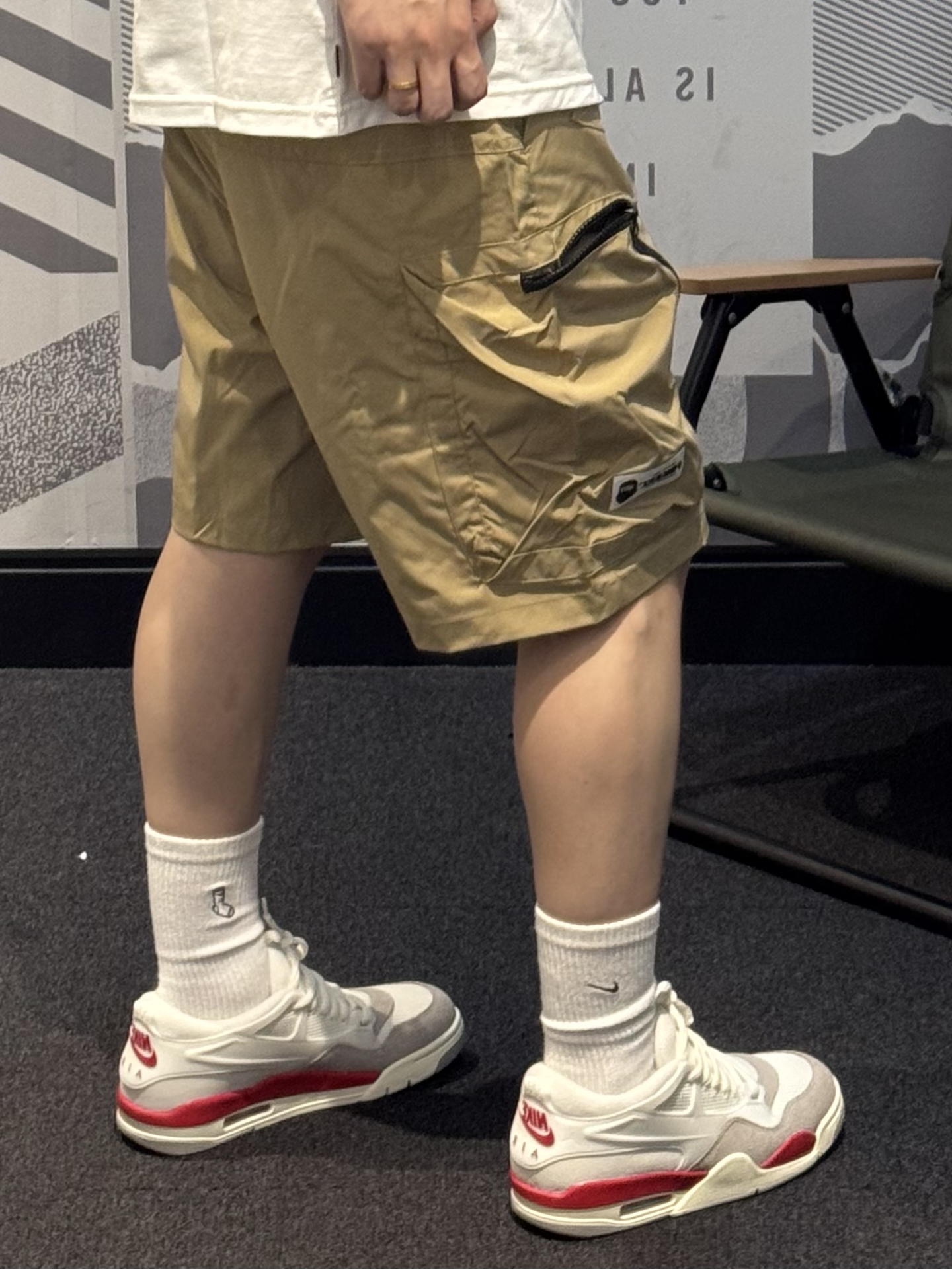 谁懂卡其色工装短裤的含金量🥺 卡其色真的就是中性风穿搭的天菜!! 梭织面料 轻薄透气夏天穿正合适 ~ 宽松版型 上身自带松弛感😉 大口袋设计实用性满满💯 搭配白红AJ4RM➕白色T恤 轻松get少年感穿搭🎧 #分享男孩子的宝藏短裤 #今日份搭宝藏休闲五分裤 #Fingercroxx穿搭 #Fingercroxx #剪吊牌最快的一次