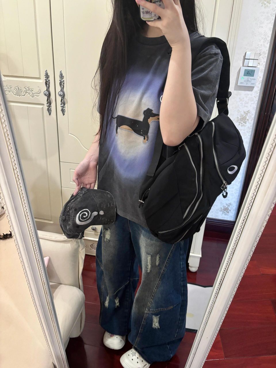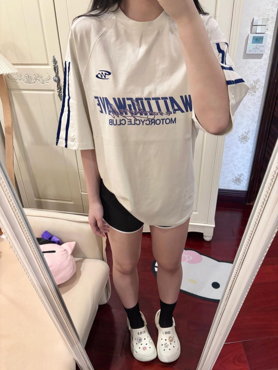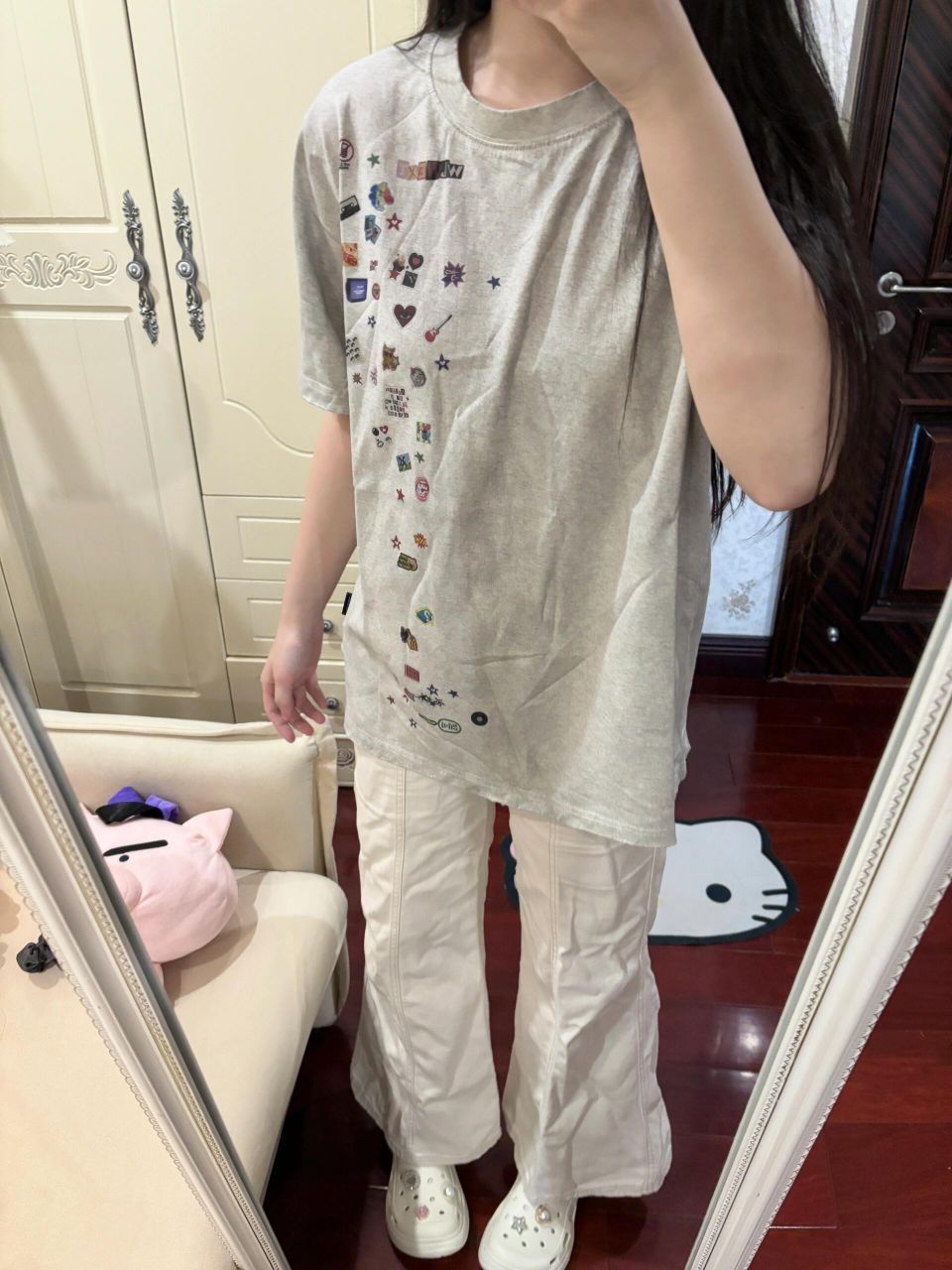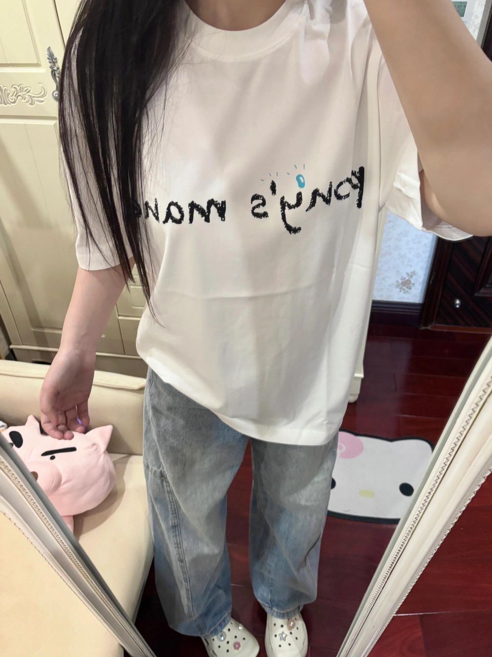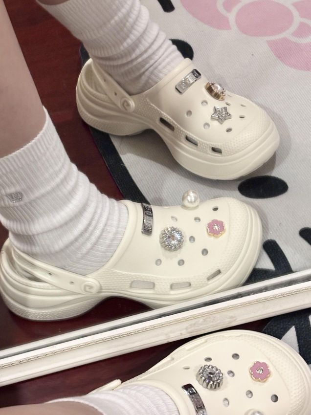 怎么这个小羊居居又在耍帅哈哈哈哈哈依旧爱穿酷酷的衣服~快看我新入的拖孩!!blingbling的好美!很日常谁懂最近广州天天下雨洞洞鞋的含金量……比我之前买的大头厨师鞋防滑好多(地滑摔了几次