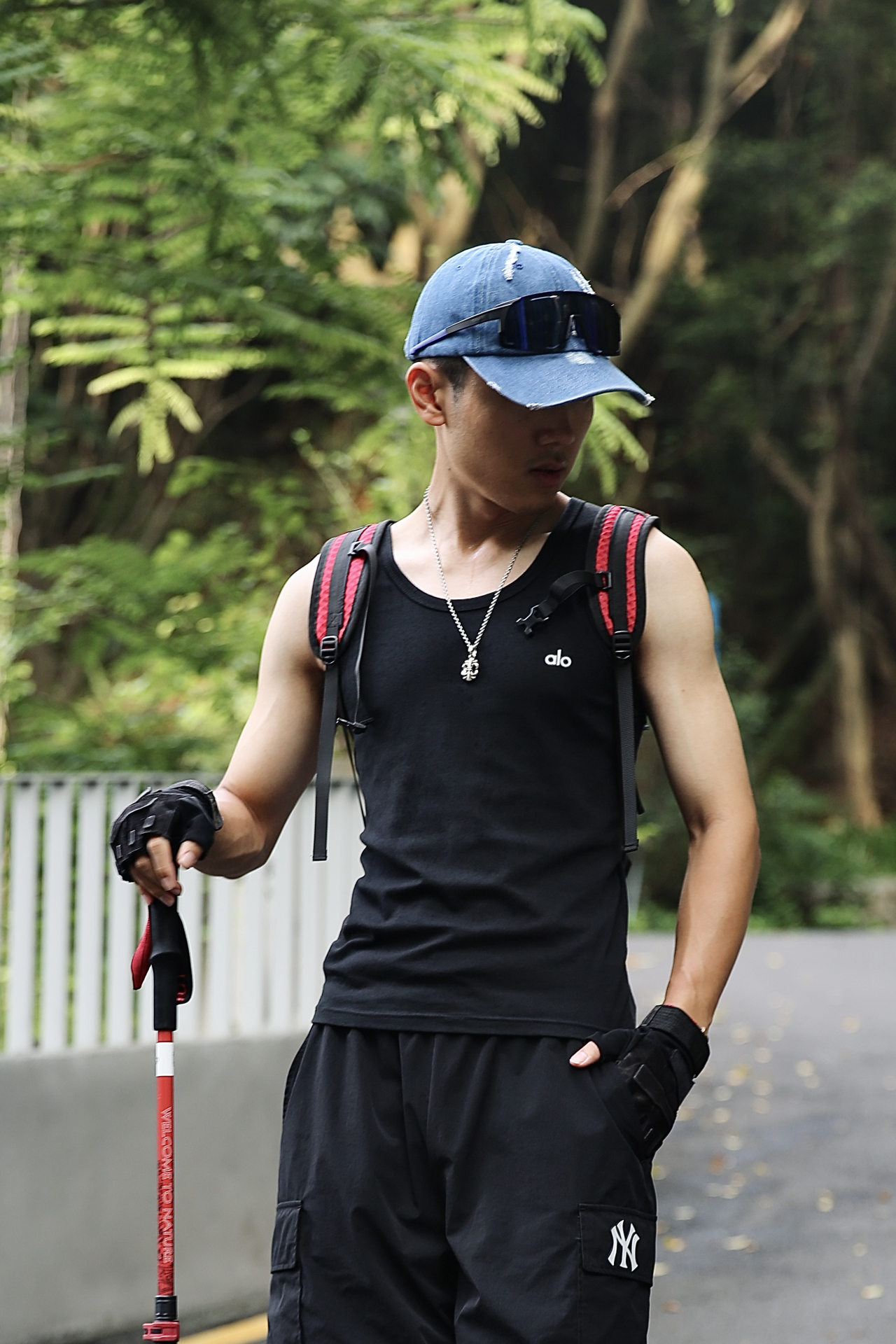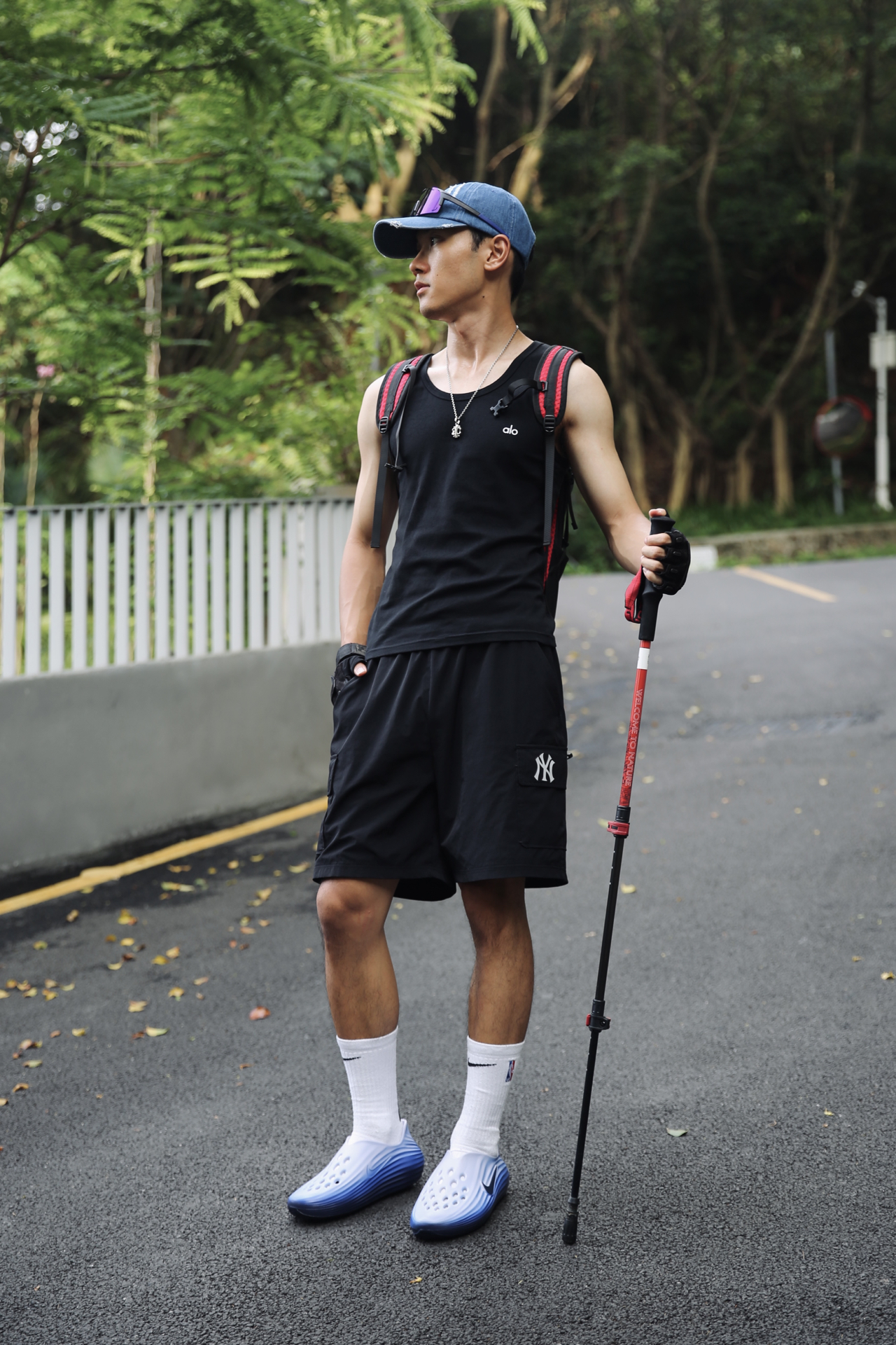 这次是一次轻装出行的夏季徒步旅行☀️ 整体穿搭我选择了简单实用,但也得顺眼耐看👇 👕 alo黑色背心,夏天走起来不贴身不闷,出汗也干得快 👖 NY黑色工装裤,口袋够用、材质结实,野一点的路线也能应对 🧢 蓝色遮阳牛仔帽,除了防晒外,颜色和整体黑色系搭起来也挺有层次感 👟 Nike 洞洞鞋,之前还担心支撑力不够,但实际穿下来意外地轻盈透气,湿滑路段走着也稳 🎒 伯希和11.2L的小款,短途刚刚好,...