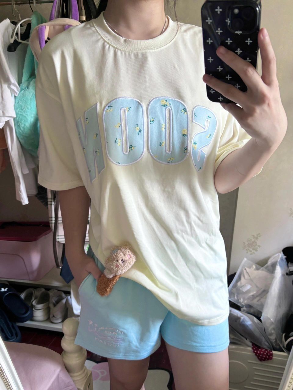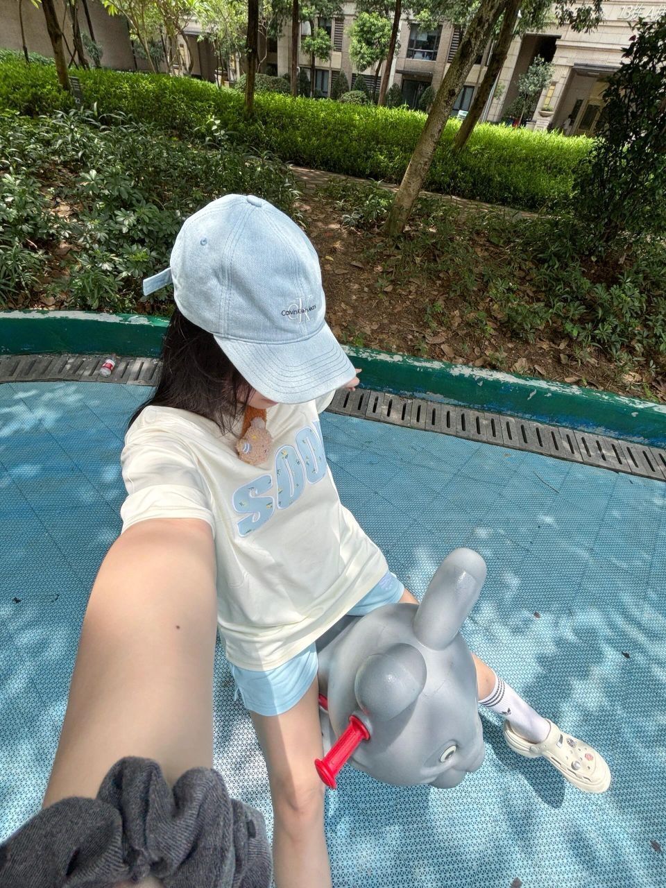 哈哈哈哈哈最近爱上自己下楼散步拿快递晒太阳!!然后去小游乐场骑小孩玩的木马 暑假好久没出门活动了 出去晒太阳整个人都很有鲜活感 心情都美丽了起来 黄色配蓝色好有氧气感!跟阳光好适配!!