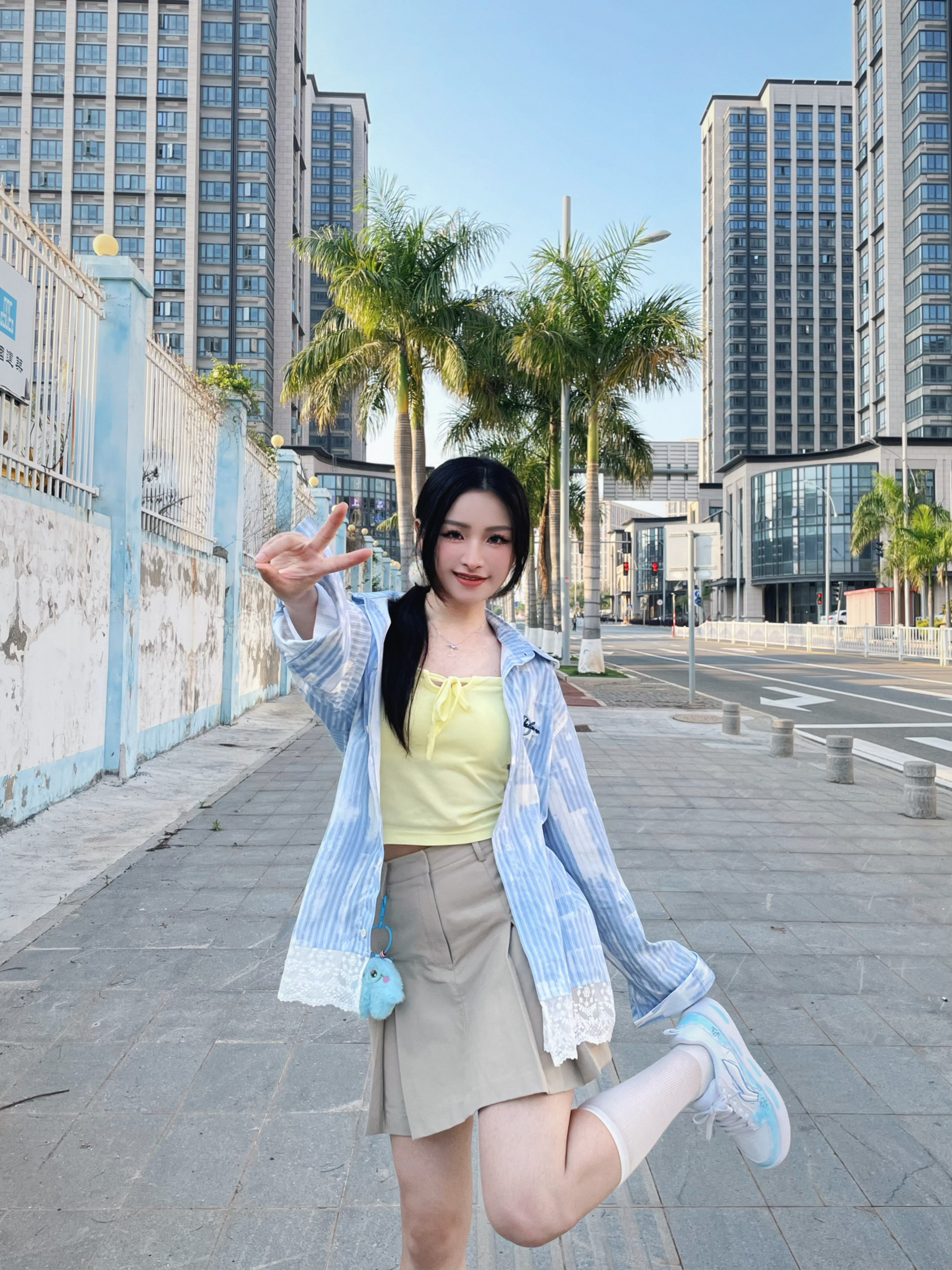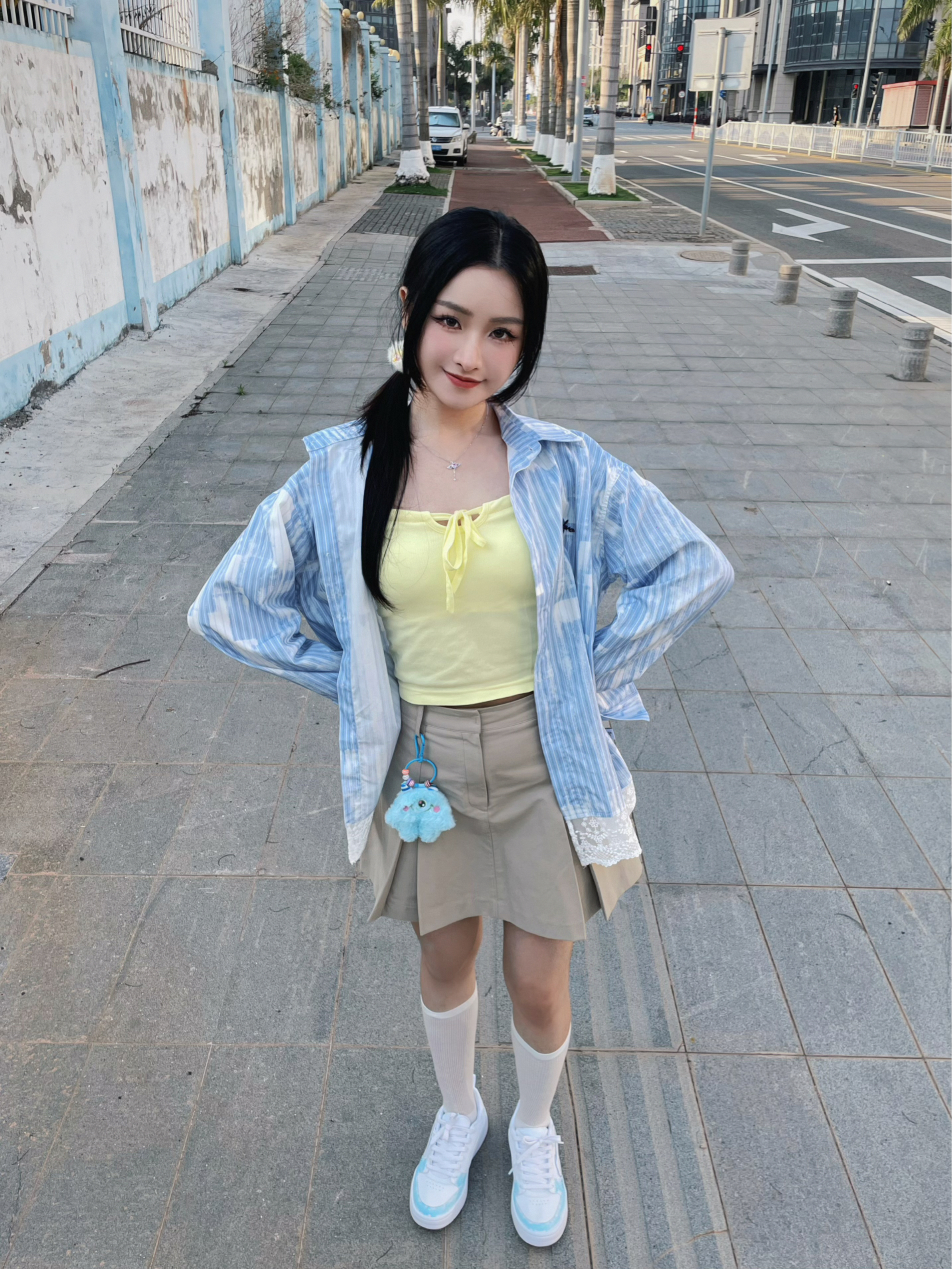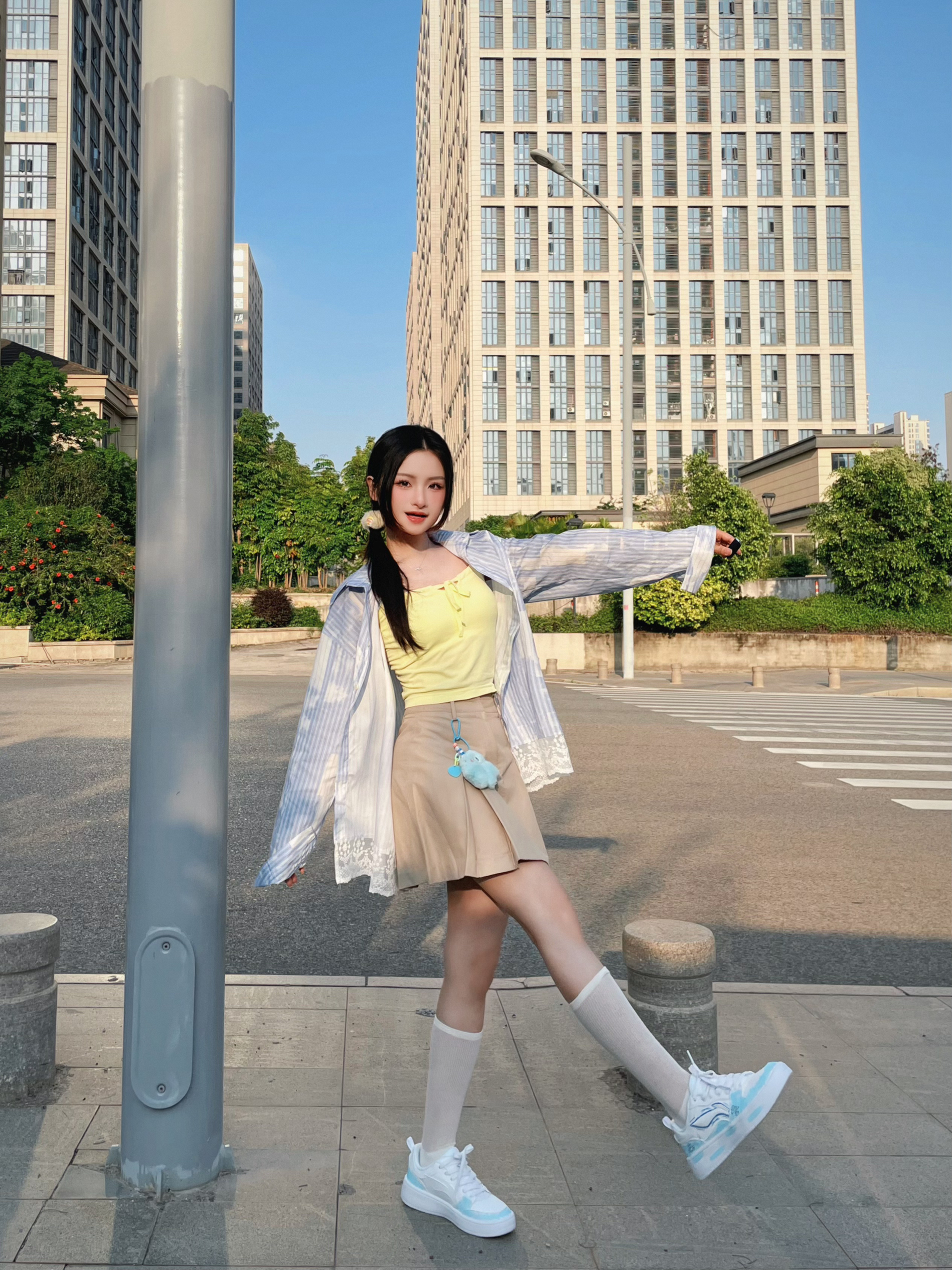 谁懂薄荷蓝色真的好清爽! 内搭件亮黄撞色小背心✨➕百褶裙 青春感要溢出屏幕啦 👟我搭配了李宁的定制鞋 薄荷蓝涂鸦呼应上衣 后跟的小雏菊可可爱爱🌼 小白鞋上脚好有氧气感 穿这套甜甜的 很动心~ 出门沐浴一下春日阳光☀️