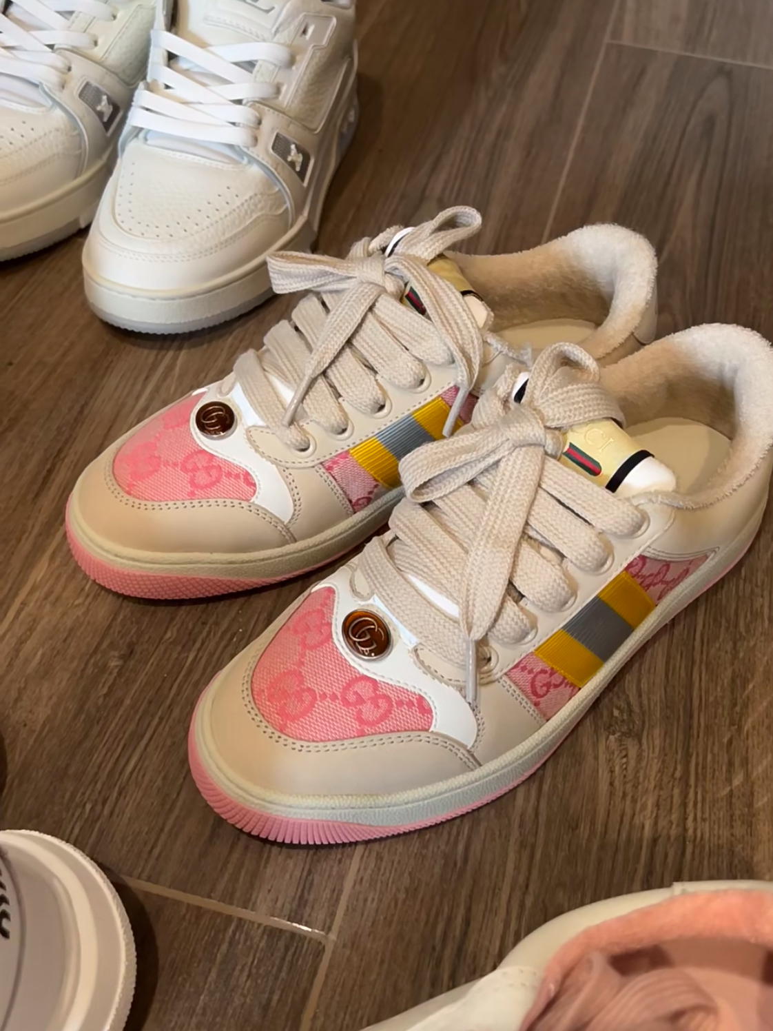 本篇笔记关联了Valentino Rockstud Untitled 百搭厚底 舒适休闲 时尚运动 板鞋 PY2S0931MZD 白金、Gucci Screener 板鞋 脏脏鞋 经典复古减震帆布轻便 女款/米色/粉色等商品,为用户提供真实的使用体验和购买参考。