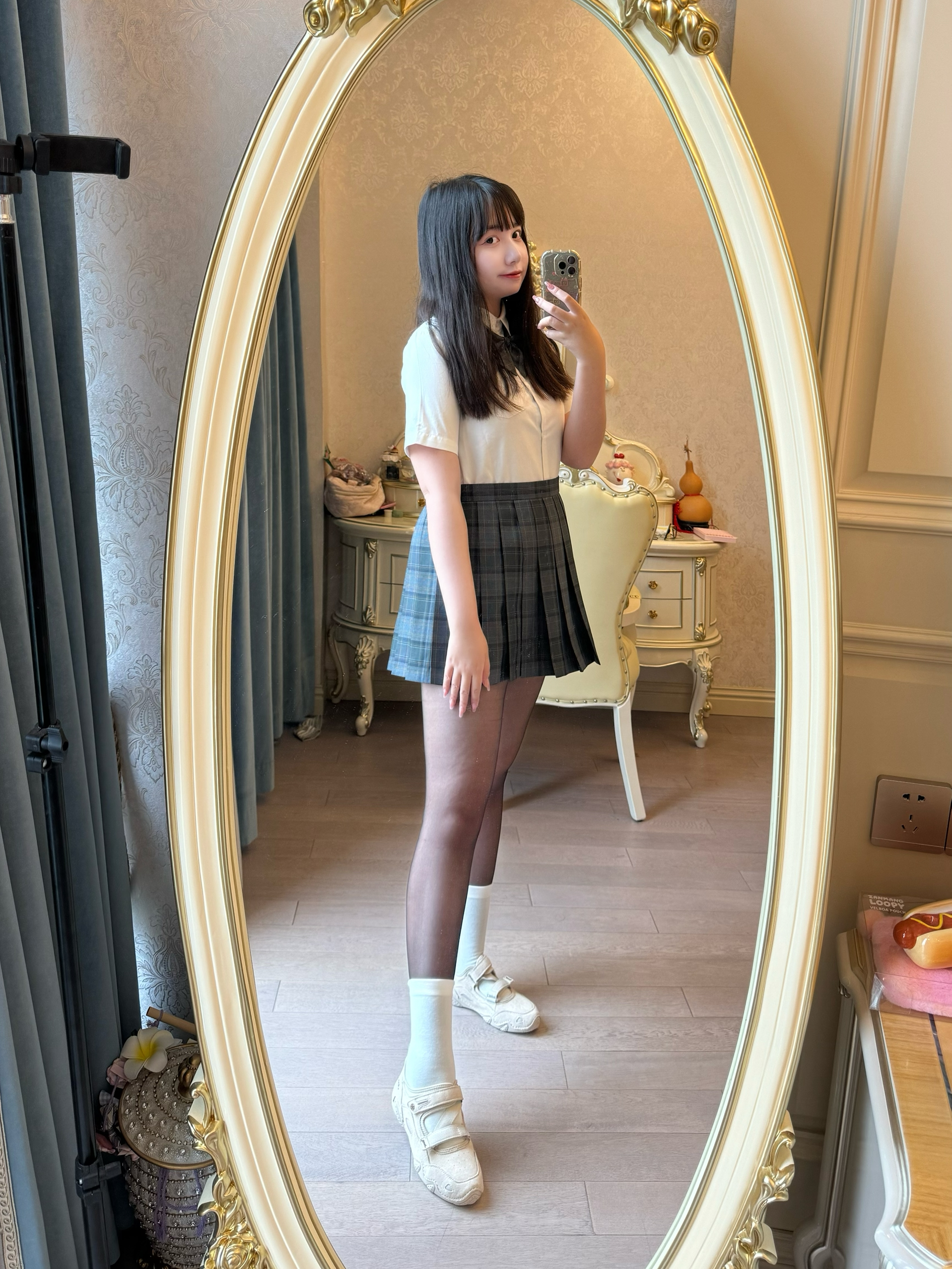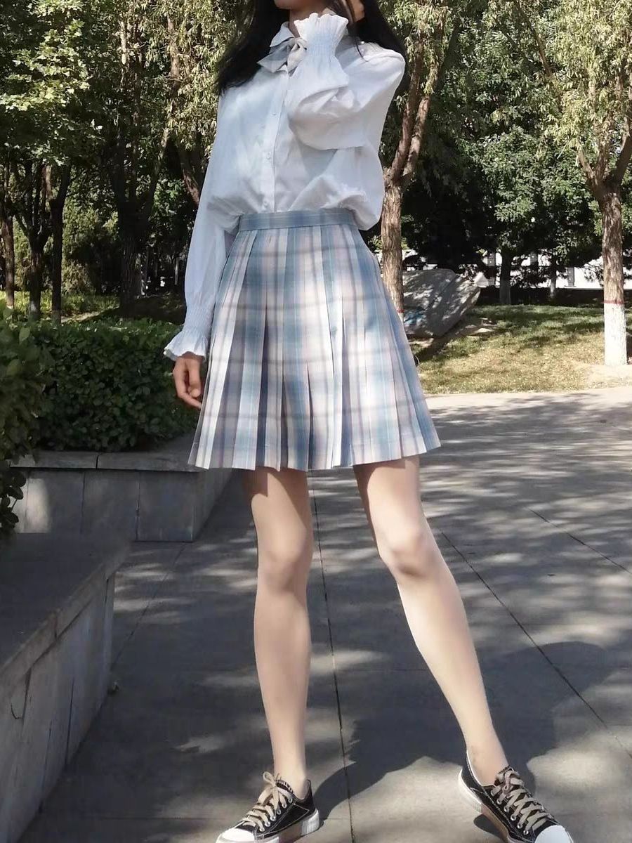 深色jk短裙配上浅色鞋👟!真的非常适配漂亮,关键是显得腿特别长!