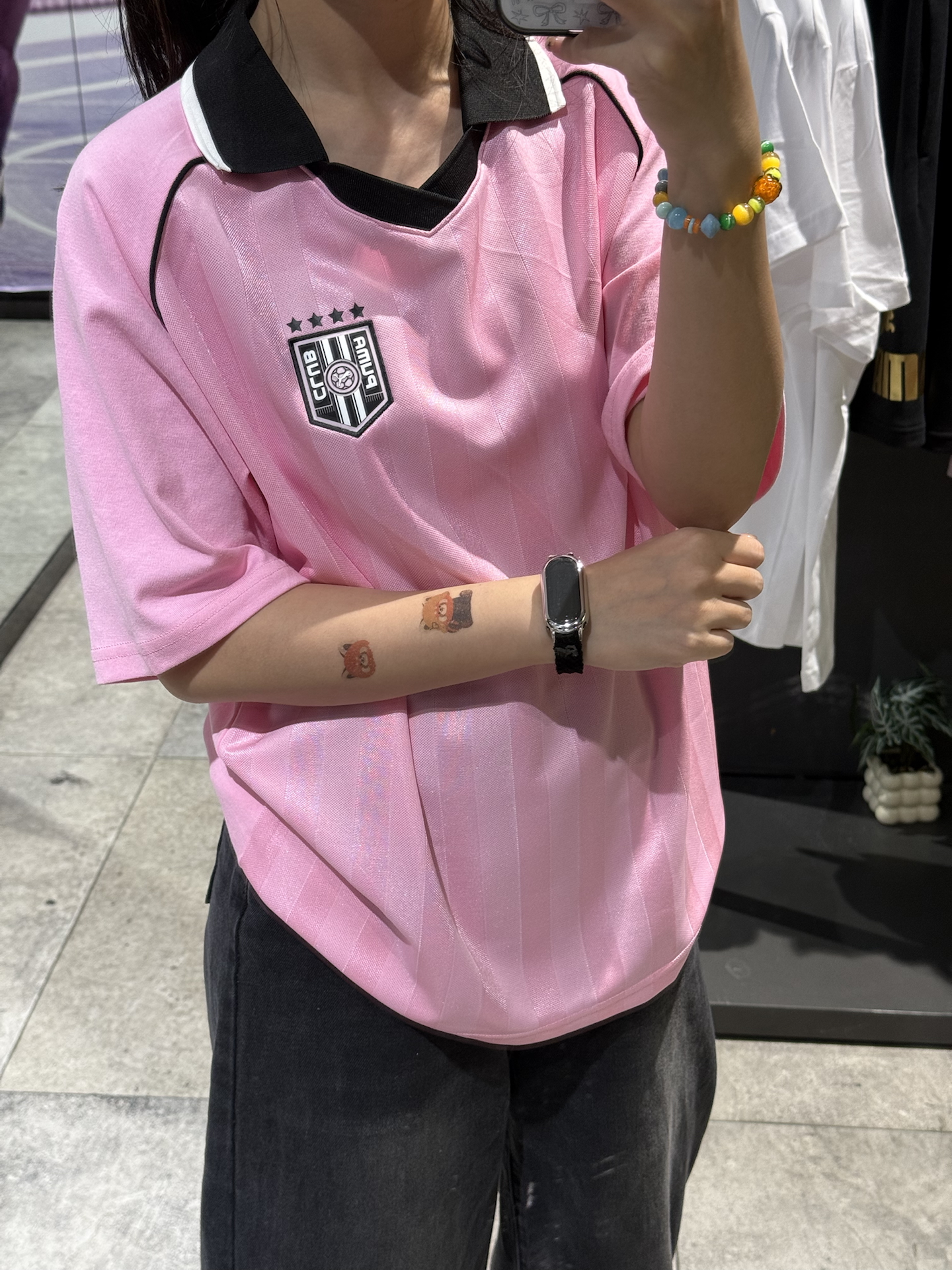 被朋友安利了彪马这款复古条纹印花短袖Polo衫,入了粉色款。V领设计确实有点小性感,但粉色虽然吸睛,感觉搭配上有点难搞……有没有搭配小能手分享下思路呢??