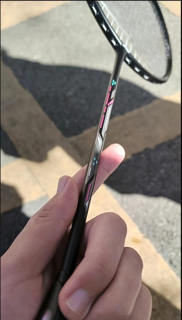 在球拍的规格方面,我选择的是4UG5版本。这款球拍有黑色和白色两种颜色,黑色有4U和5U两个版本,而白色只有6U,可能是专门为入门女生打造的,男生使用黑色会更合适一些。 单看这把球拍的涂装,在远处拿在手上,你很难分辨出这是80还是小钢炮,涂装将近百分之九十都和80相似。因为我自己也有一把80,在不拿近的情况下,除了一些小细节,基本没什么差别,涂装这块做得相当到位。 拍框采用的是力学优化拍框...