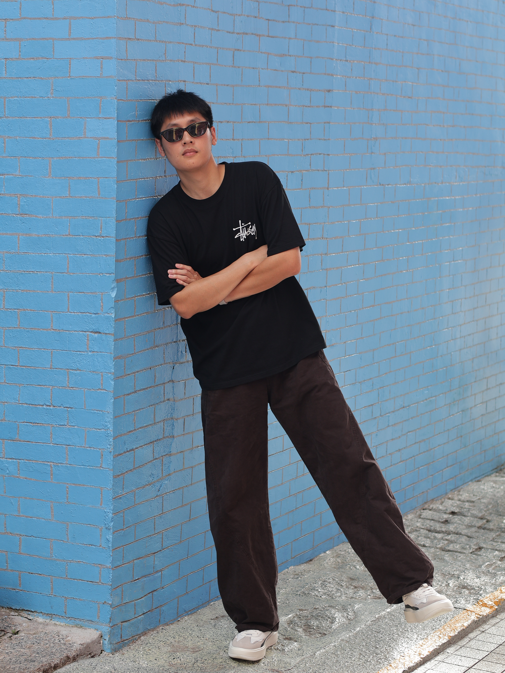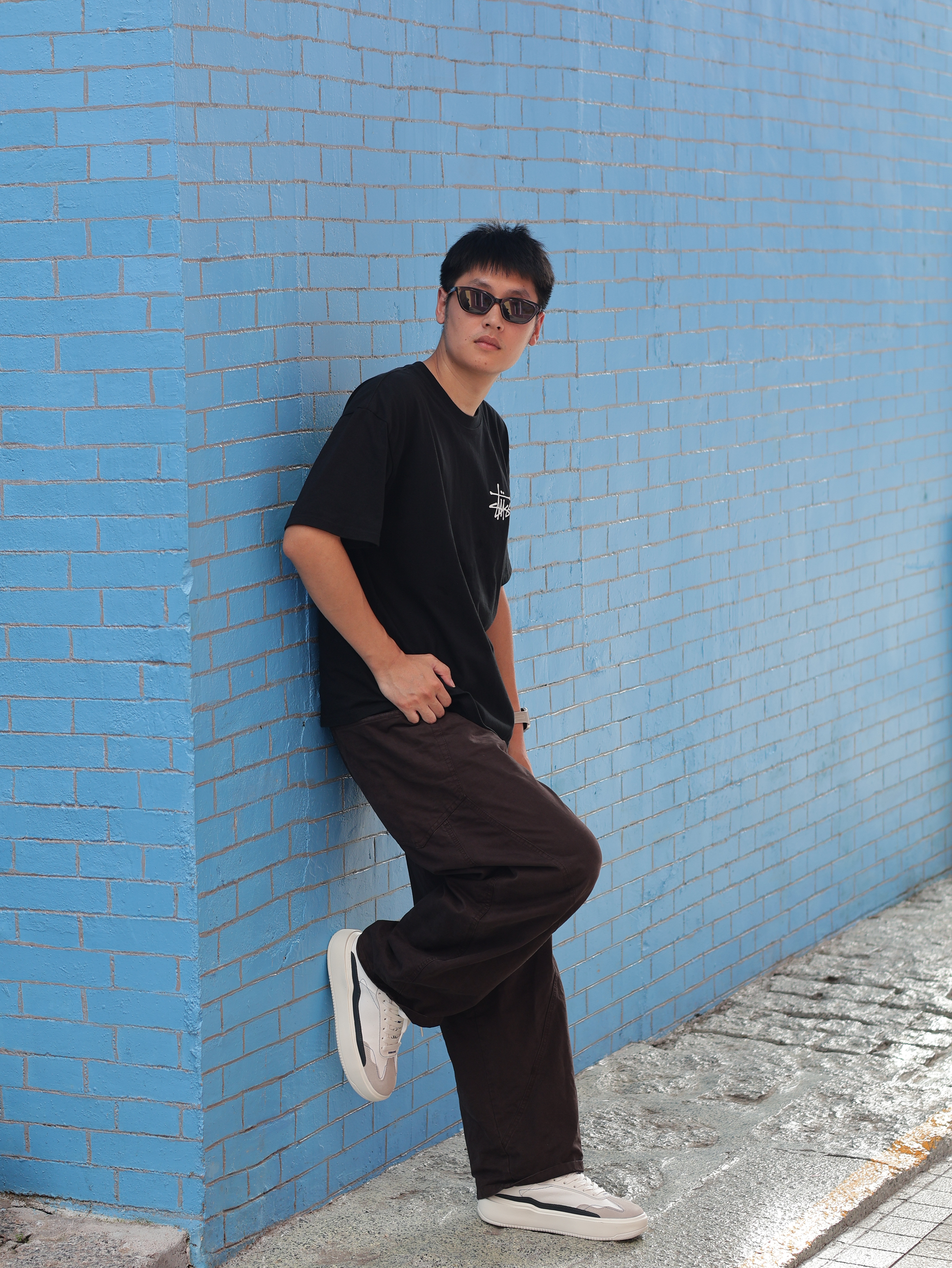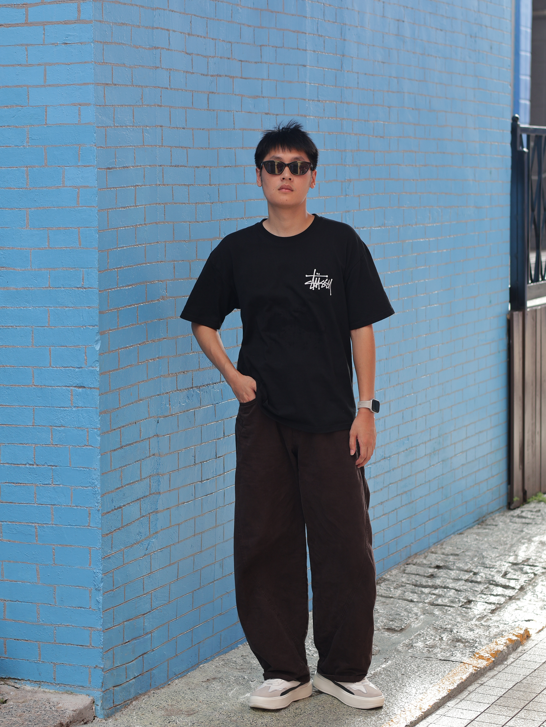 出门放风的一天,松弛感也得躲过夏日炎炎 今天简单的配色搭配一下~ 👕 黑色的Stussy短袖,经典印花也不会过时 👖搭配深棕色阔腿裤,微喇的阔形 👟上脚一双增高的灰白德训鞋,厚底的脚感也比薄底舒服呀~ 上短下长的A版型就拿捏了