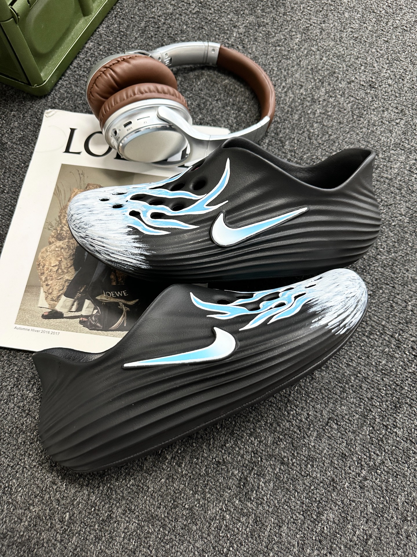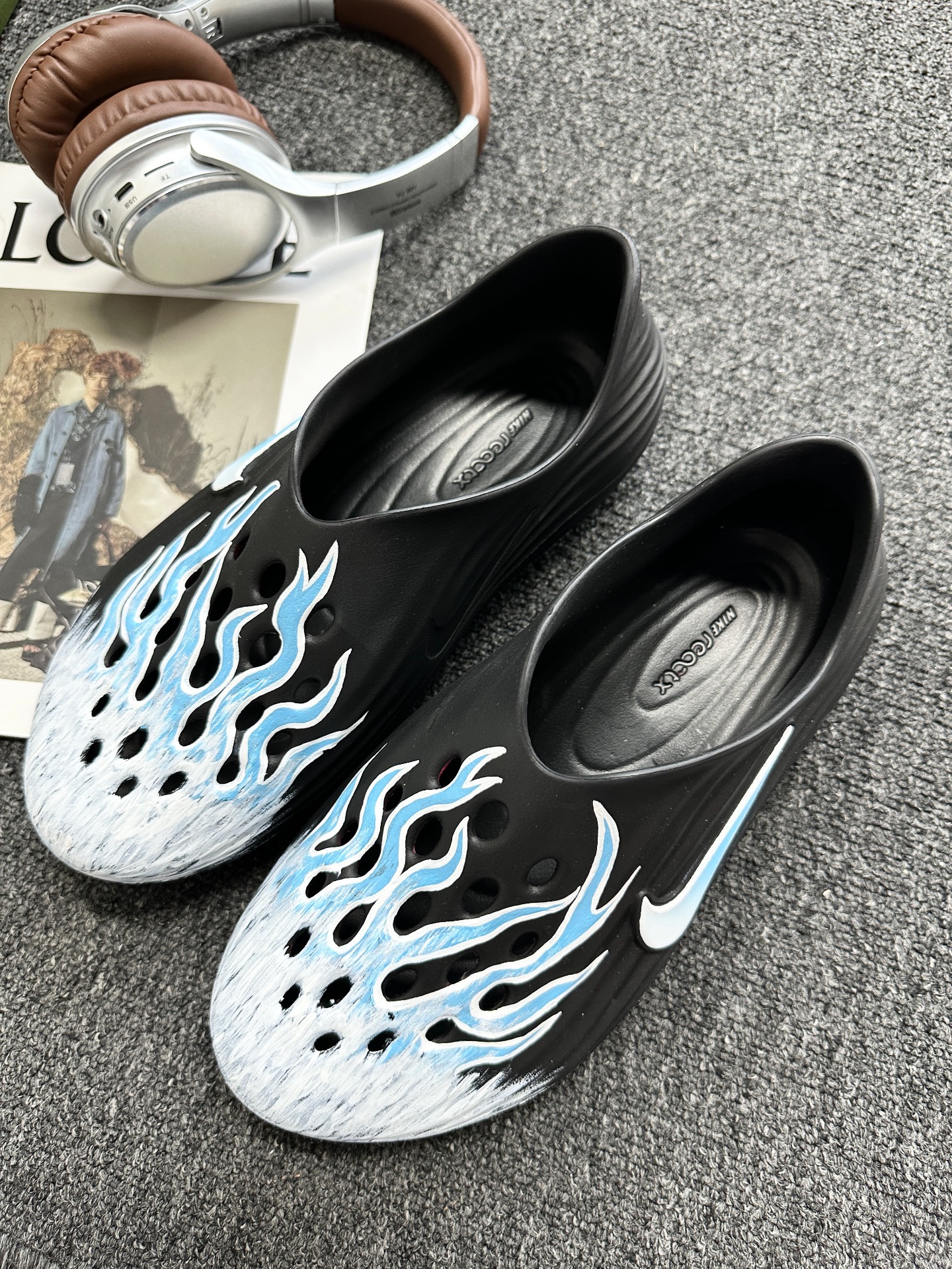真的太顶了 冰蓝火焰🔥的设计 日常穿搭 出街两不误 不是那种洞洞鞋 上脚软踏踏的感觉 鞋底有点偏硬 还有增高的效果 送男友或自己穿都超可💯