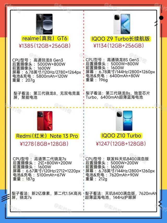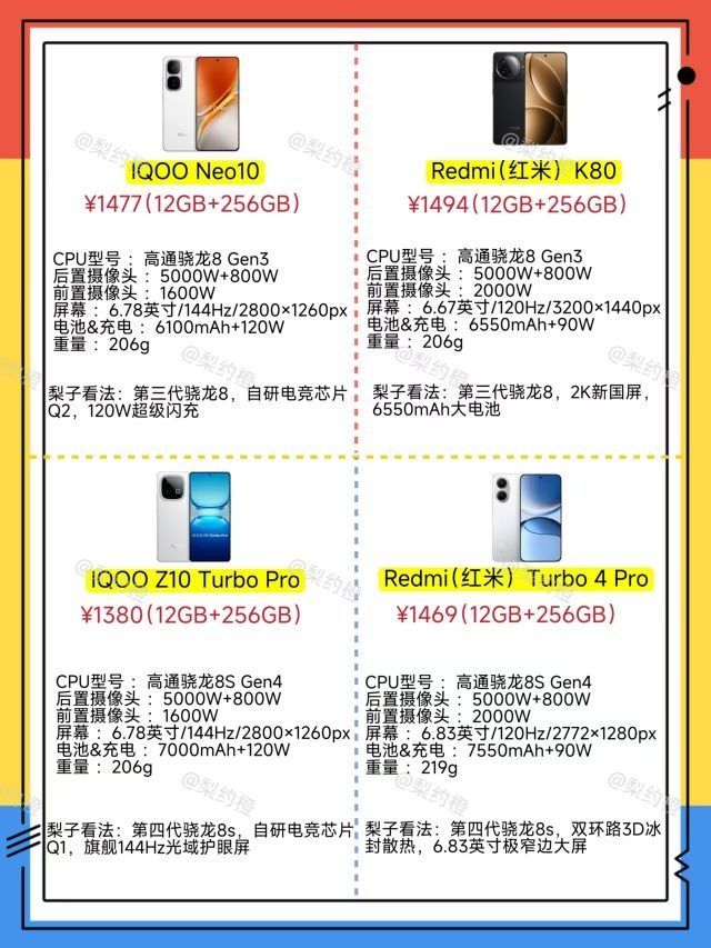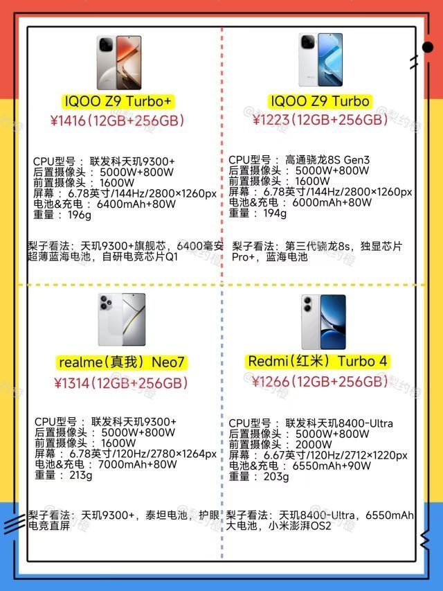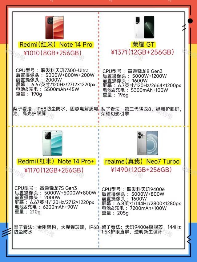 1000 - 1500 元预算挑选手机,可从以下方面考量: _ 明确核心需求:明确主要用途,若用于日常社交、刷视频、看新闻,对性能要求不高,重点关注续航、屏幕观感和系统流畅度;若玩游戏,性能(处理器、散热)是关键,其次看屏幕刷新率、触控采样率、续航与快充;若用于拍照,关注传感器尺寸、光圈大小、光学防抖、品牌算法调校和多摄协同能力。 _ 性能参数:处理器是手机“大脑”,决定运行速度和多任务处理能力,...