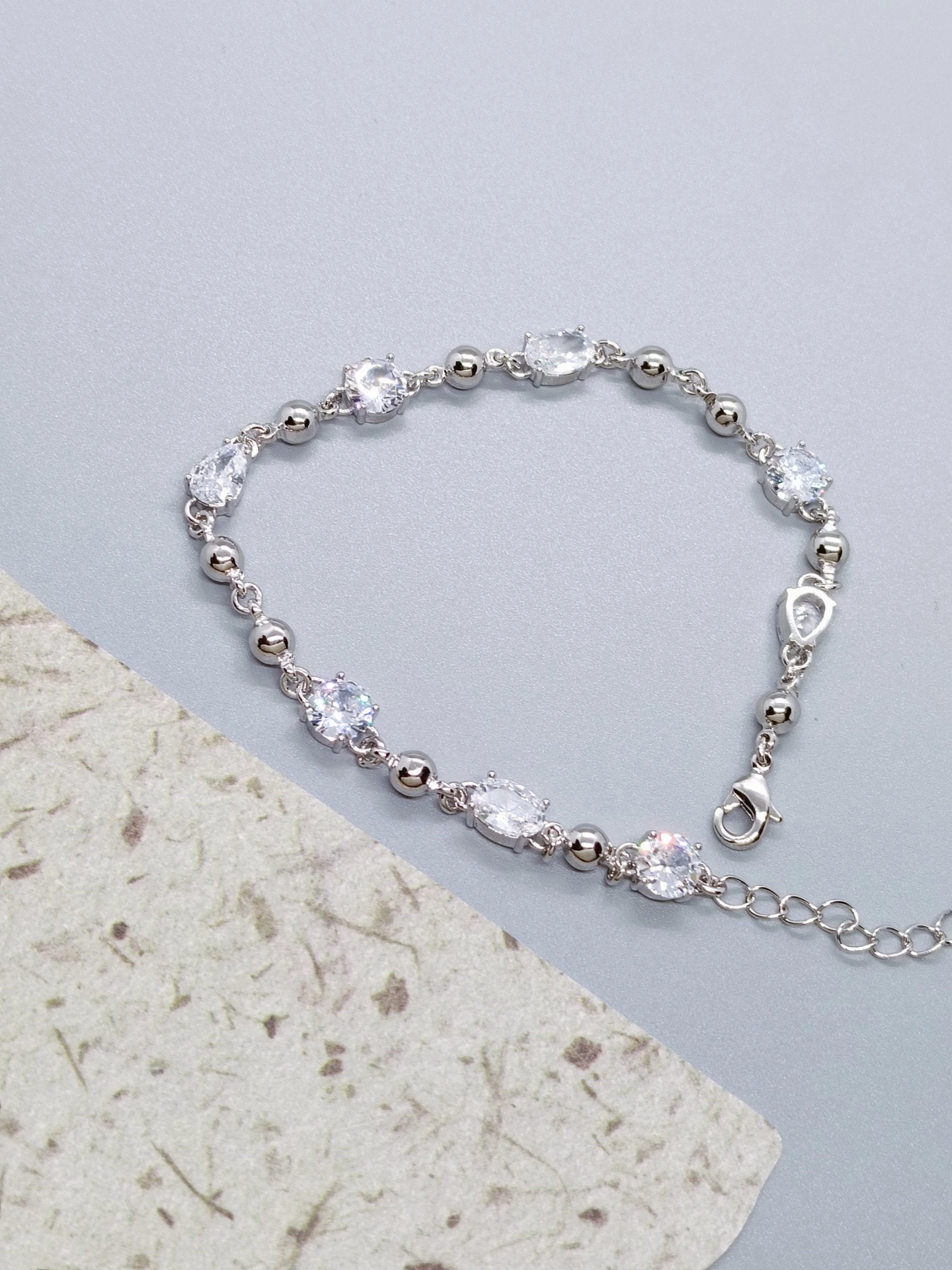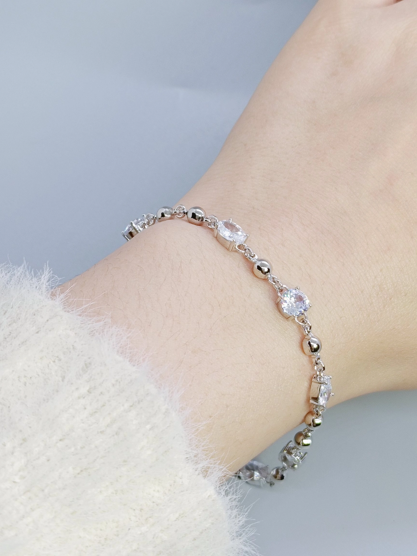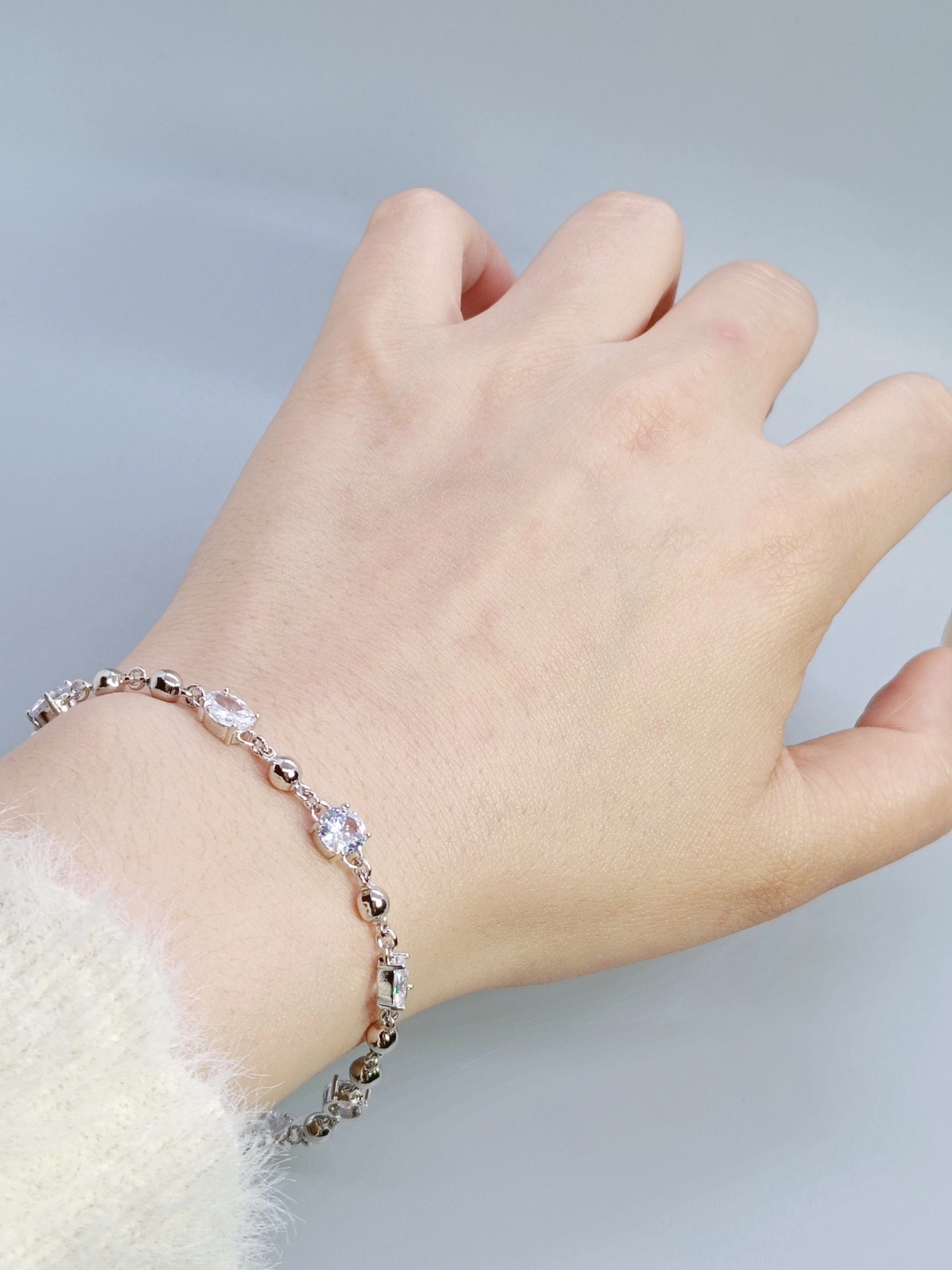 挖到宝啦✨!不规则拼接设计的手链太绝啦!锆石超级闪~上手意外显白😄,戴着有一种温柔又酷酷的感觉💫。日常穿简约衣服,有它的点缀立马精致高级了起来👏。唯一缺点就是可能太闪,会很吸引目光哈哈~不过我还挺喜欢滴😘!