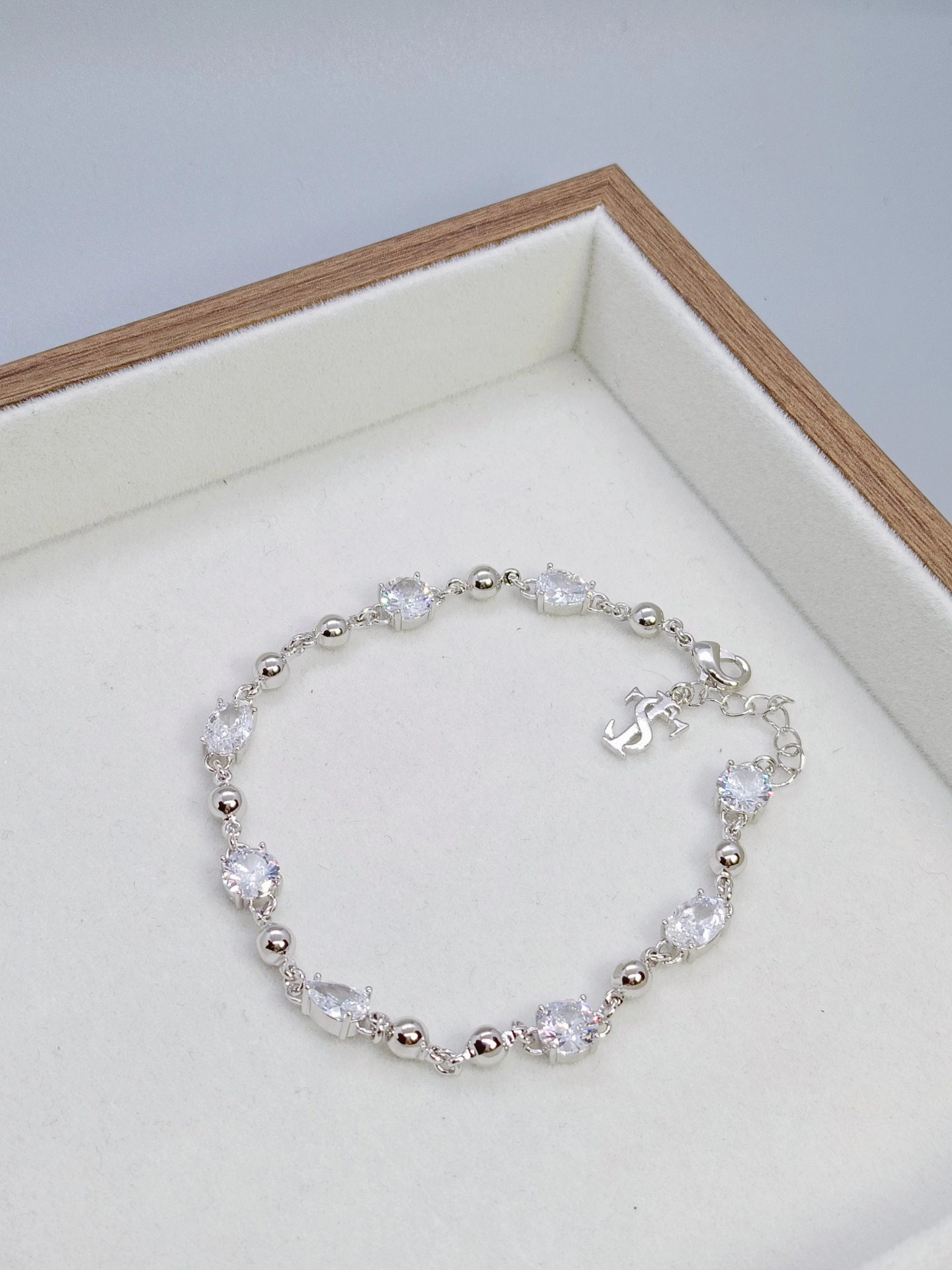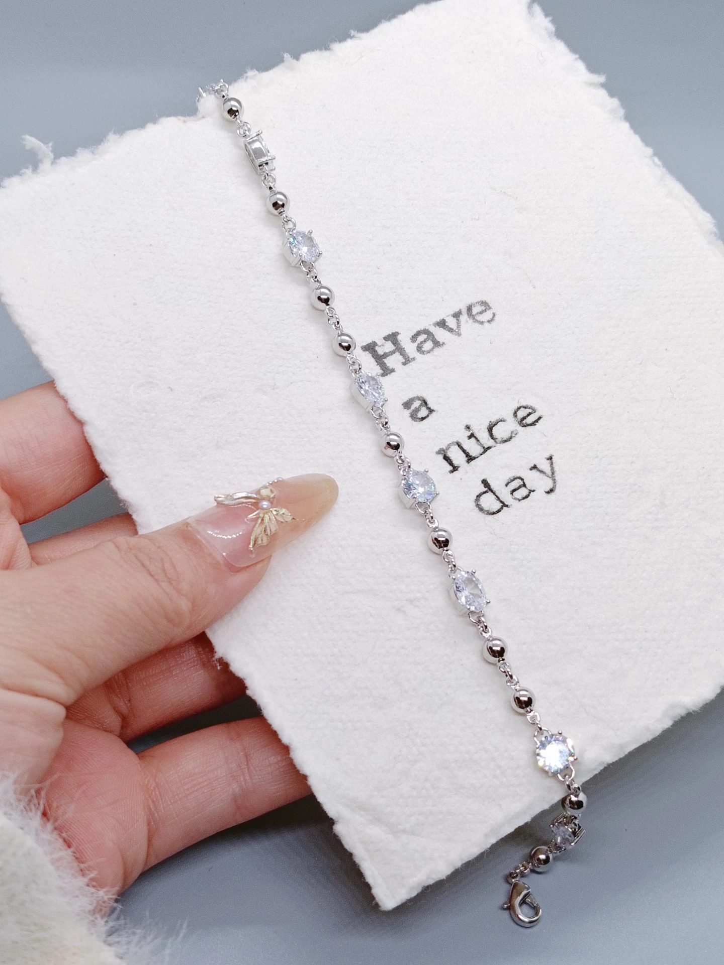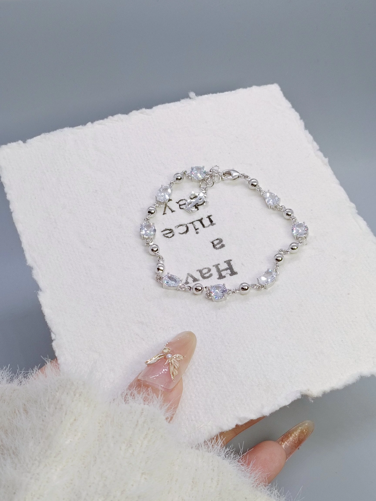 挖到宝啦✨!不规则拼接设计的手链太绝啦!锆石超级闪~上手意外显白😄,戴着有一种温柔又酷酷的感觉💫。日常穿简约衣服,有它的点缀立马精致高级了起来👏。唯一缺点就是可能太闪,会很吸引目光哈哈~不过我还挺喜欢滴😘!