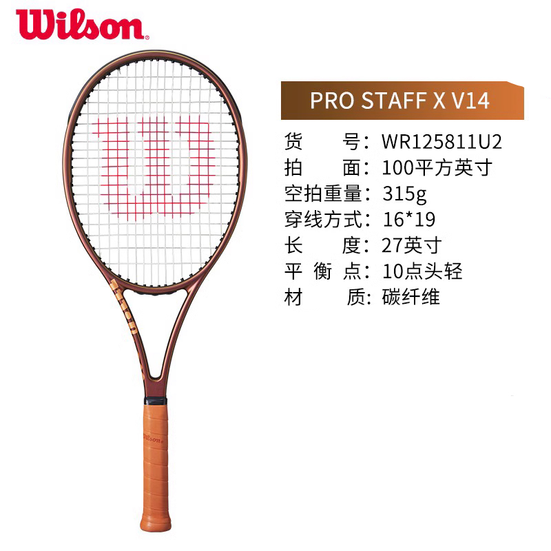 本篇笔记关联了Wilson/威尔胜 PRO STAFF系列 V14.0 全碳素 碳纤维 拍重 单人 耐打 稳定 专业拍 网球拍 PRO STAFF X V14等商品,为用户提供真实的使用体验和购买参考。