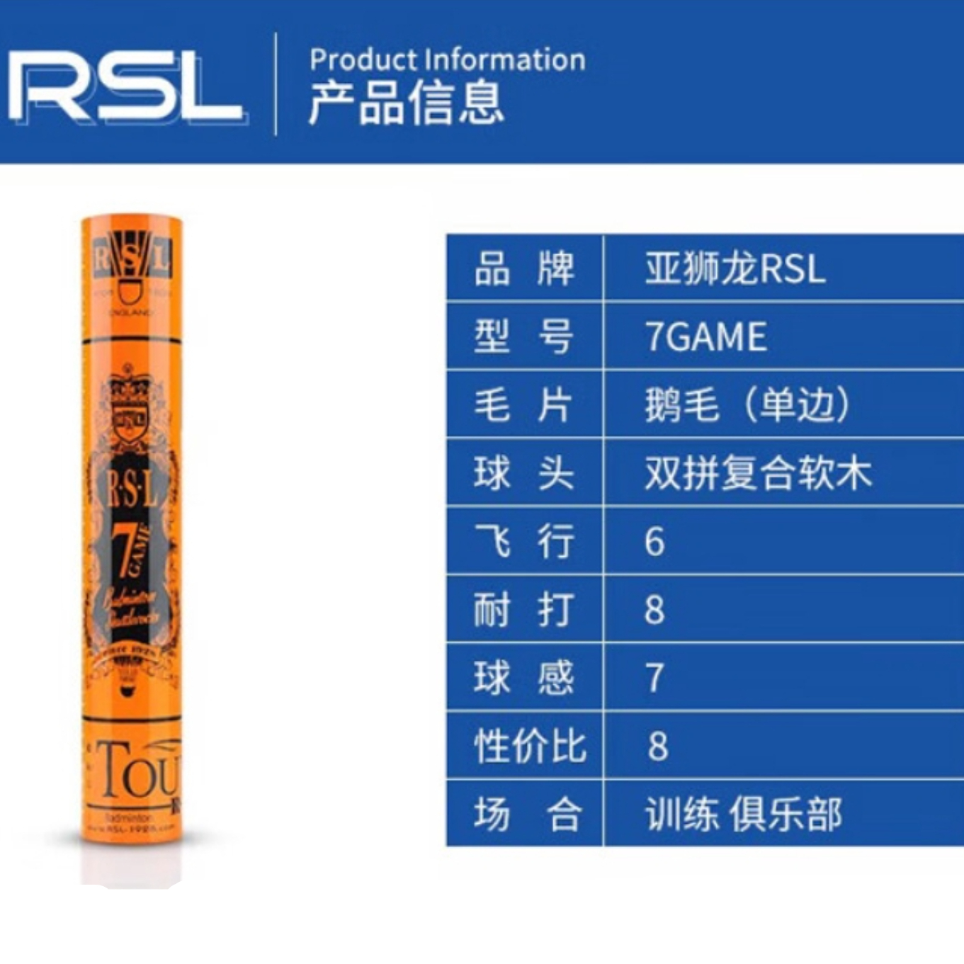 本篇笔记关联了RSL/亚狮龙 7GAME 耐打 比赛 飞行稳定 训练 鹅毛 羽毛球 白色等商品,为用户提供真实的使用体验和购买参考。