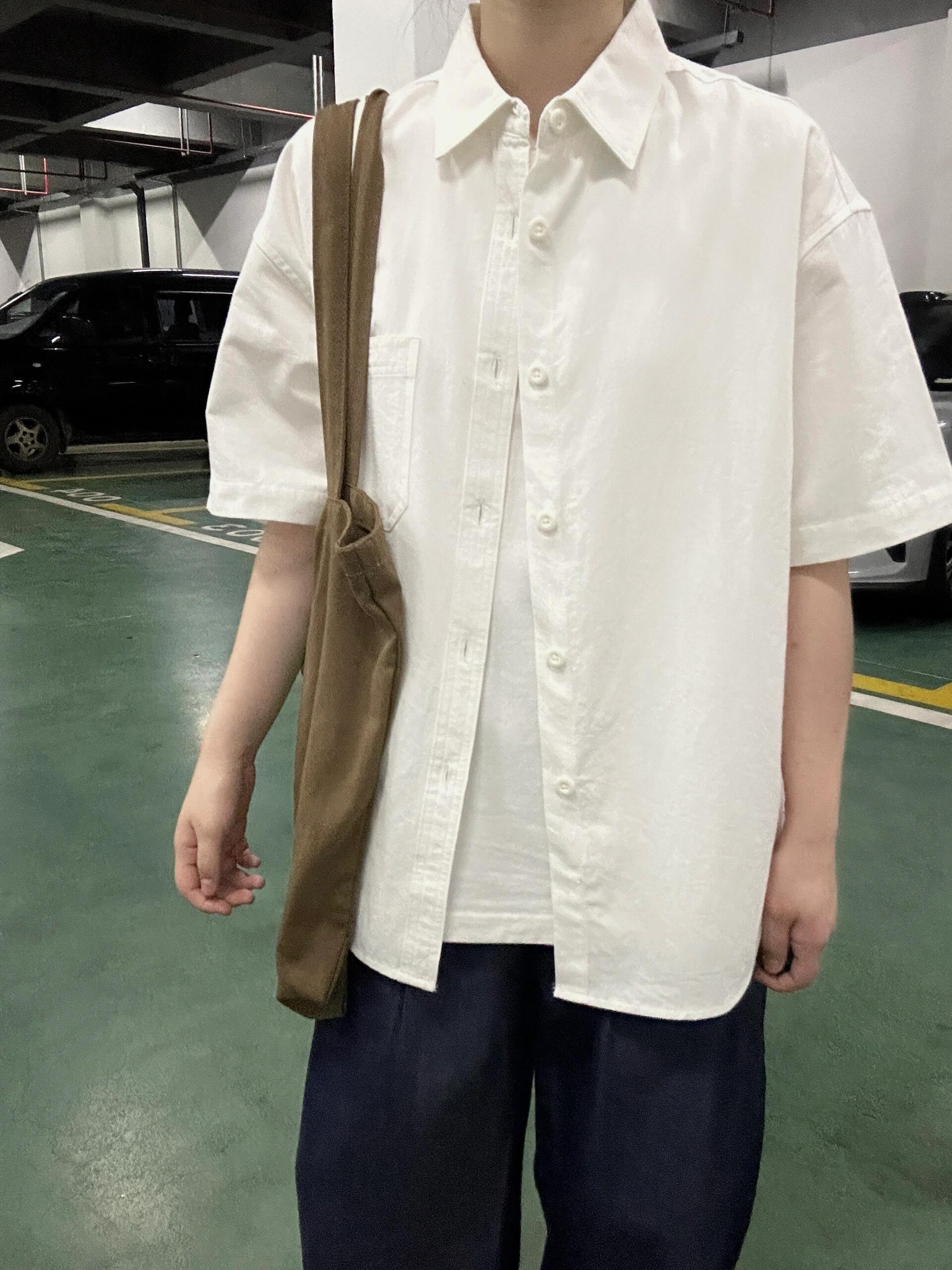 白色纯棉衬衫➕藏青天丝牛仔裤简直绝了 真的越素越好看!!简单又干净的感觉 长得帅不如穿的干净!! 建议170男生直接复制这套气质穿搭!