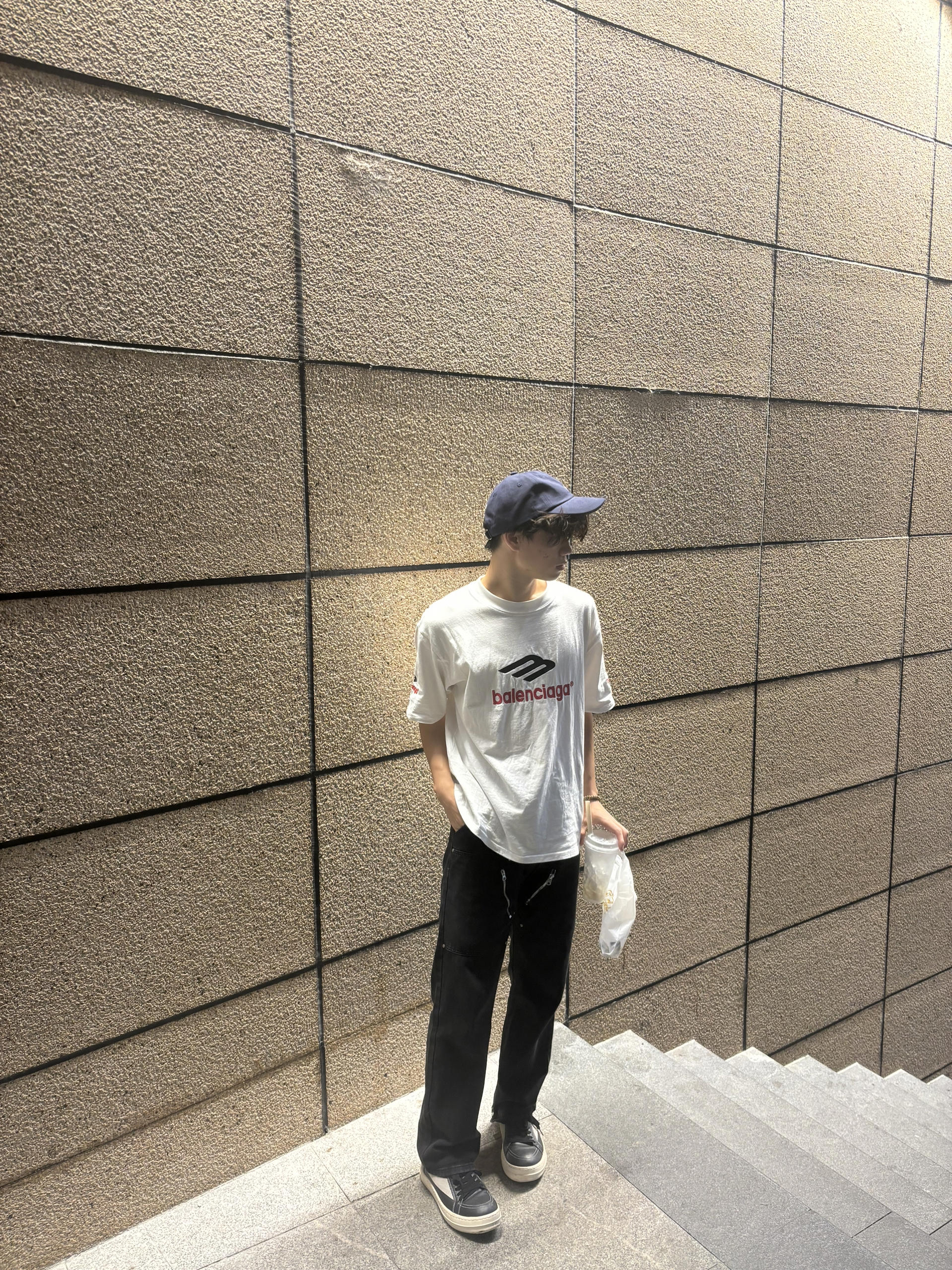 白➕黑的搭配简直就是万能公式,ck白色T恤配马吉拉西裤,上身干净清爽不油腻,你也试试吧