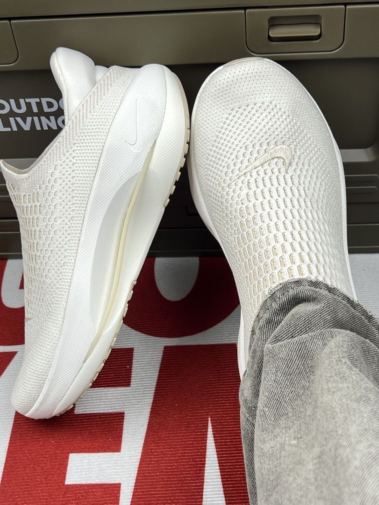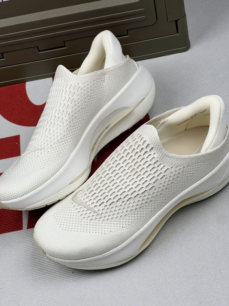 看我这双耐克一脚蹬👟 来说说真实感受~😄 先说优点✨ 针织鞋面很透气,夏天穿脚不容易闷汗,走路时脚感软乎乎,像踩在云上,日常散步、短途出行很舒服。而且一脚蹬设计,赶时间时穿脱超方便,不用费劲系鞋带。😃 但缺点也得提🙅♀️ 鞋面是针织的,容易勾丝,我不小心被小树枝挂了下,就有了丝缕。另外,白色太容易脏,稍微沾点灰就明显,得经常打理。还有,它的支撑性对运动达人来说可能不够,激烈运动别穿它,日常通...