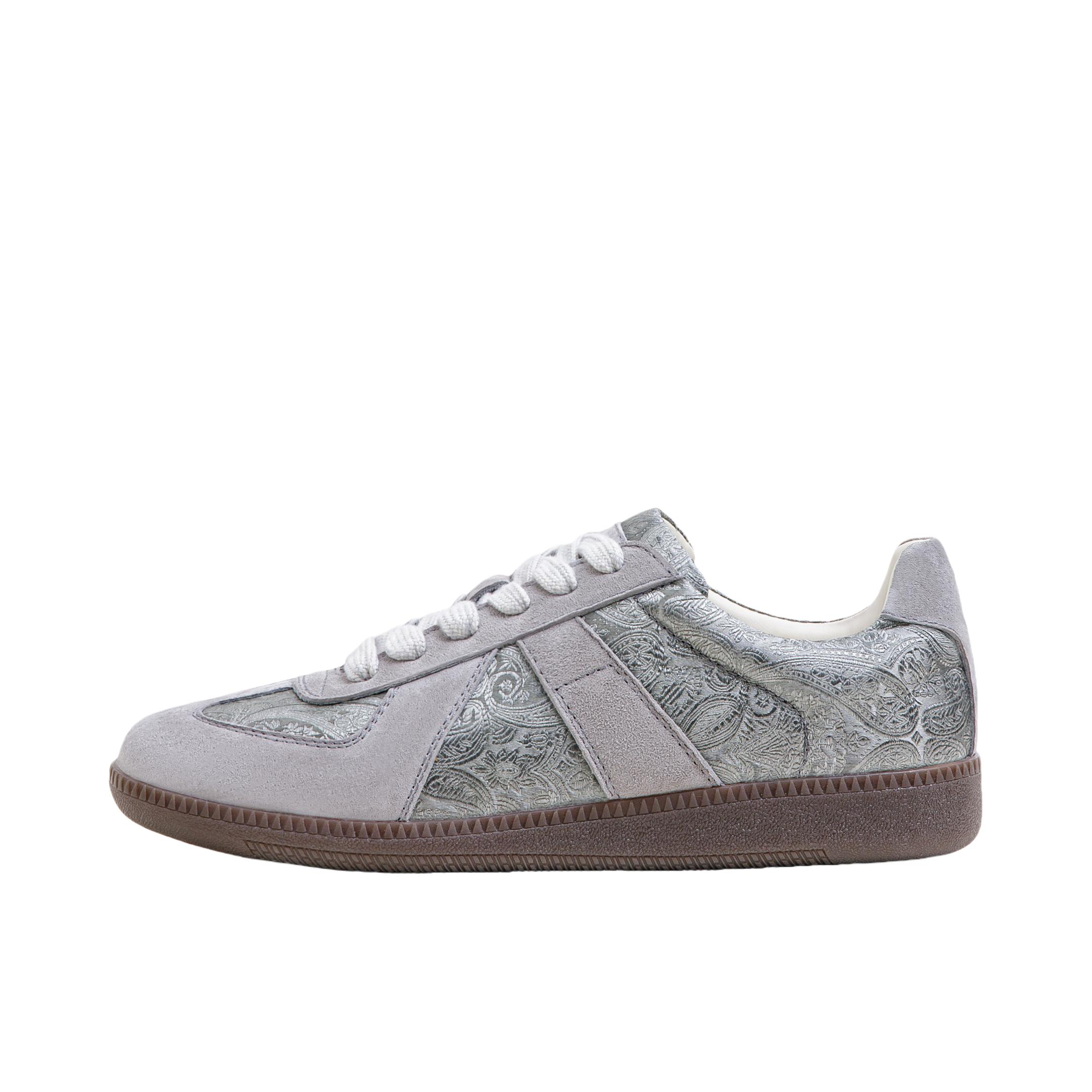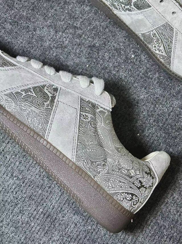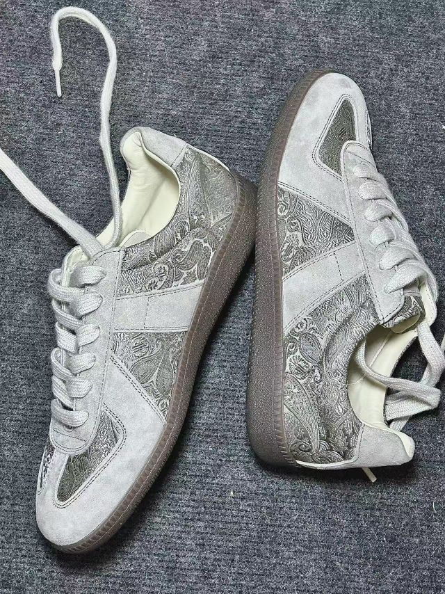 这双花纹德训👟有点意思哈 灰麂皮+复古纹,侧面后跟都带花 越品越有味道 上脚舒服鞋子还轻便,小众感拿捏了 配衣服也挺轻松[坏笑_blue]