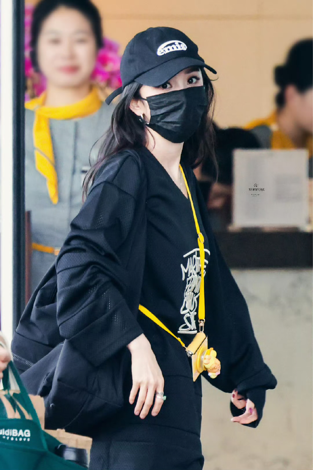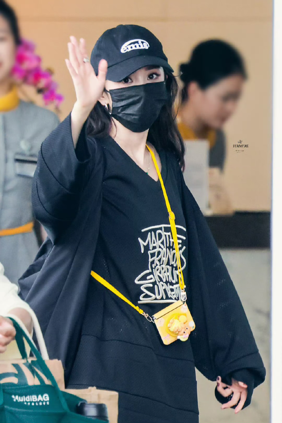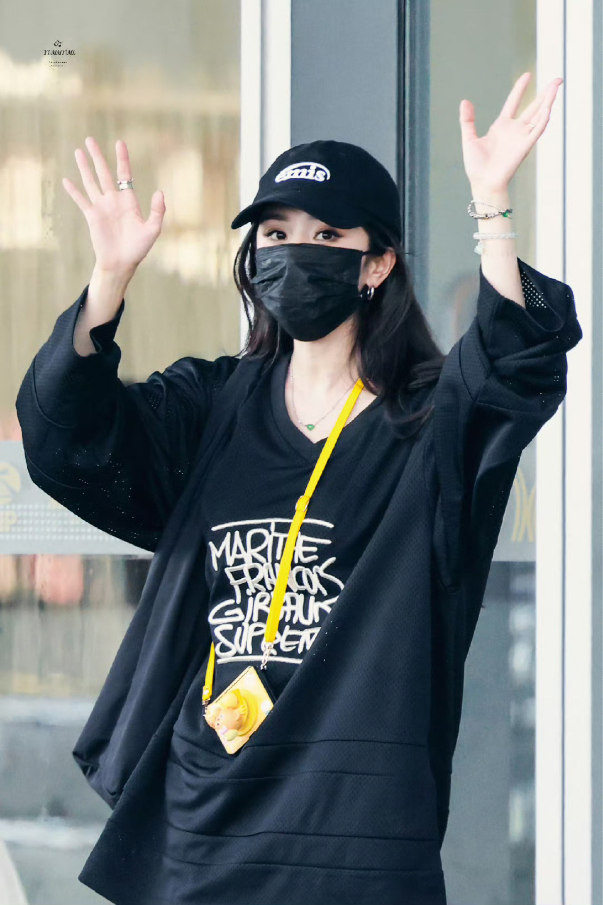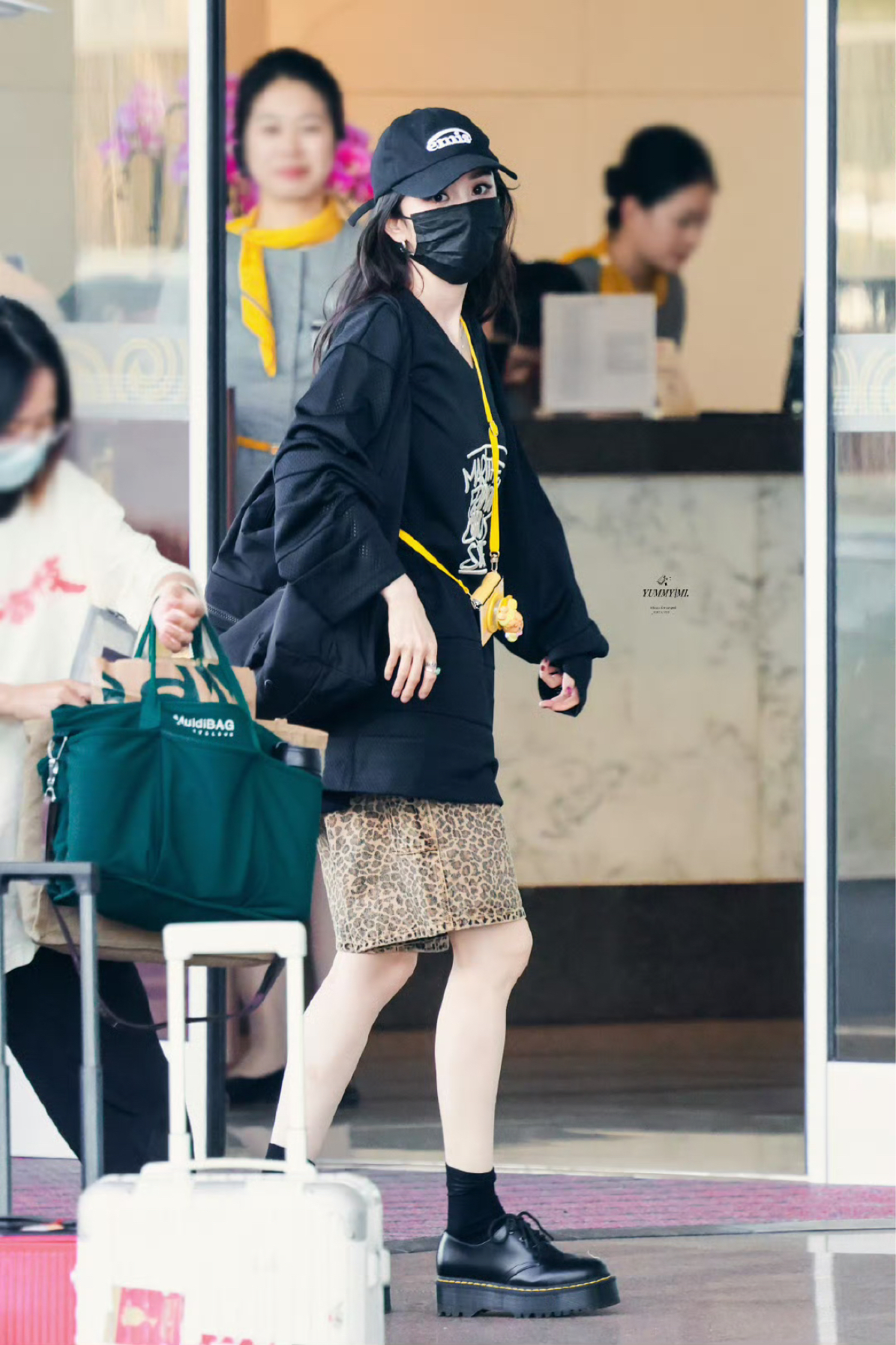 杨幂更新了7月17日机场私服,黑色T恤下搭五分五分豹纹短裤,下搭马丁靴,酷飒小幂! CR:@YUMMYMI杨幂 上衣: Supreme 裤子: Stussy 帽子: emis 包包: FILA FUSION