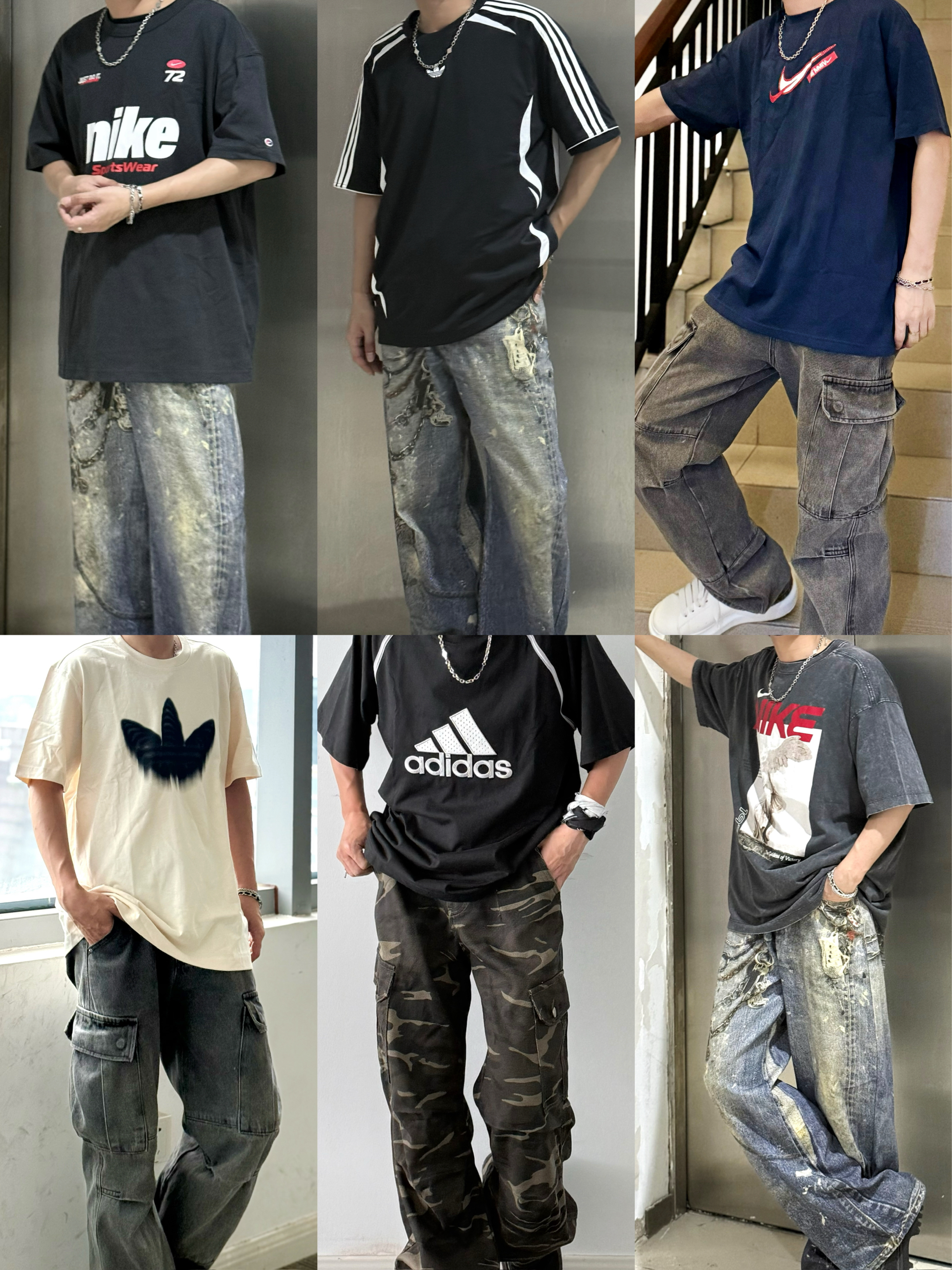 分享最近超爱的6套OOTD 核心就一个:阿迪 & Nike 经典Logo大T恤 分享的这几件上衣都是很有街头感的 上身都是略os慵懒随性的感觉 对身材包容性很大 下装选择做旧水洗牛仔阔腿裤/直筒裤 复古感立刻有 迷彩工装裤也是我近期挺喜欢的