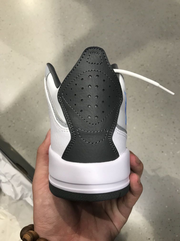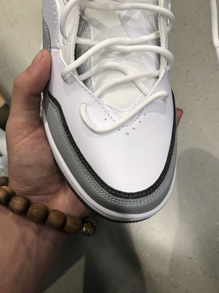 这双白灰色Courtside 23上脚挺舒服,鞋面软乎乎的,穿进去不挤脚,贴合得刚好。中帮设计不错,脚踝处裹得稳,不勒但有支撑,走路打球都自在。 白灰配色百搭,配啥裤子都不突兀。缓震不算特猛但够用,走路带点弹,打球落地不震脚。外底也耐磨,穿了段时间纹路没咋掉。 就是透气一般,大太阳天穿久了脚有点潮;防侧翻中规中矩,太猛的变向得自己注意点。日常穿或随便打打球挺合适