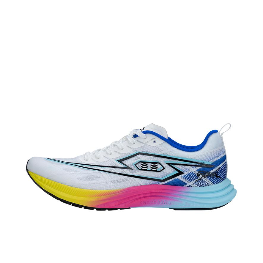 2开脚感澎湃、透气拉满、防滑给力! 弹射者猎豹2.0,真的有那么好穿? 这双叫纯粹,白配蓝非常清爽, 还有个亮色系叫出色,颜值同样很扛打, 这鞋场地800到3000米我都跑了,立定跳远也试了, 该说不说啊,确实是一双能提分提速的综训好鞋!
