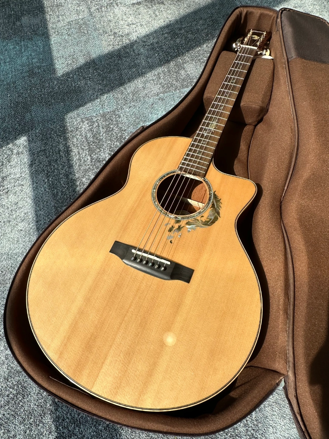本以为高颜值吉他音质会打折,黑羽系列却狠狠打了我的脸! 云杉面板搭配玫瑰木(桃花芯)背侧板,共鸣效果超赞,扫弦时声音清脆悦耳,余音悠长。 琴身飘落的 “黑羽” 图案,独特又酷炫,每次抱着它出门,都被琴友追问链接。 缺角设计方便高把位演奏,无论是坐着弹唱还是站着指弹,都超有范儿,入手它,我练琴都更有动力了~