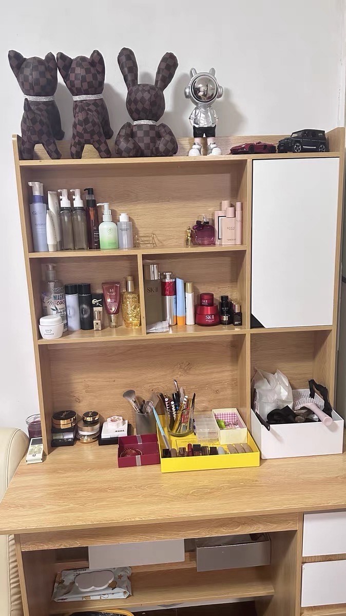 家人们,新添置的书桌我超满意😆!这种实木生态板的材质,摸着就很有质感~整体是简约大方的设计,很符合我审美🎨。功能方面没得说,上面开放式层架可以放书籍跟我心爱的娃娃们,中间部分的置物格我能放满护肤品💄。下面自带的几个抽屉也超实用,我放点日常杂物正好合适👍~美中不足的是组装的时候需要些耐心跟时间~对学生、上班族用来学习工作或者当个梳妆台来说完全够,有它,在家也能有惬意小角落了🛋~