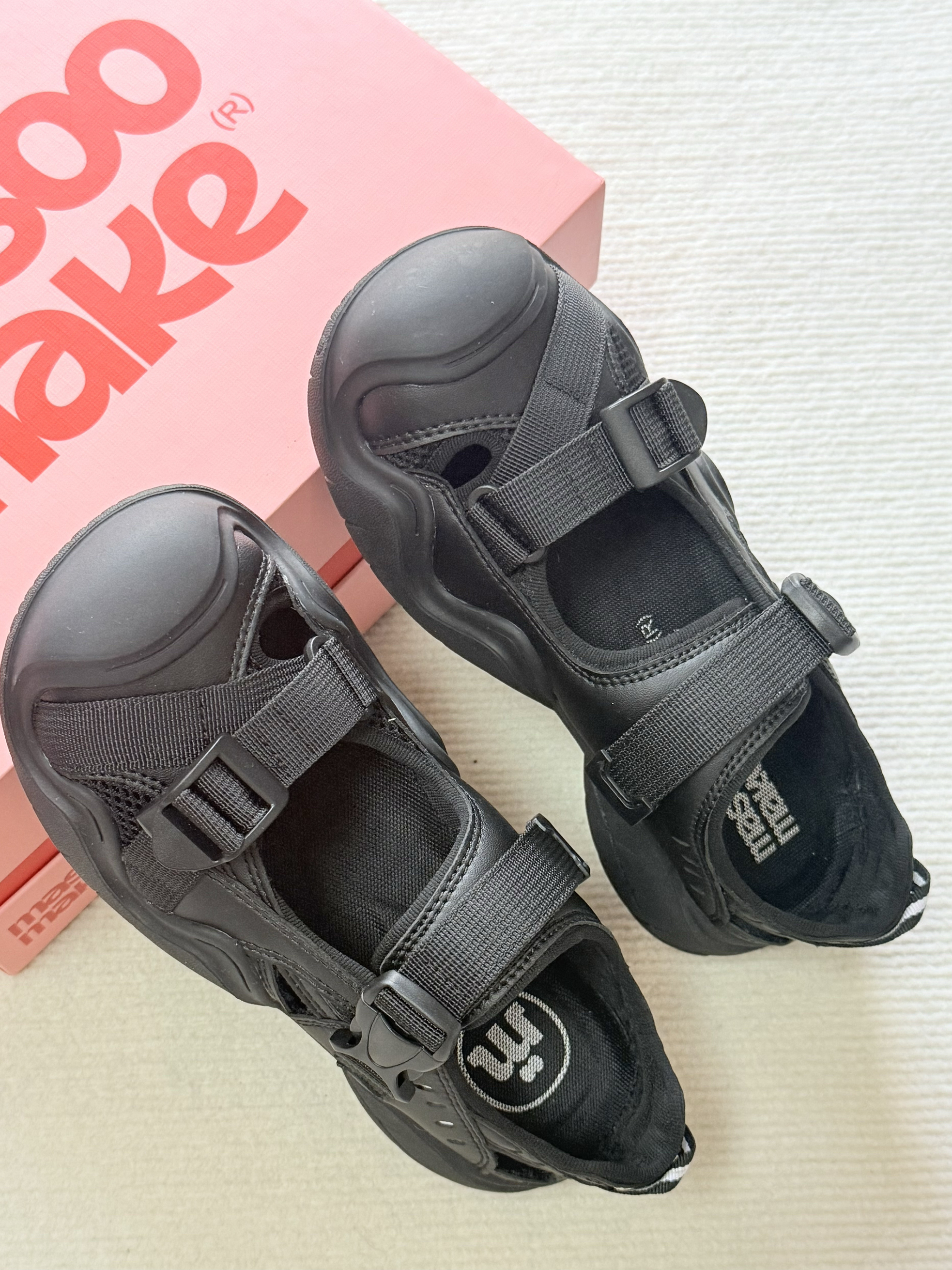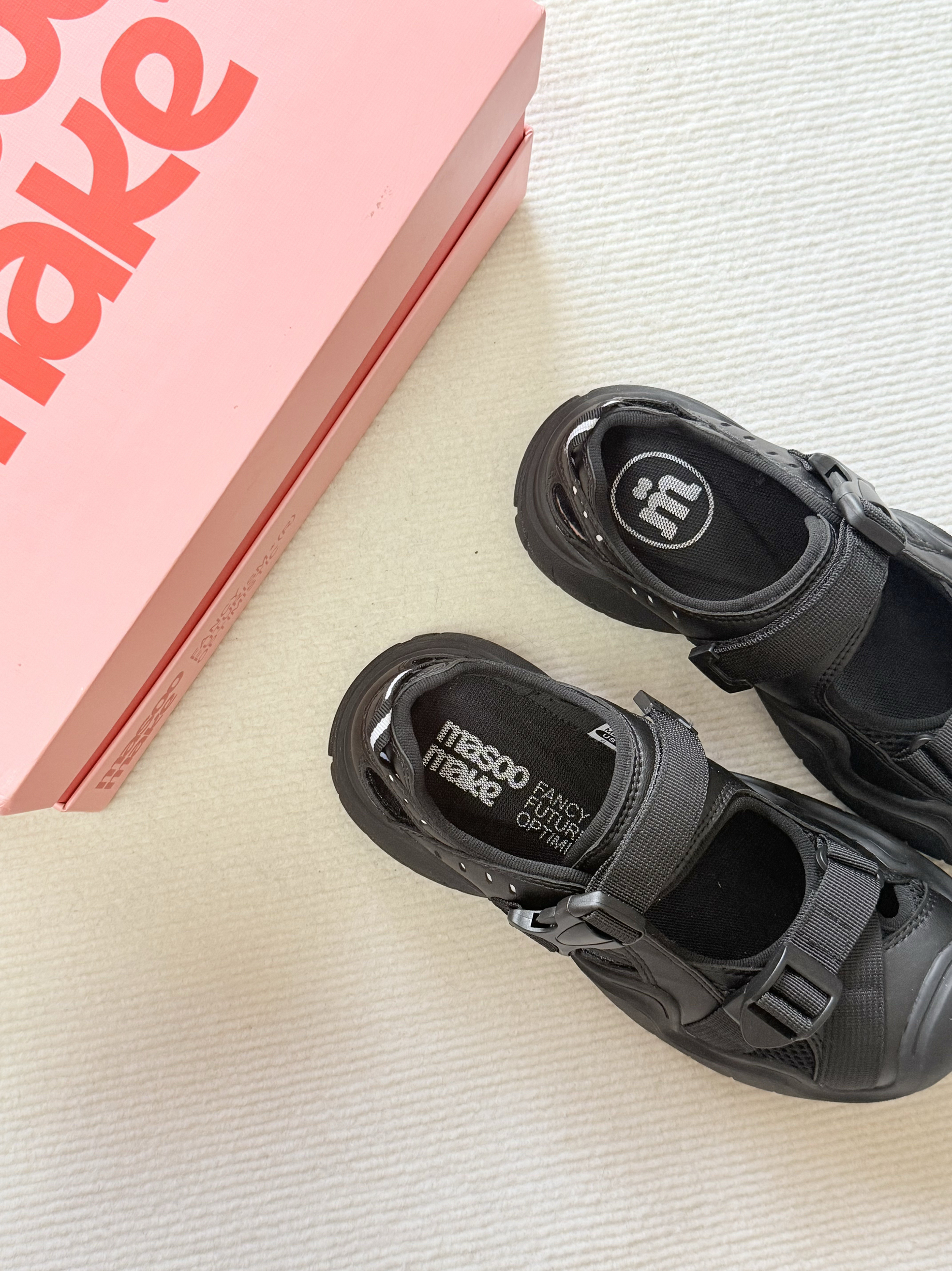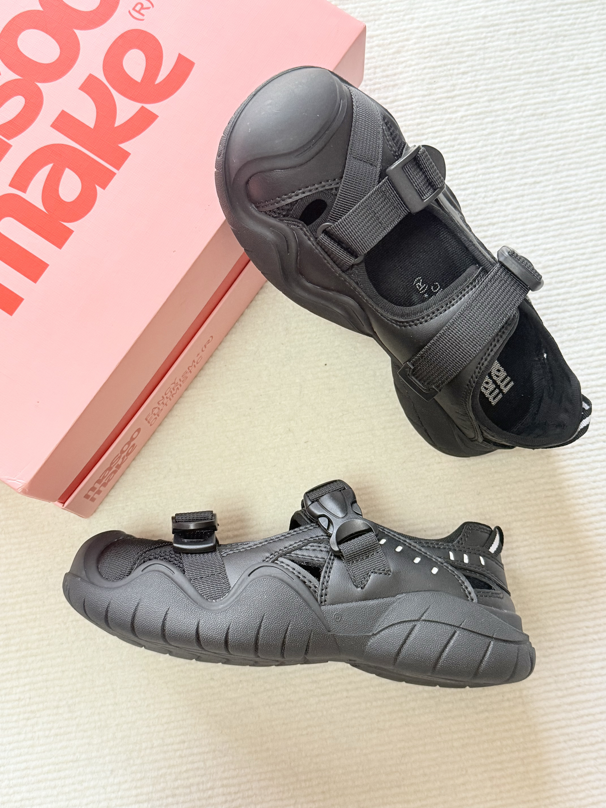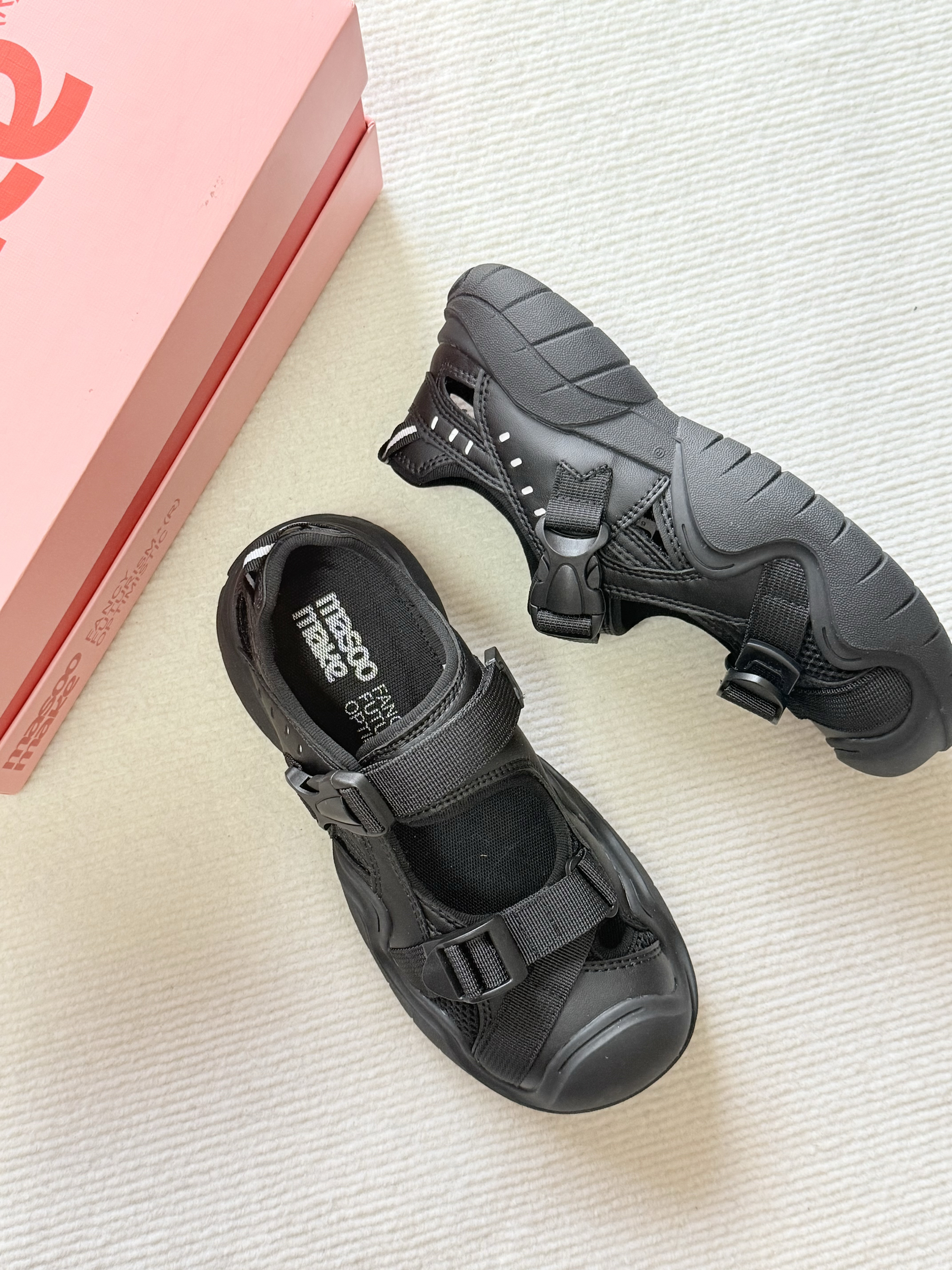 MASOOMAKE 你还有多少惊喜是朕不知道的🧐🧐哈哈哈 之前秋冬就很喜欢买他们家的玛丽珍小皮鞋,穿搭毫不费力而且脚感也很好~ 这个夏天选凉鞋时想着进店逛一下看看,没想到一眼就相中这双酷酷的星空黑凉鞋~颜色低调而且机车风的设计也很时尚!脚感一如既往的舒服😌爱了爱了