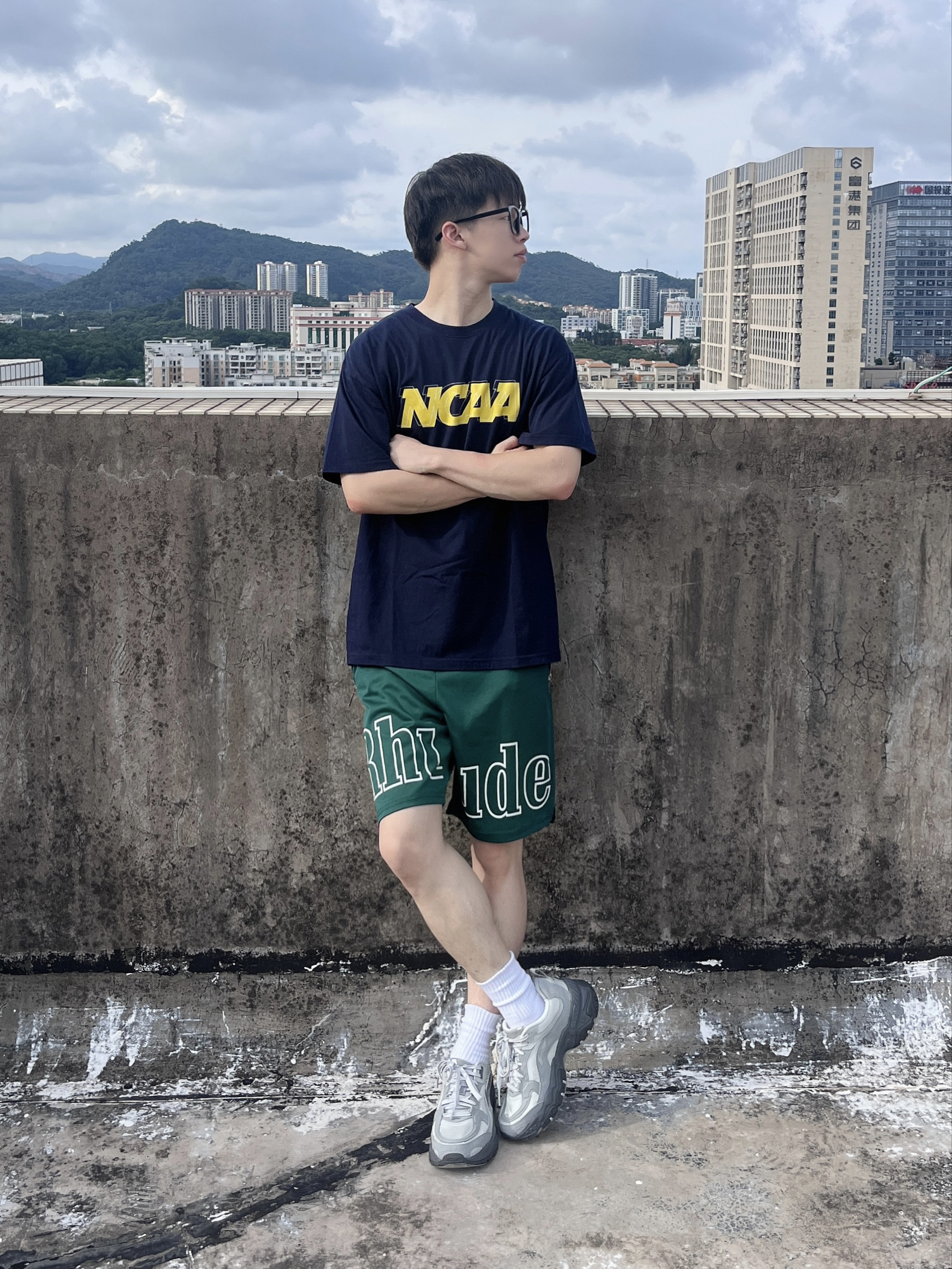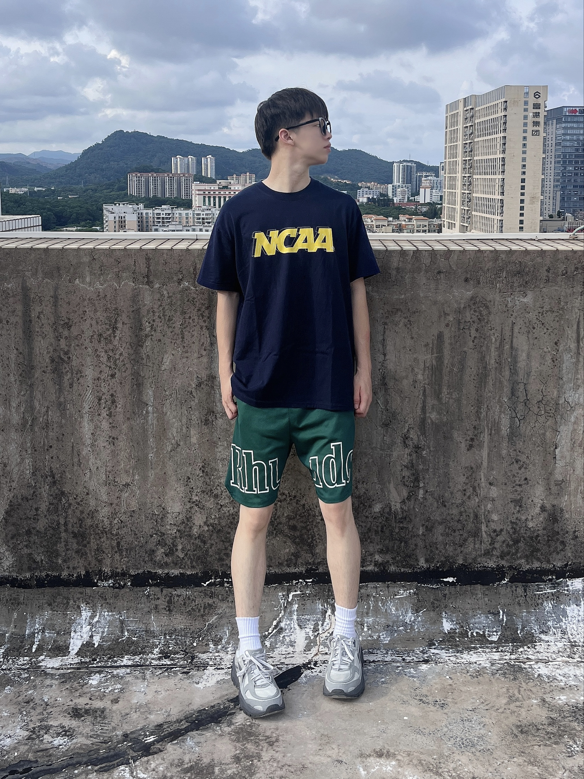 今日份穿搭分享look👀 藏青色字母印花短袖👕搭配绿色美式短裤🩳 鞋子是 李宁 红糖白灰生活休闲鞋👟 鞋身设计复古时尚 鞋底防滑耐磨 上脚后脚感舒适透气 质感满满🔥 一套搭配下来 夏天运动出行百搭又好看