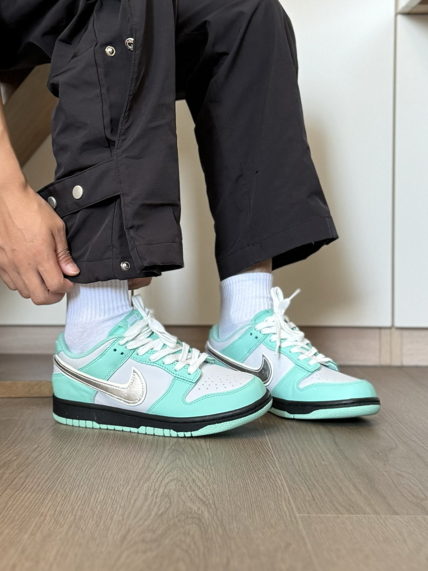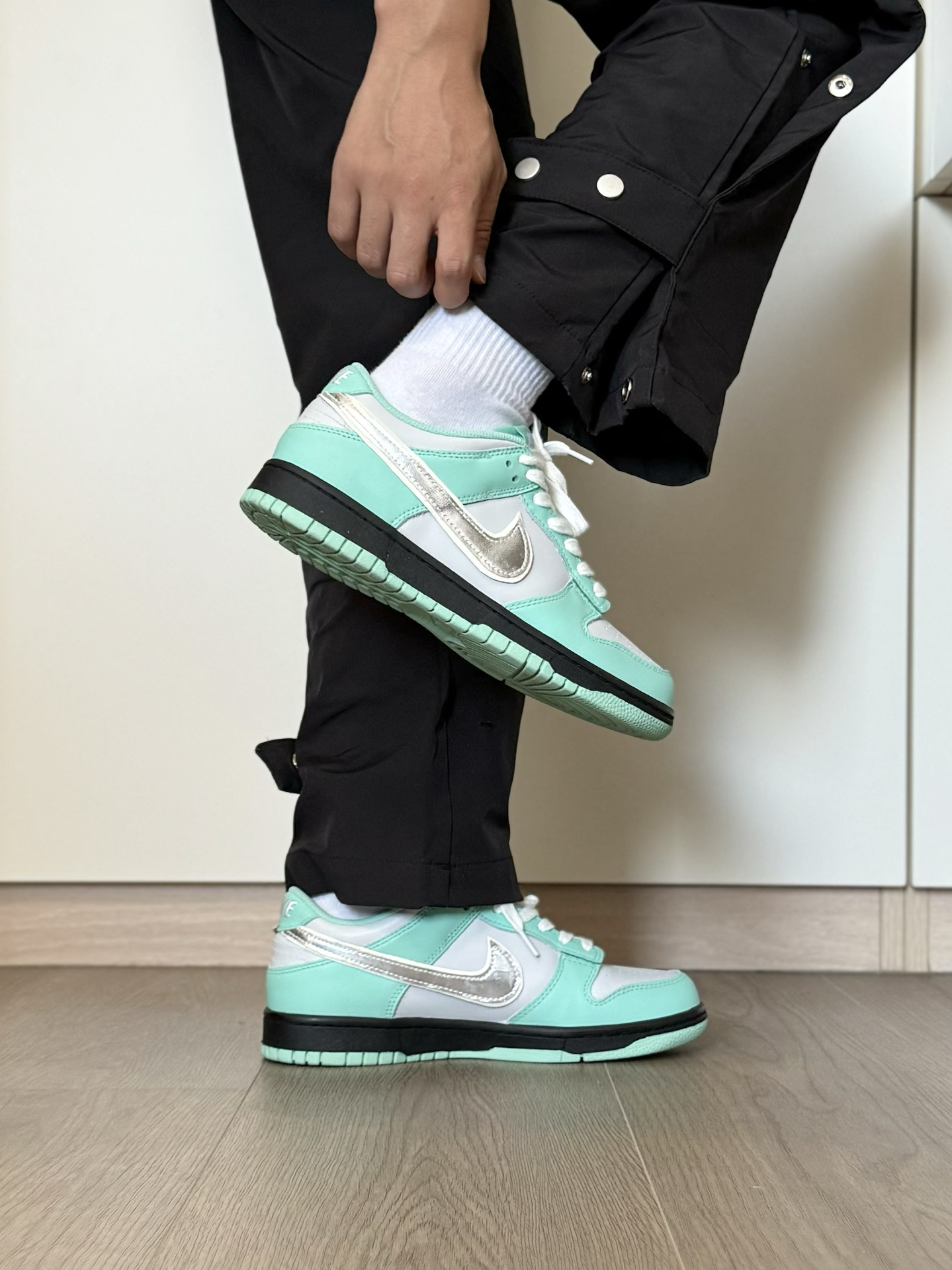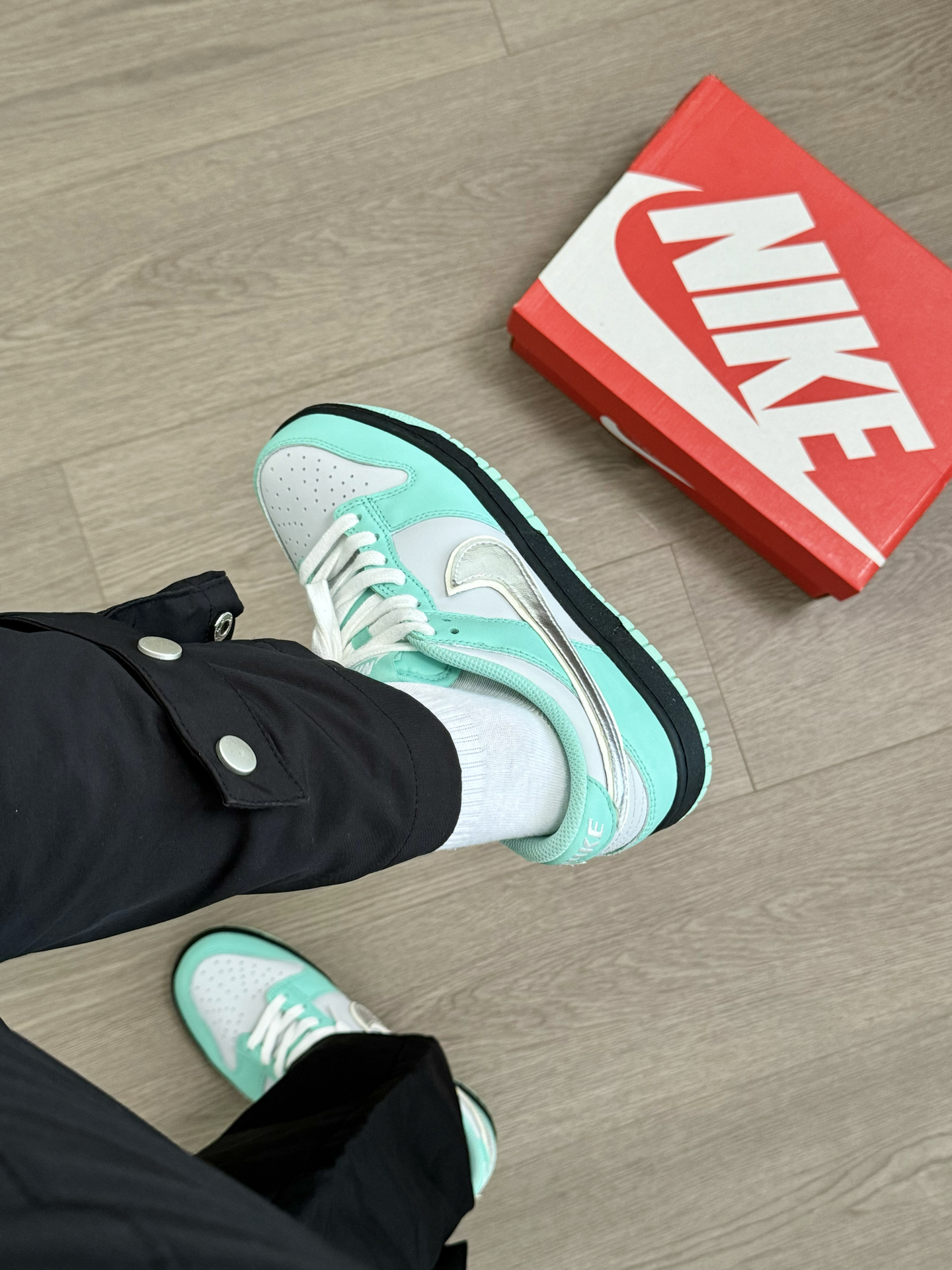 最近又发现一双特好看的小众nike板鞋 虽说是个女款 但一些小码男生也能穿啊~ 蒂芙尼绿的配色 加上银色钩子 帅是真的帅 日常我特别喜欢穿一些宽松的 机能风工装裤 还是蛮好搭配的 就是脚感差点意思 喜欢软一点的 建议换一个厚实的鞋垫 #定制我主场 #2025年中球鞋大盘点 #这双没有班味 #剪得物扣最快的一双鞋 #把这双鞋焊在脚上