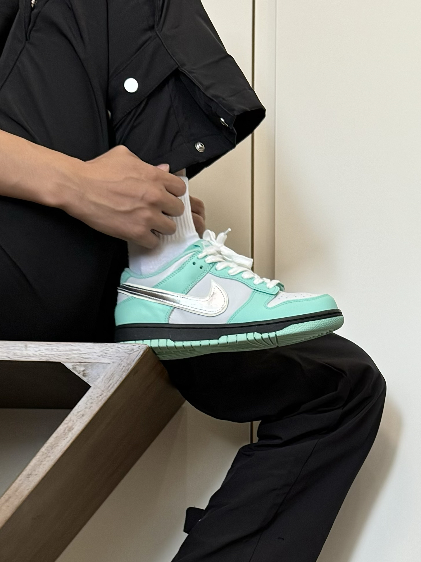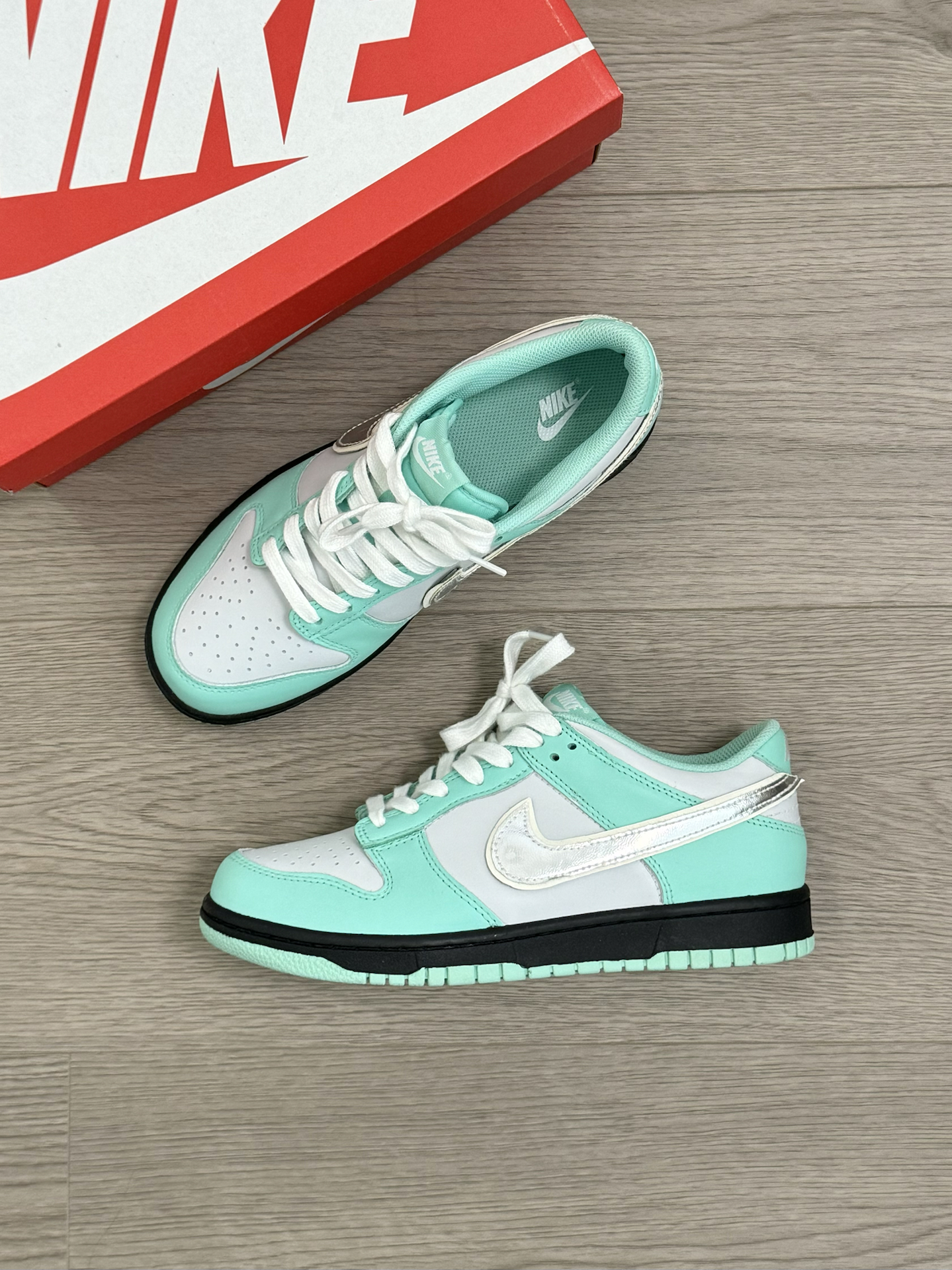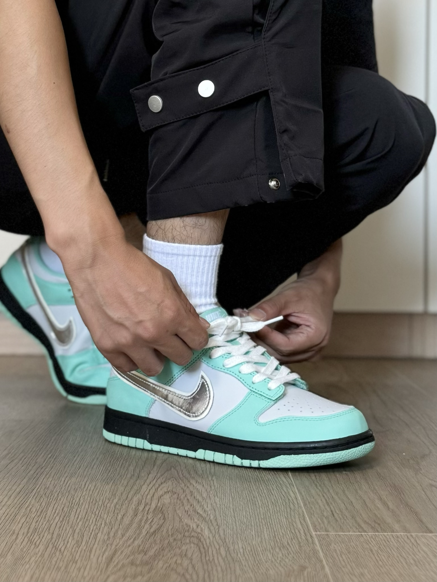 最近又发现一双特好看的小众nike板鞋 虽说是个女款 但一些小码男生也能穿啊~ 蒂芙尼绿的配色 加上银色钩子 帅是真的帅 日常我特别喜欢穿一些宽松的 机能风工装裤 还是蛮好搭配的 就是脚感差点意思 喜欢软一点的 建议换一个厚实的鞋垫 #定制我主场 #2025年中球鞋大盘点 #这双没有班味 #剪得物扣最快的一双鞋 #把这双鞋焊在脚上