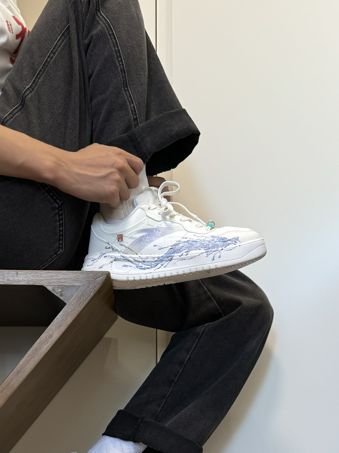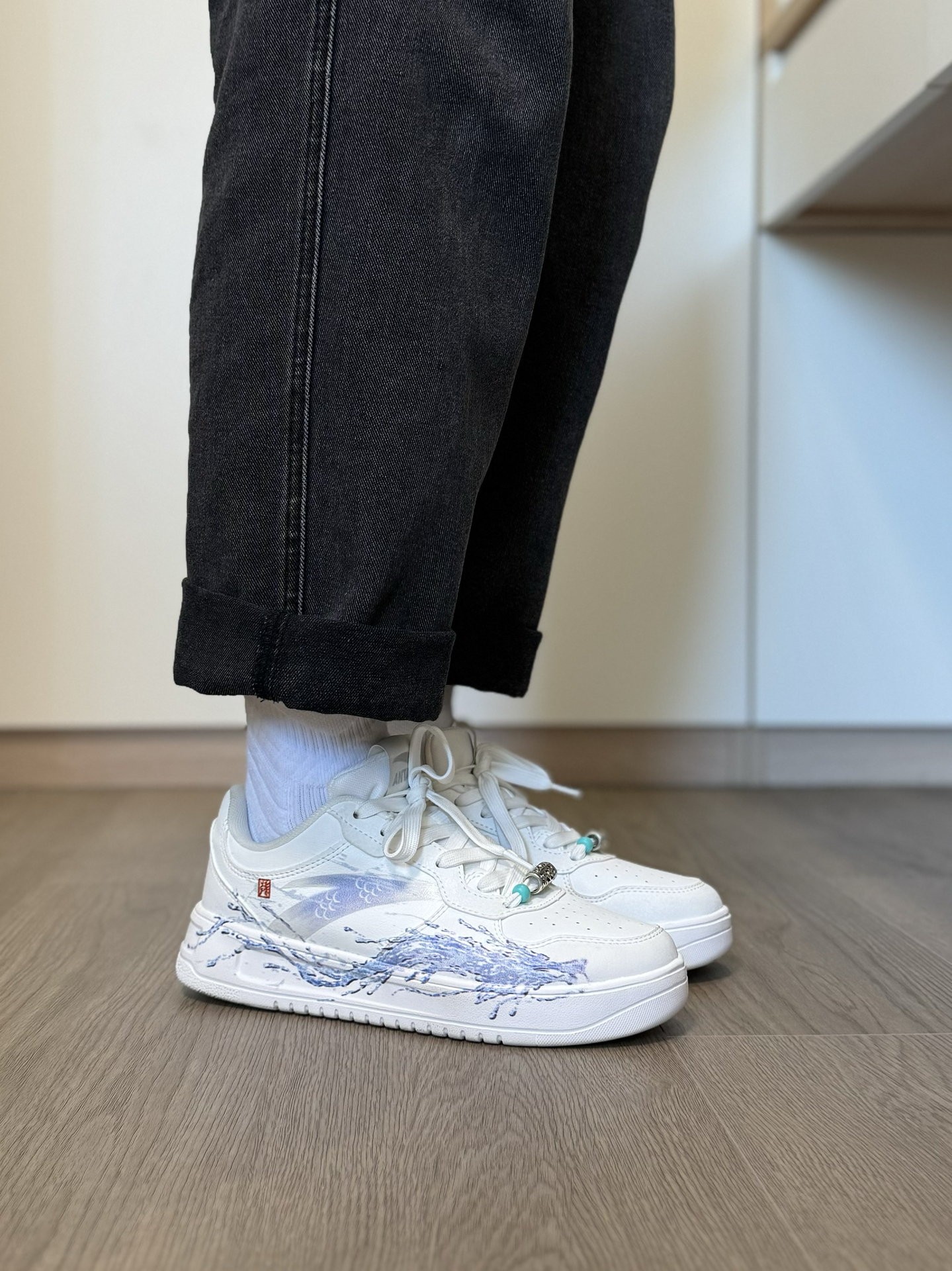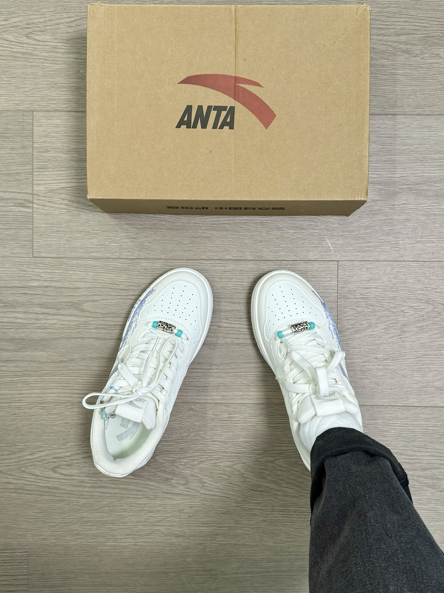 分享一双最近蛮喜欢的 安踏 敖丙板鞋 整个外观乍一看就是简约的小白鞋 其实细节做的特丰富 侧面水墨风的敖丙图案 包括安踏logo也加上了龙鳞 不过我很喜欢的 是鞋头的装饰 以及侧面的古风小挂件 上脚挺好搭配的 我日常都是简单穿条牛仔裤 蛮帅的 而且比较舒服 通勤走路脚感软软的 #定制我主场 #这双没有班味 #夏天的宝藏休闲板鞋分享 #把这双鞋焊在脚上 #LTDZ