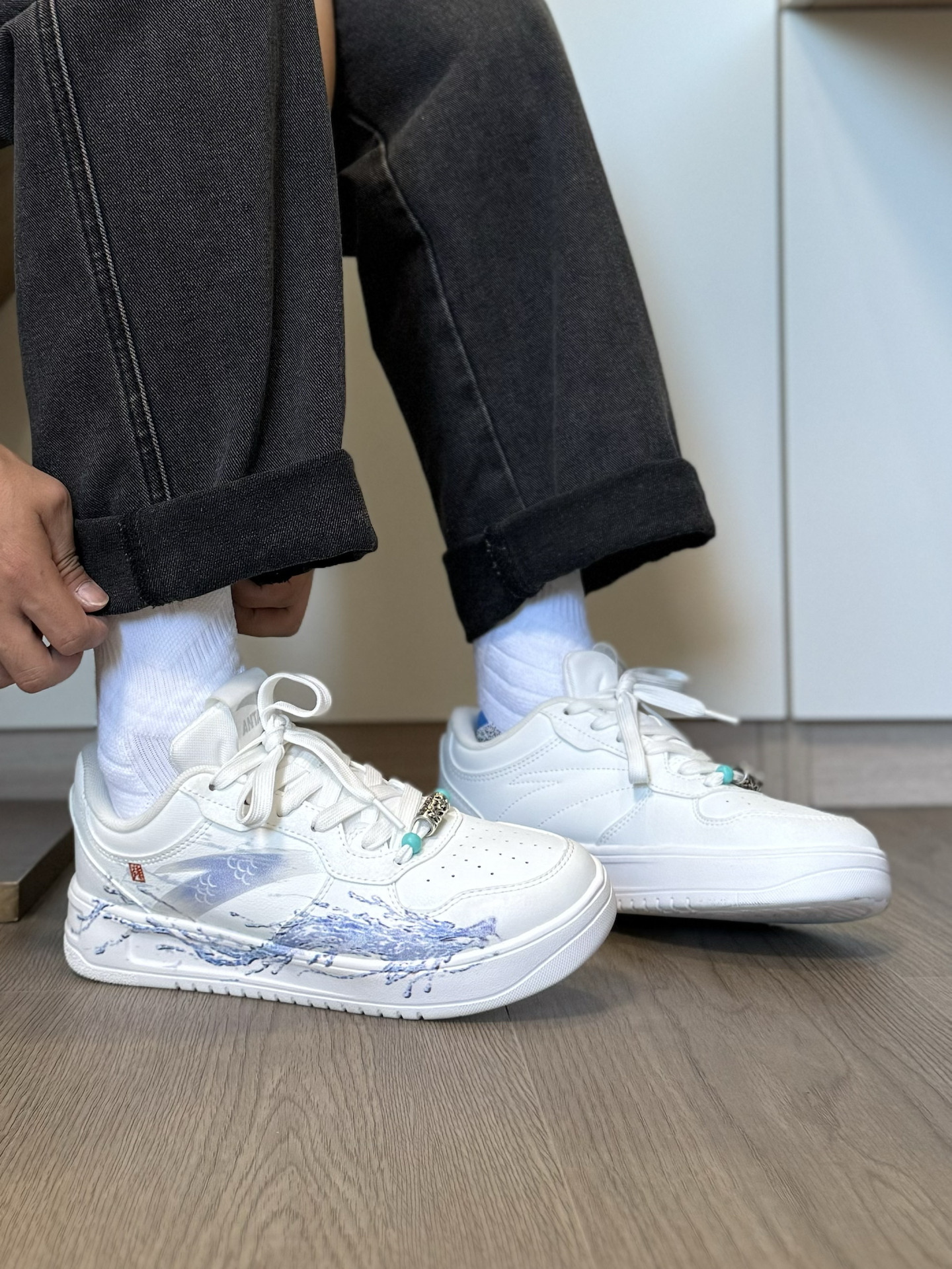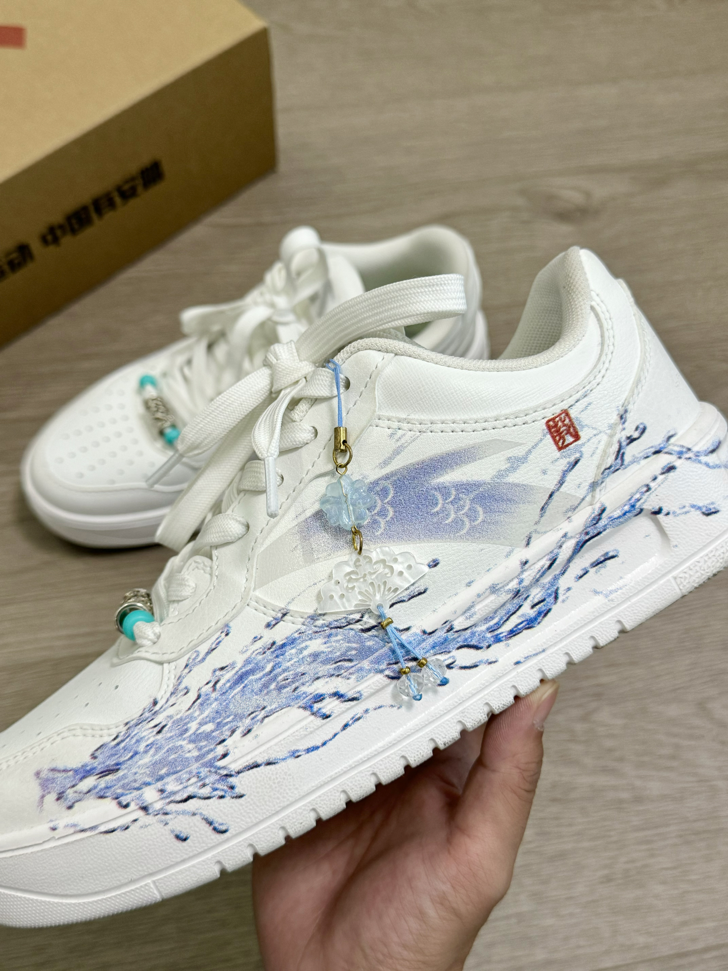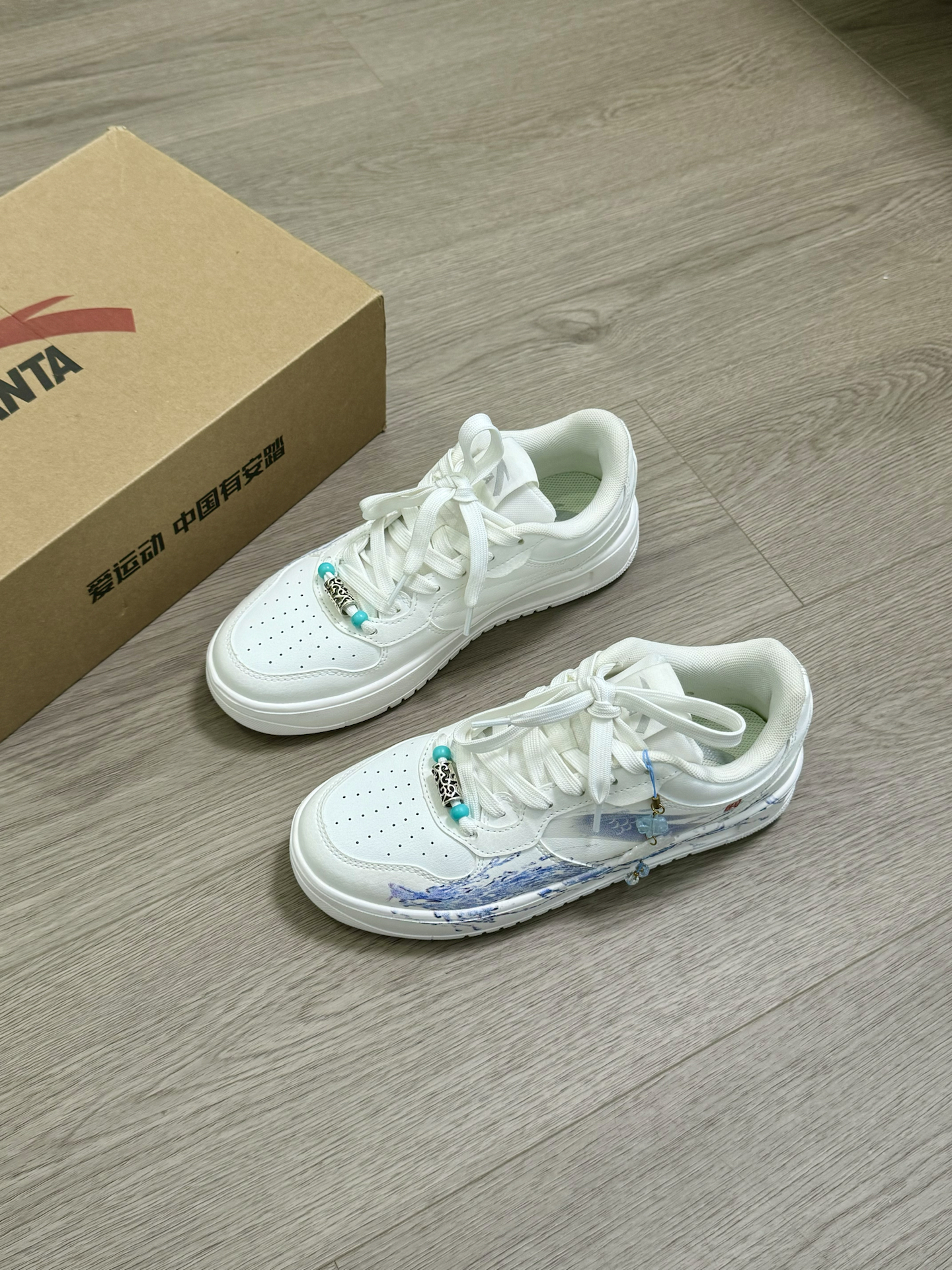 分享一双最近蛮喜欢的 安踏 敖丙板鞋 整个外观乍一看就是简约的小白鞋 其实细节做的特丰富 侧面水墨风的敖丙图案 包括安踏logo也加上了龙鳞 不过我很喜欢的 是鞋头的装饰 以及侧面的古风小挂件 上脚挺好搭配的 我日常都是简单穿条牛仔裤 蛮帅的 而且比较舒服 通勤走路脚感软软的 #定制我主场 #这双没有班味 #夏天的宝藏休闲板鞋分享 #把这双鞋焊在脚上 #LTDZ